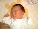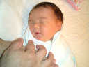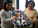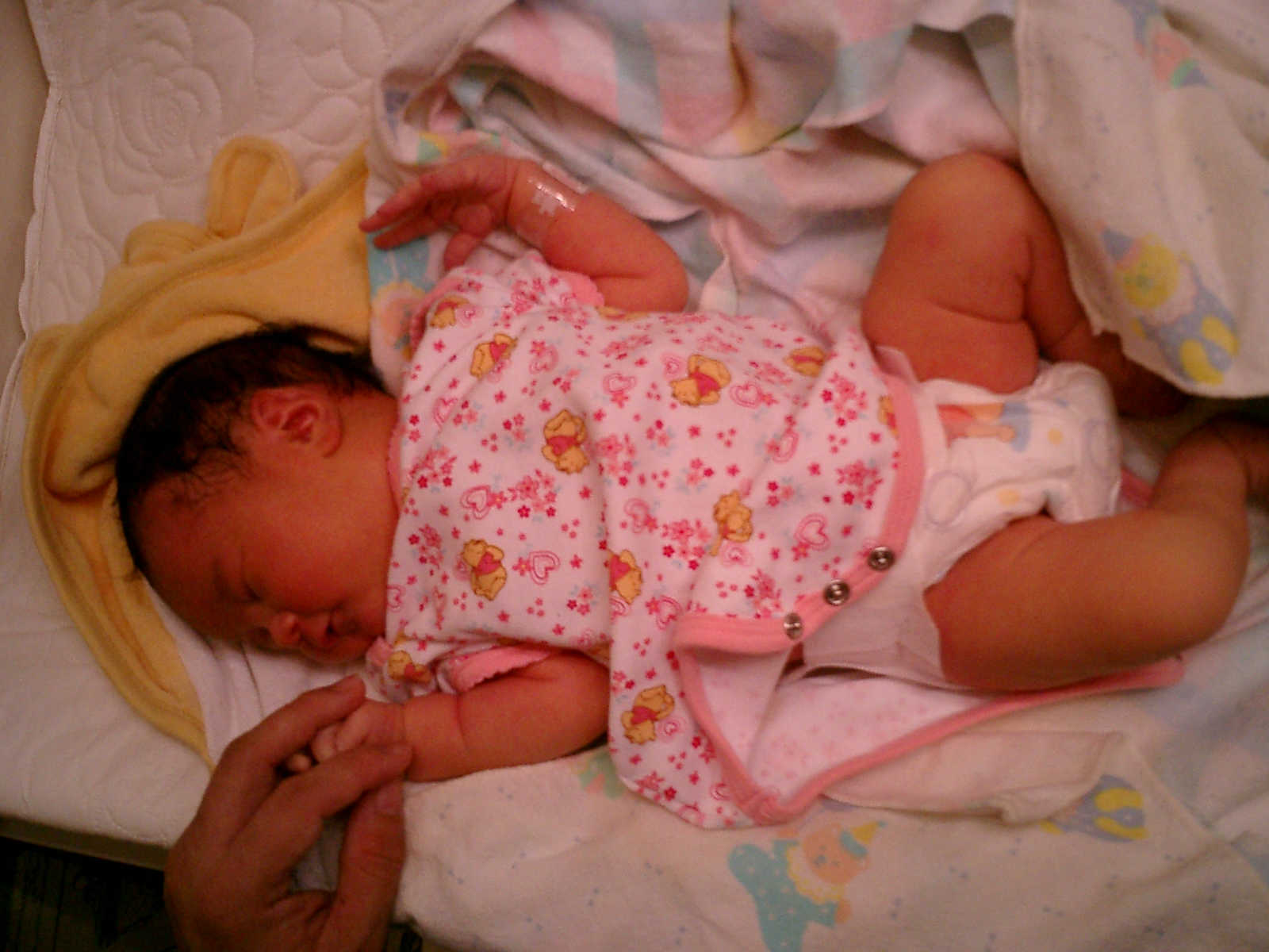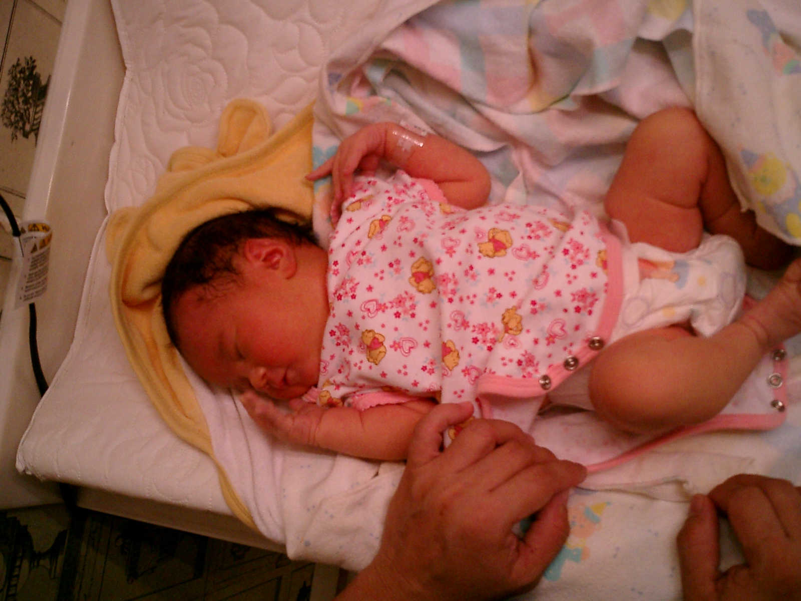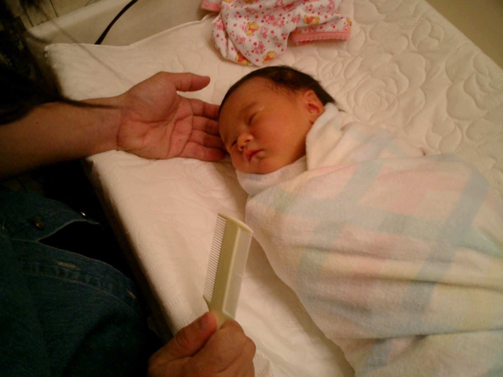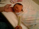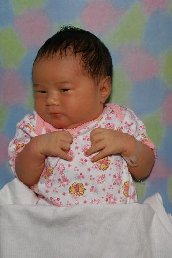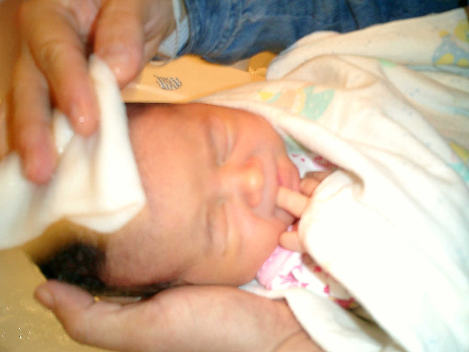 | With Nadine and Sally both happy and healthy, it was soon time to come home. Grandma Chansouk Souvannavong helped prepare Nadine for coming home, and soon we were in our house once again. Of course, that means it's time for Nadine to take a bath and get bundled up nice and warm! |