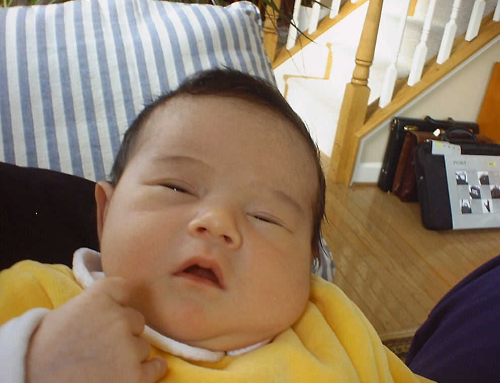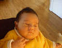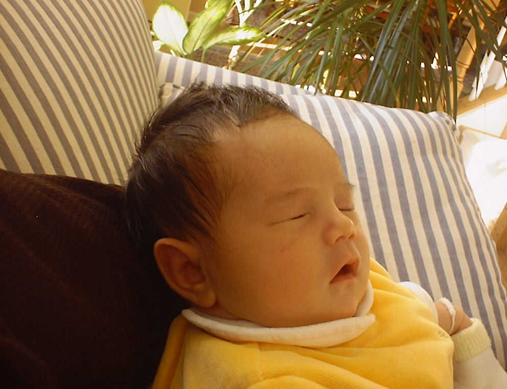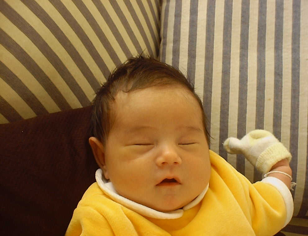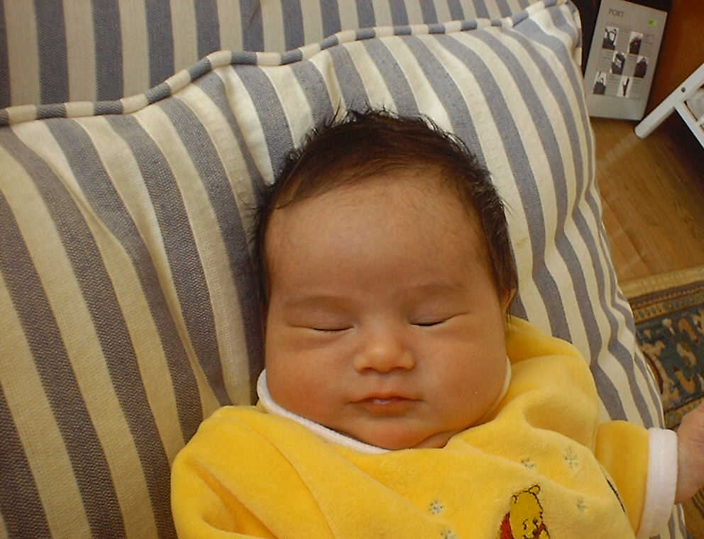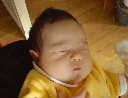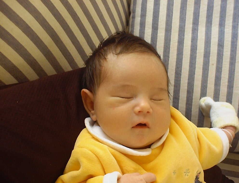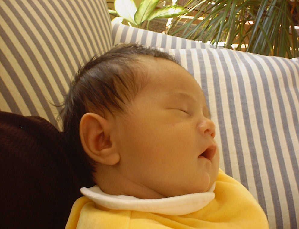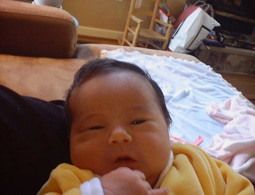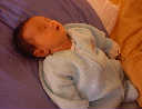 Here Nadine is a little over a week old, again relaxing after a nice meal. Nadine must be thinking, "Boy, all this eating and growing is hard work -- think I better take another nap!"