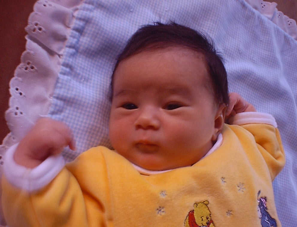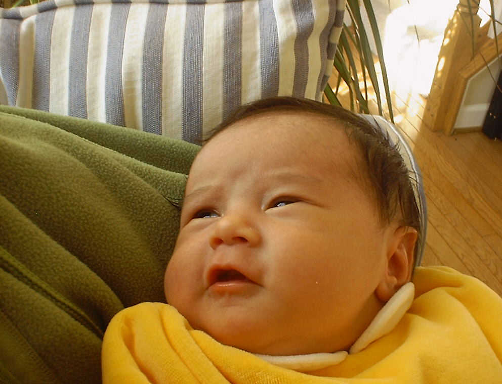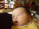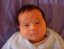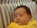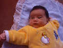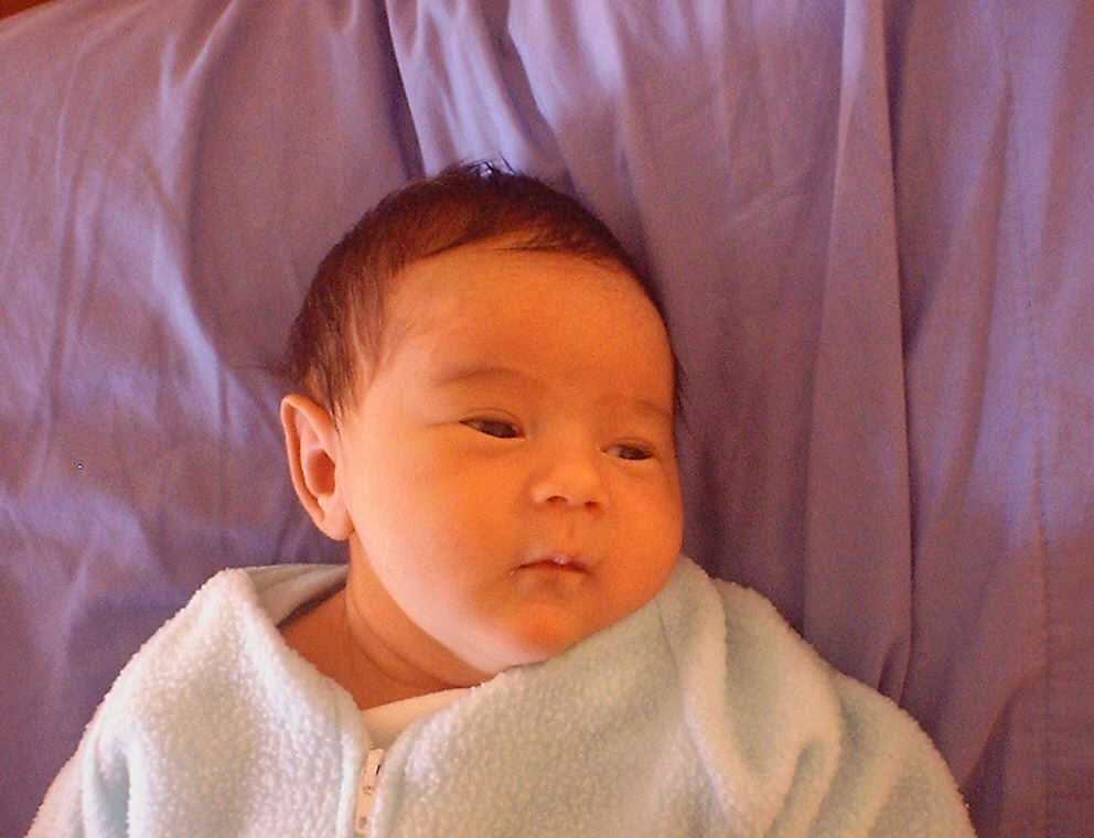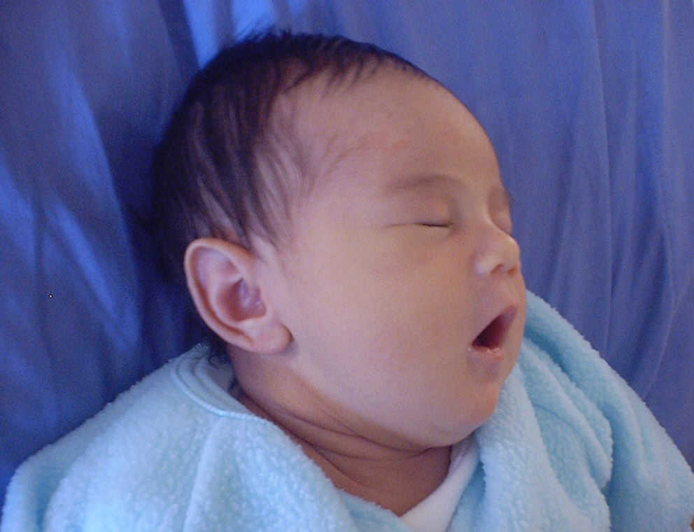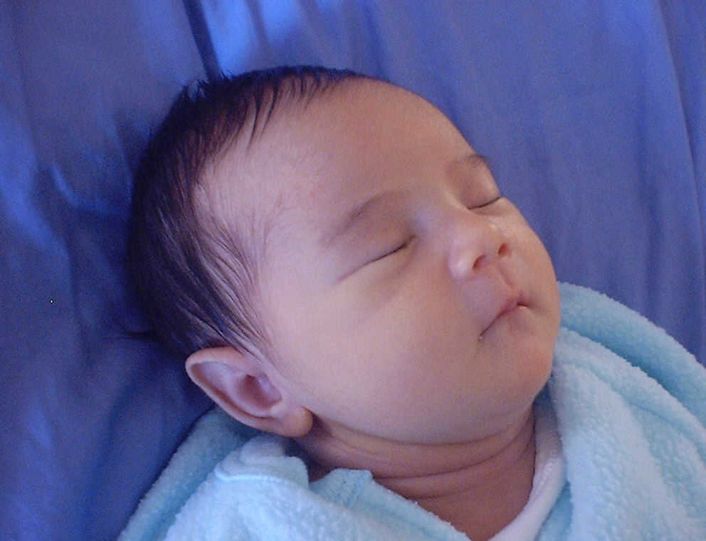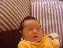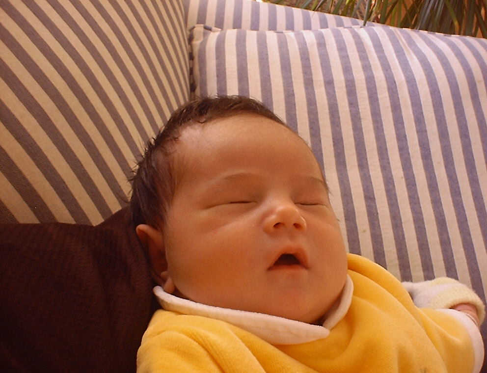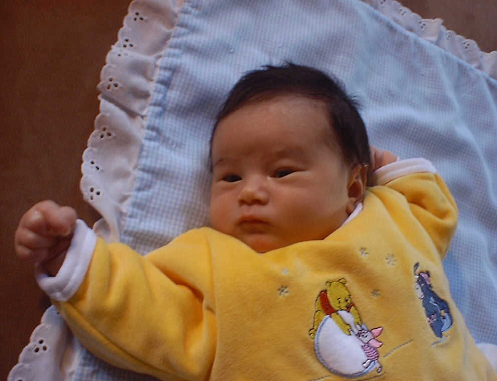 Here Nadine is a little over a week old, again relaxing after a nice meal. Nadine must be thinking, "Boy, all this eating and growing is hard work -- think I better take another nap!"