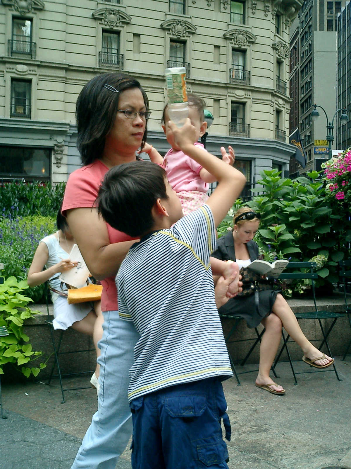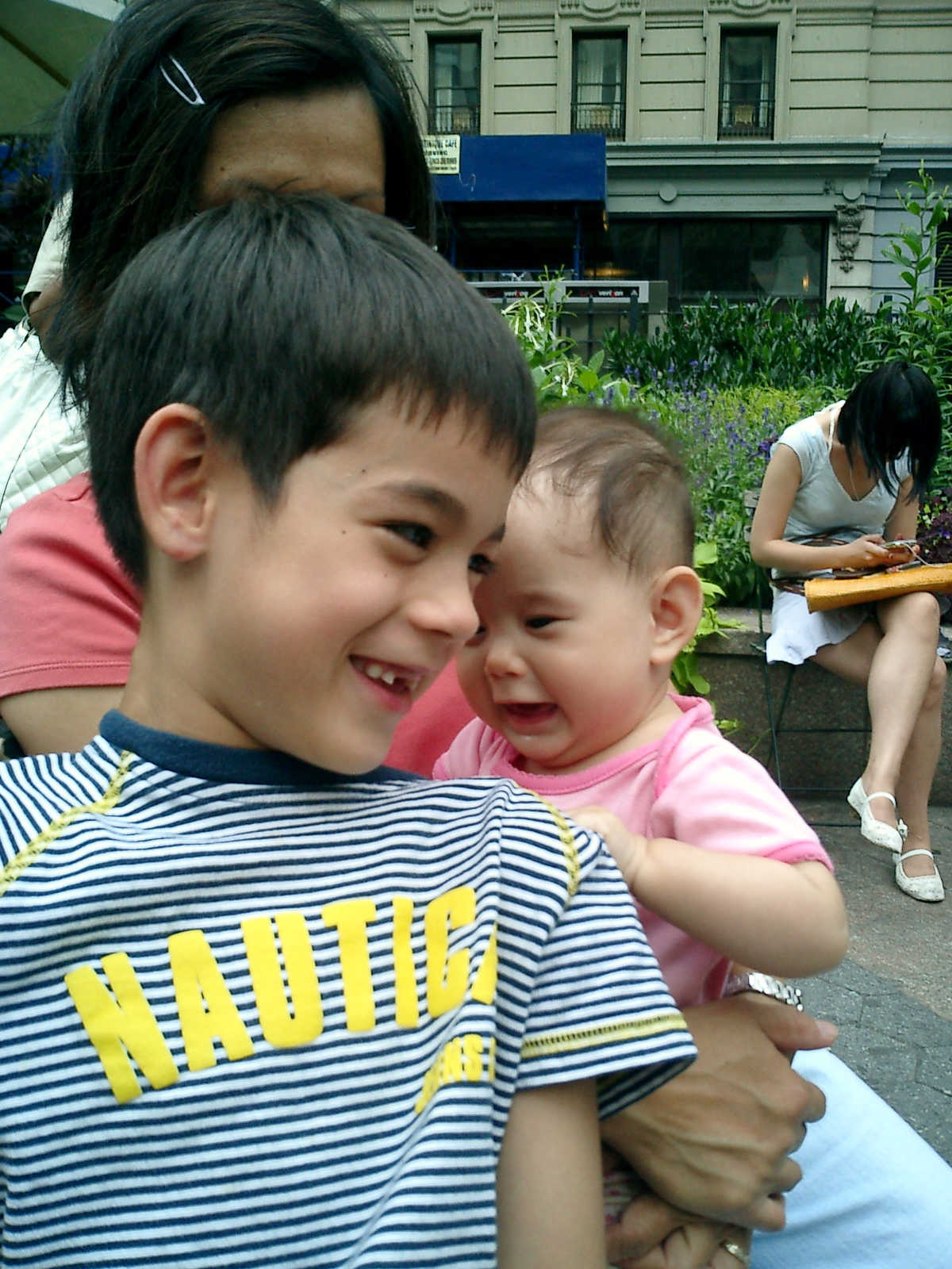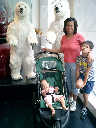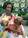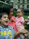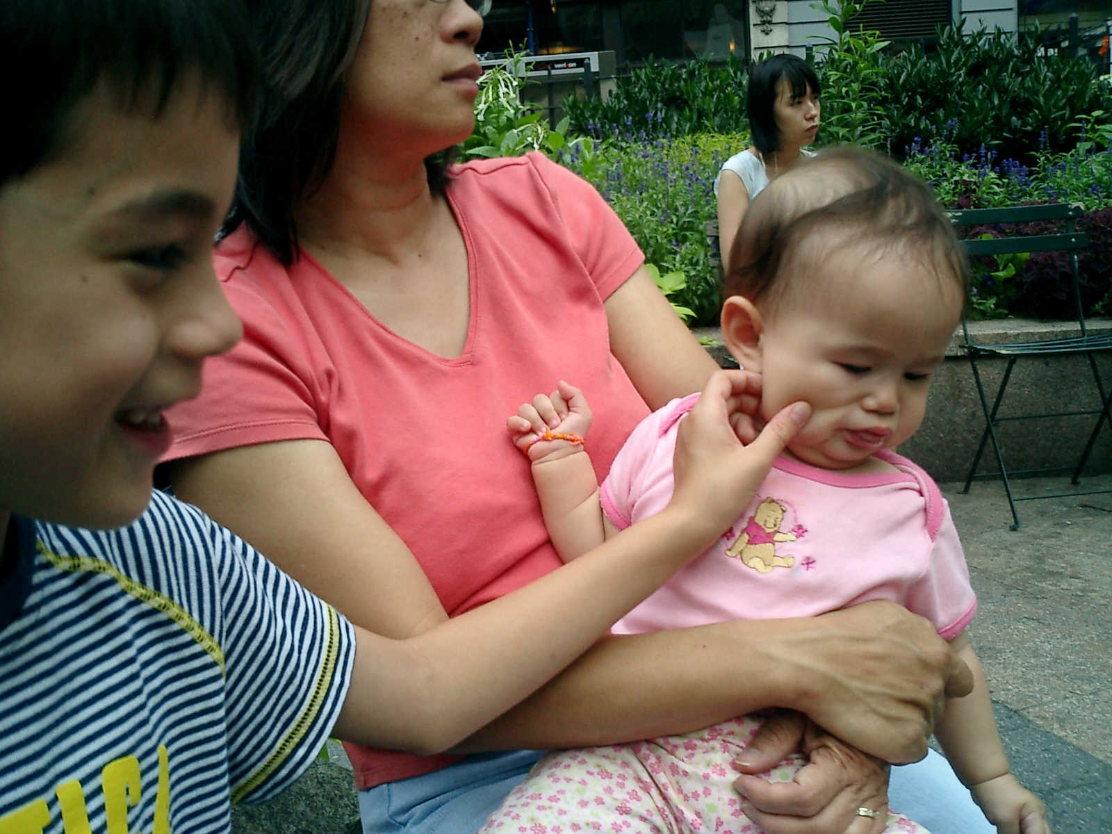 | More New York City! Nadine at 7 and a half months again (July 13, 2007), this time visiting the FAO Schwartz toy store, where Nolan took advantage of the huge Lego display to do a little building of his own. Then, time for a quick pretzel snack and down toward 34th street (via subway) to catch the PATH train to our hotel in New Jersey. How were the New Yorkers? As friendly as could be -- Nadine won them over with her smile! |