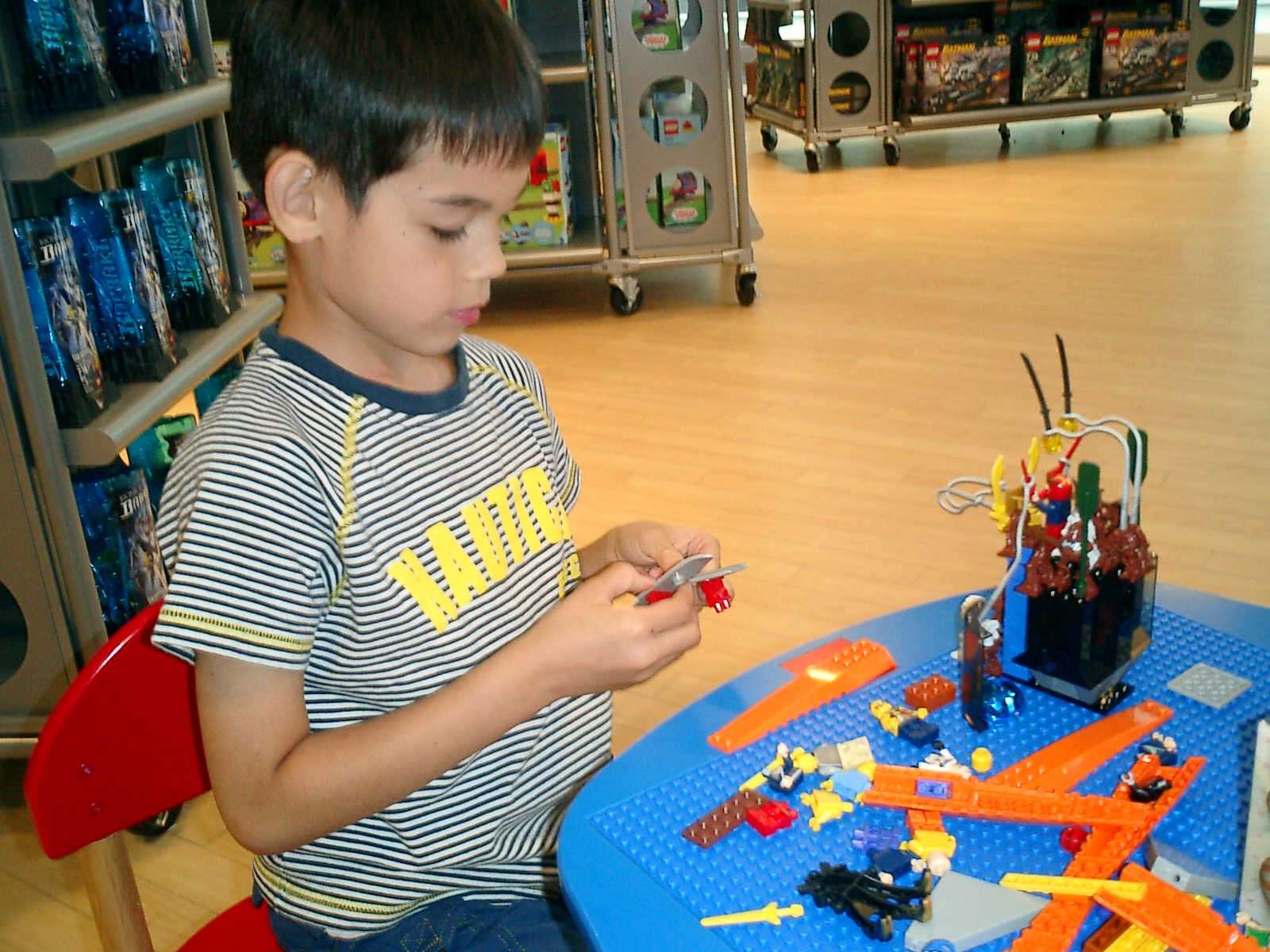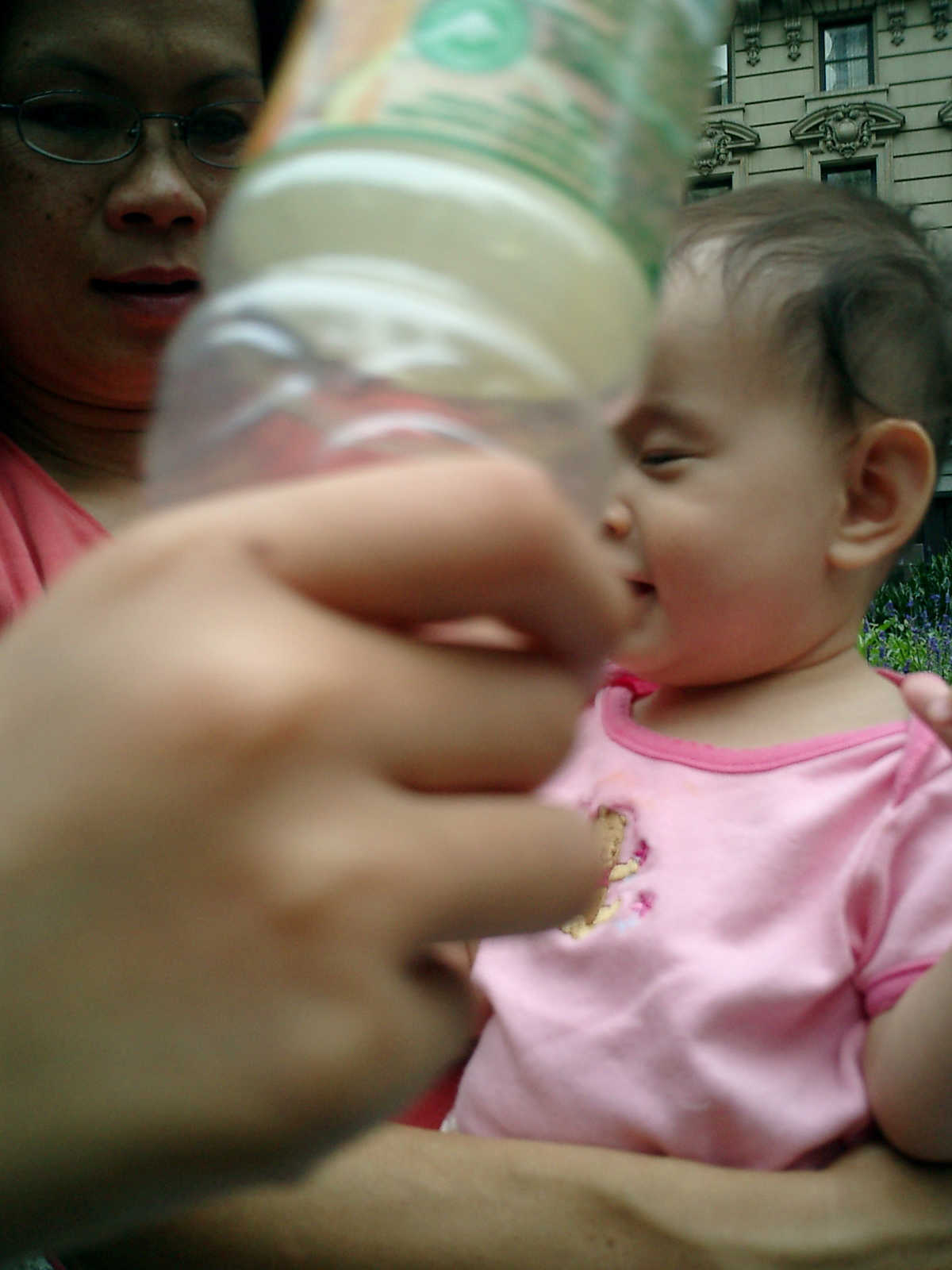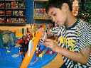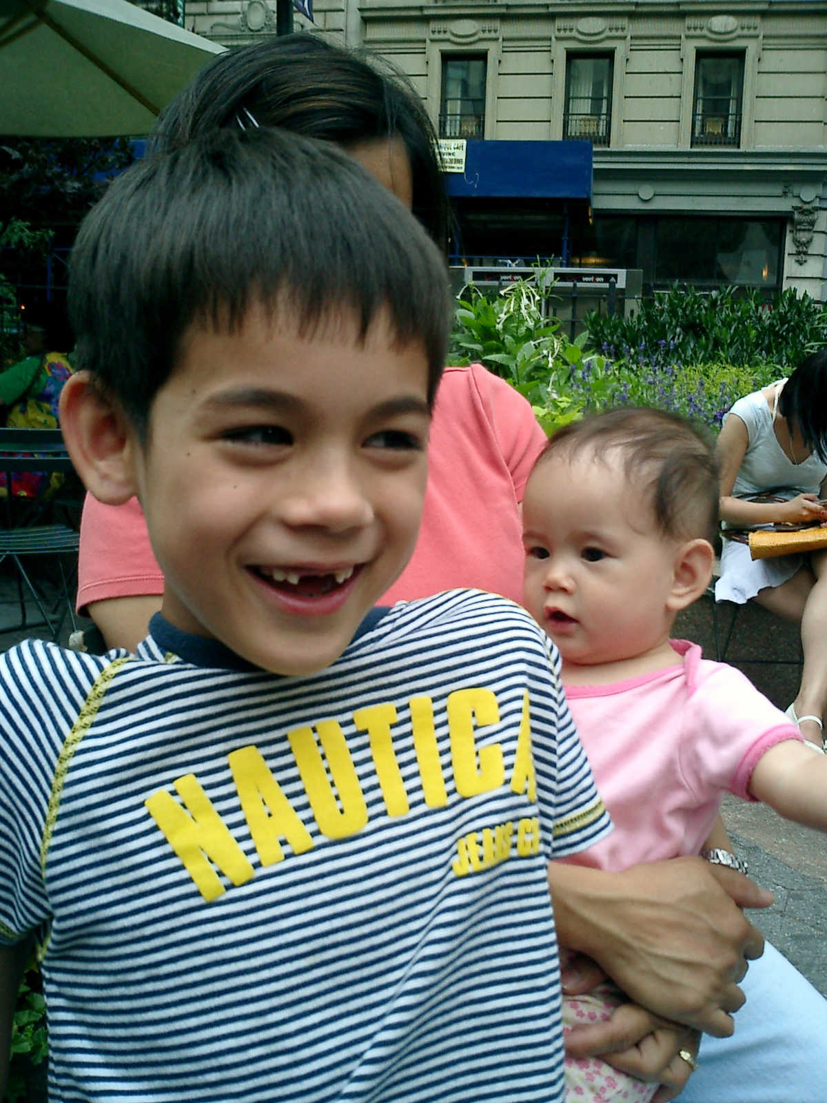 | More New York City! Nadine at 7 and a half months again (July 13, 2007), this time visiting the FAO Schwartz toy store, where Nolan took advantage of the huge Lego display to do a little building of his own. Then, time for a quick pretzel snack and down toward 34th street (via subway) to catch the PATH train to our hotel in New Jersey. How were the New Yorkers? As friendly as could be -- Nadine won them over with her smile! |