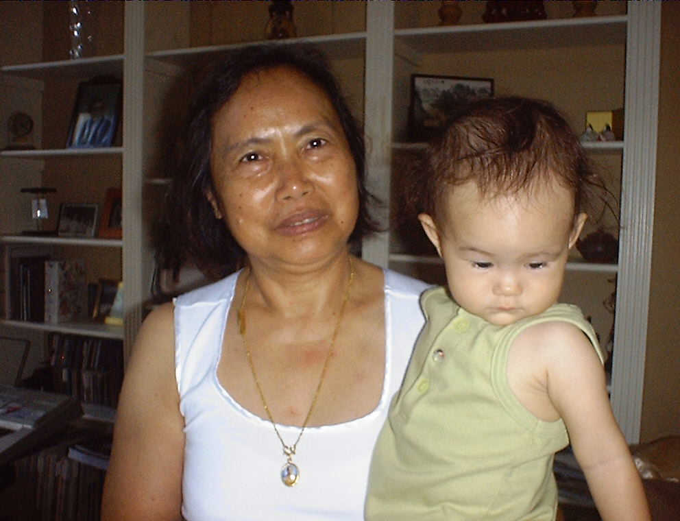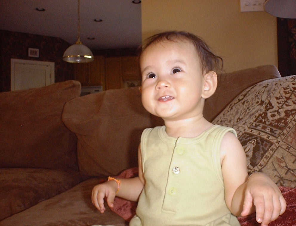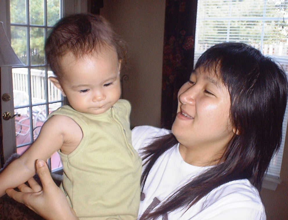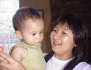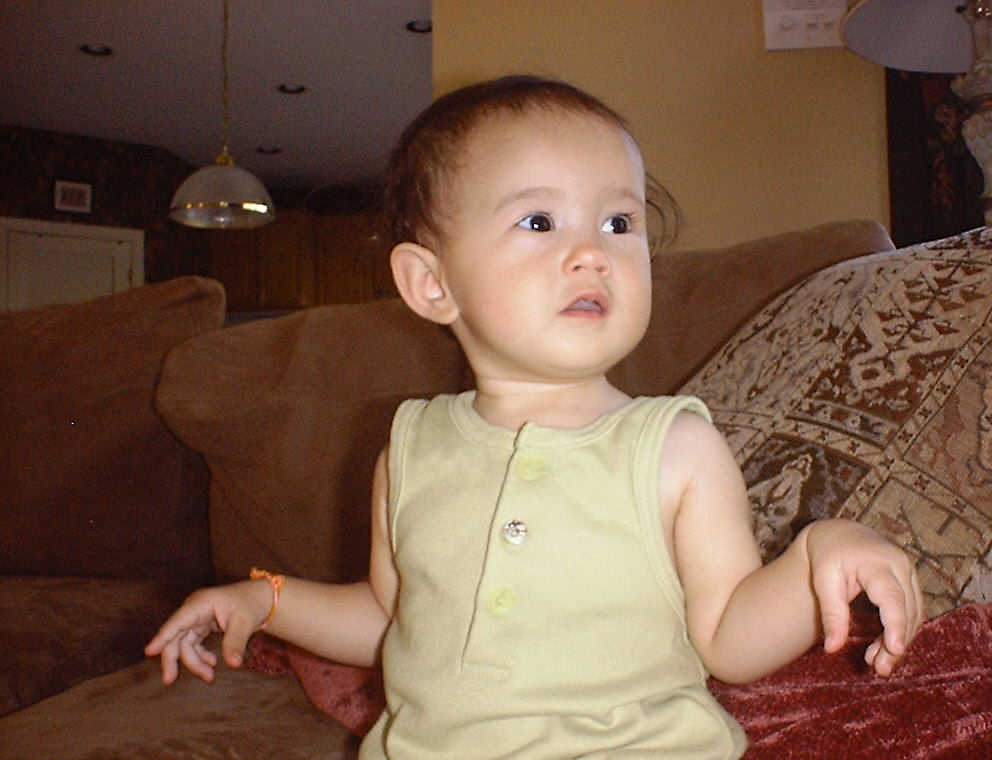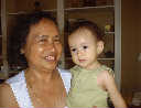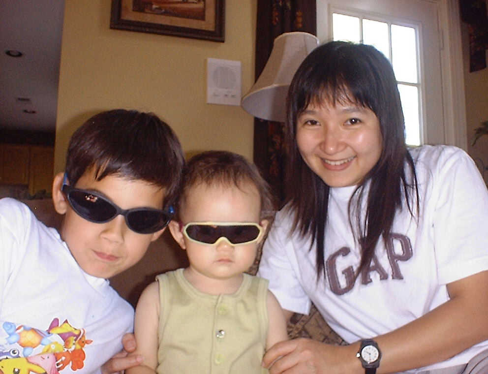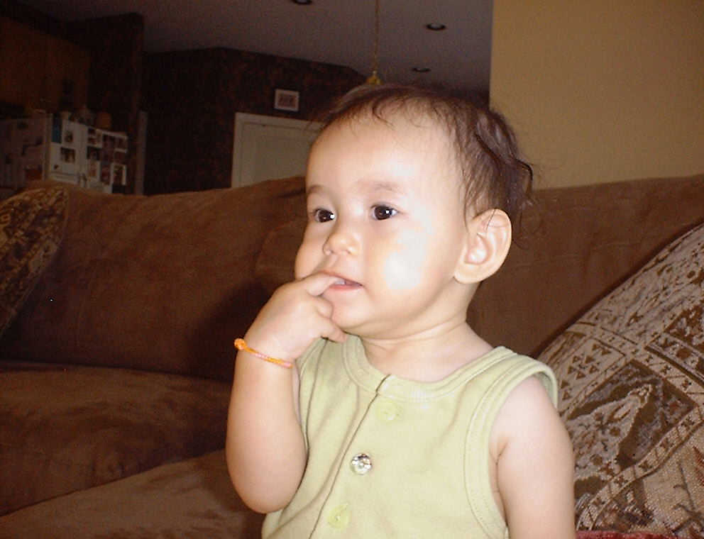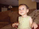 | Nadine at 10 and a half months (Oct 8, 2007), celebrating Columbus Day with her brother Nolan by trying on some cool shades to beat the heat. Both of you look like movie stars! Nadine, you look happy to have visitors; it that Aunt Tuke and Great Aunt Tai? |