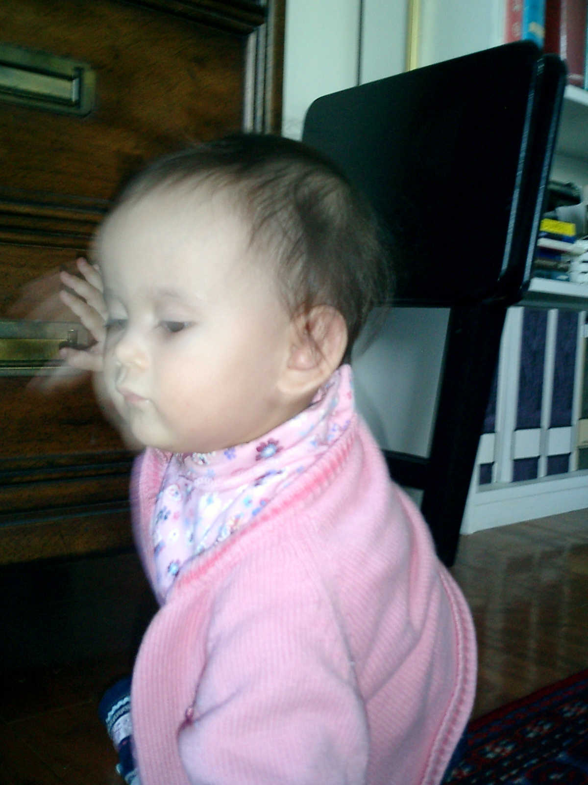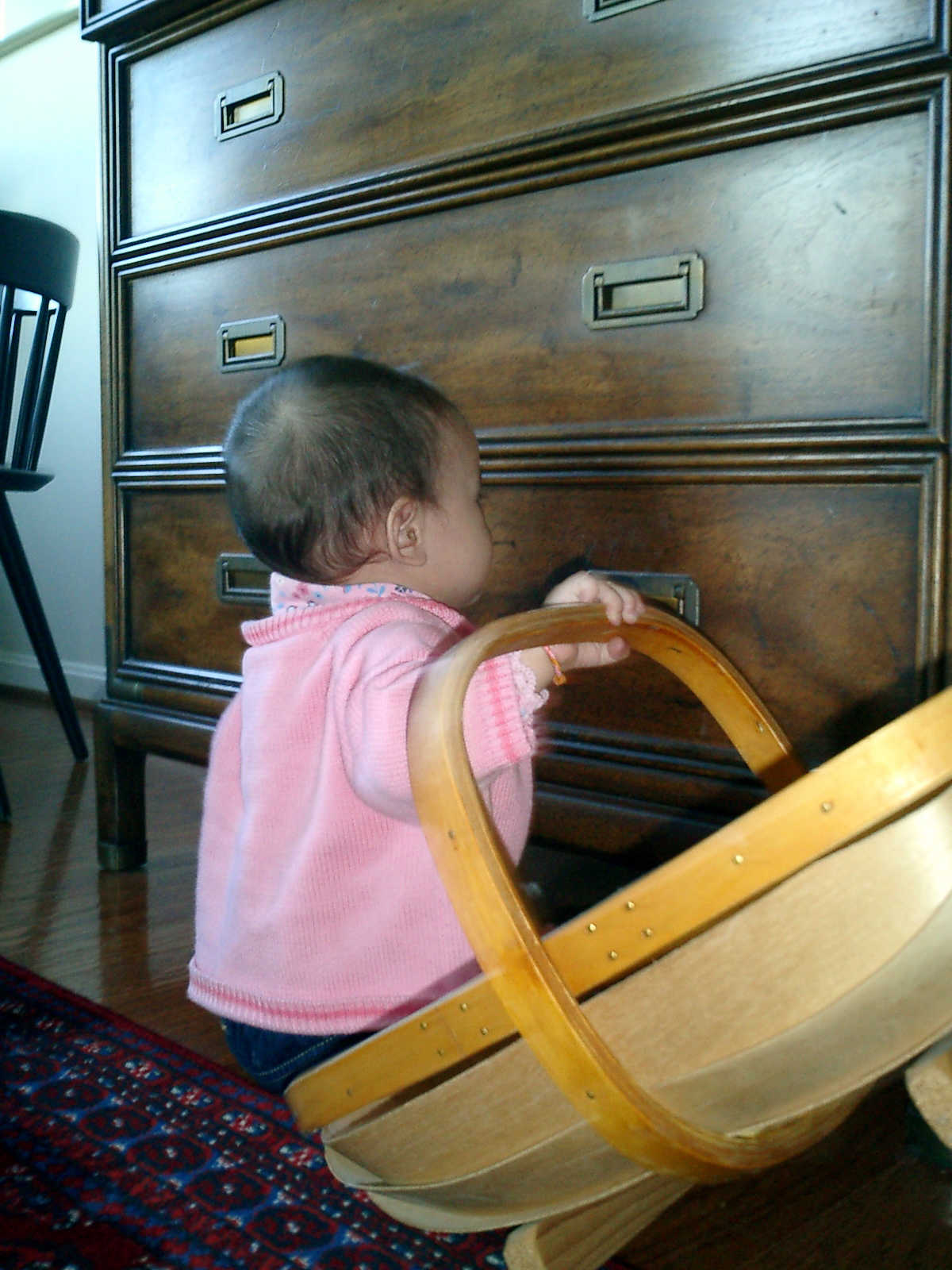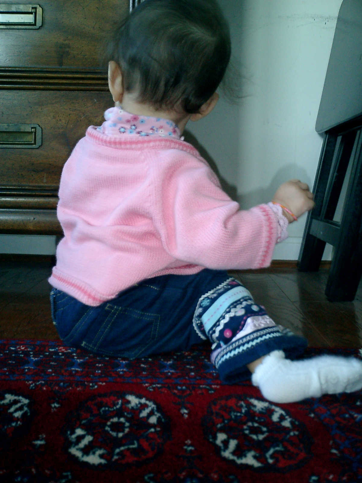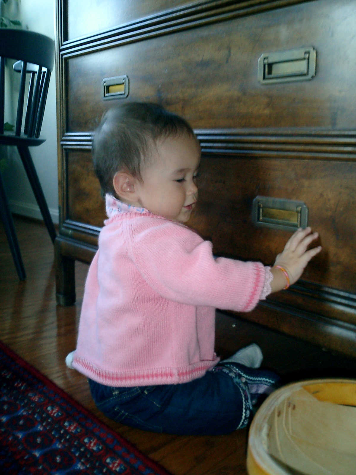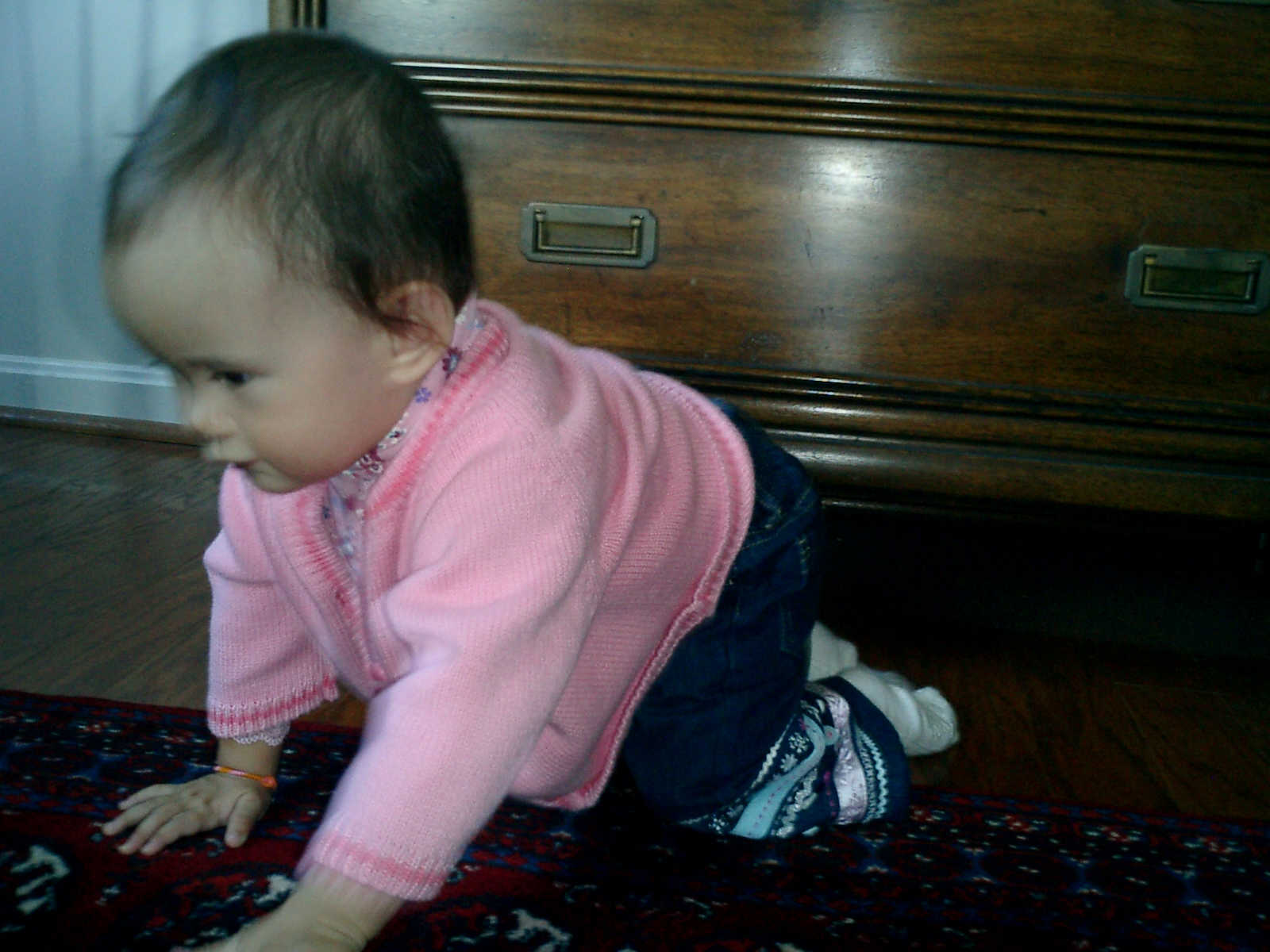 Nadine at 11 months (Oct 13, 2007), visiting Grandma Alexander's home and showing us how well she has learned to crawl. Nadine is very active: no time to sit still, so much to explore!