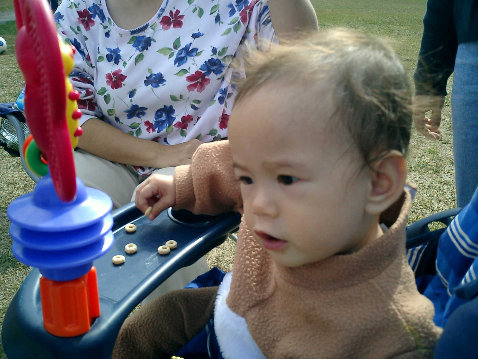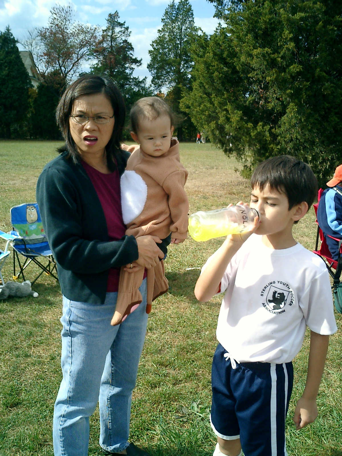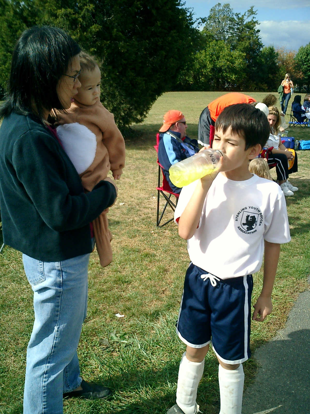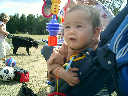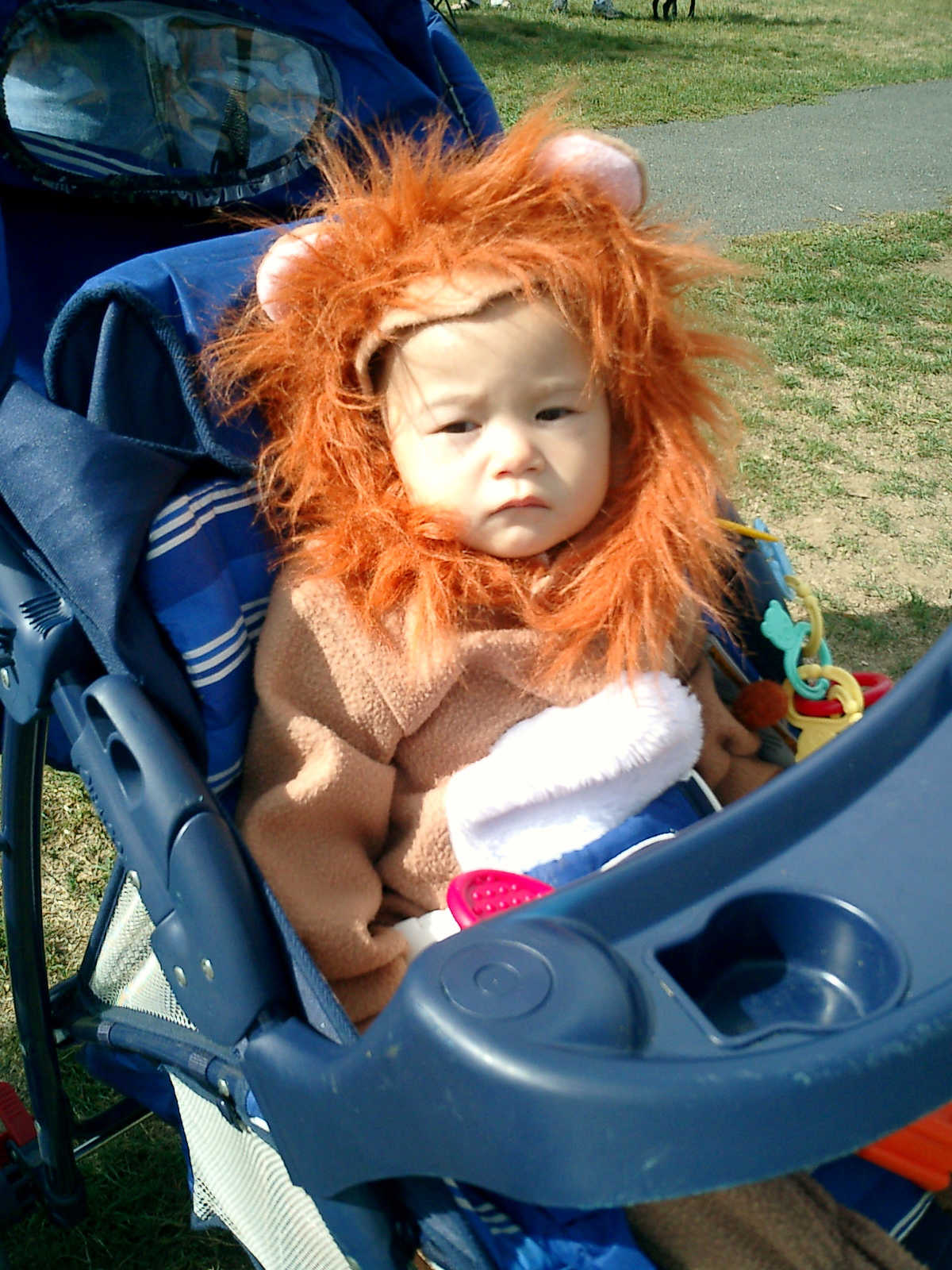Nadine at 11 months (Oct 20, 2007), watching Nolan play soccer, wearing her lioness costume because it was a little cool. Nadine, not everyone gets to dress up like that -- how stylish!