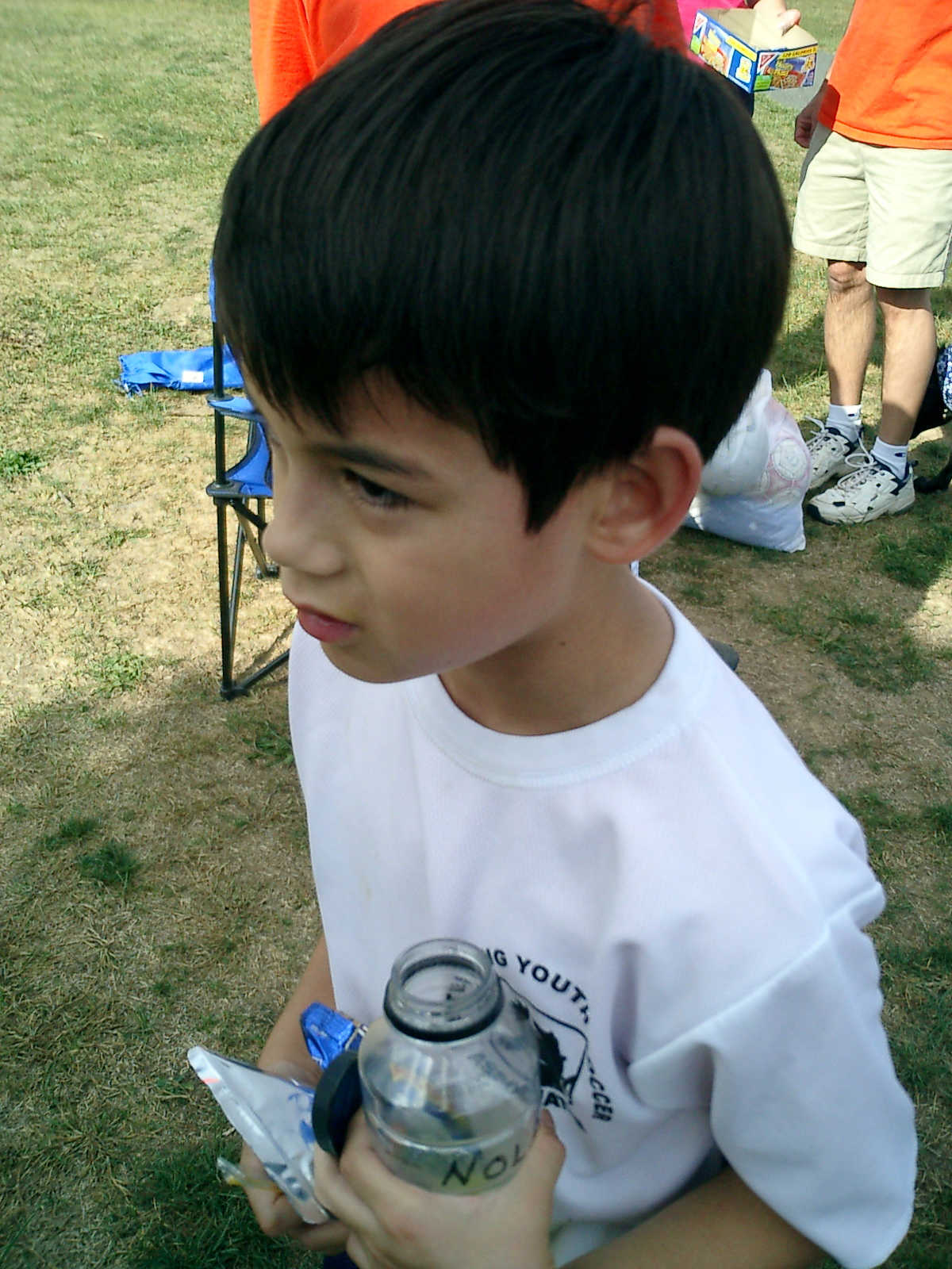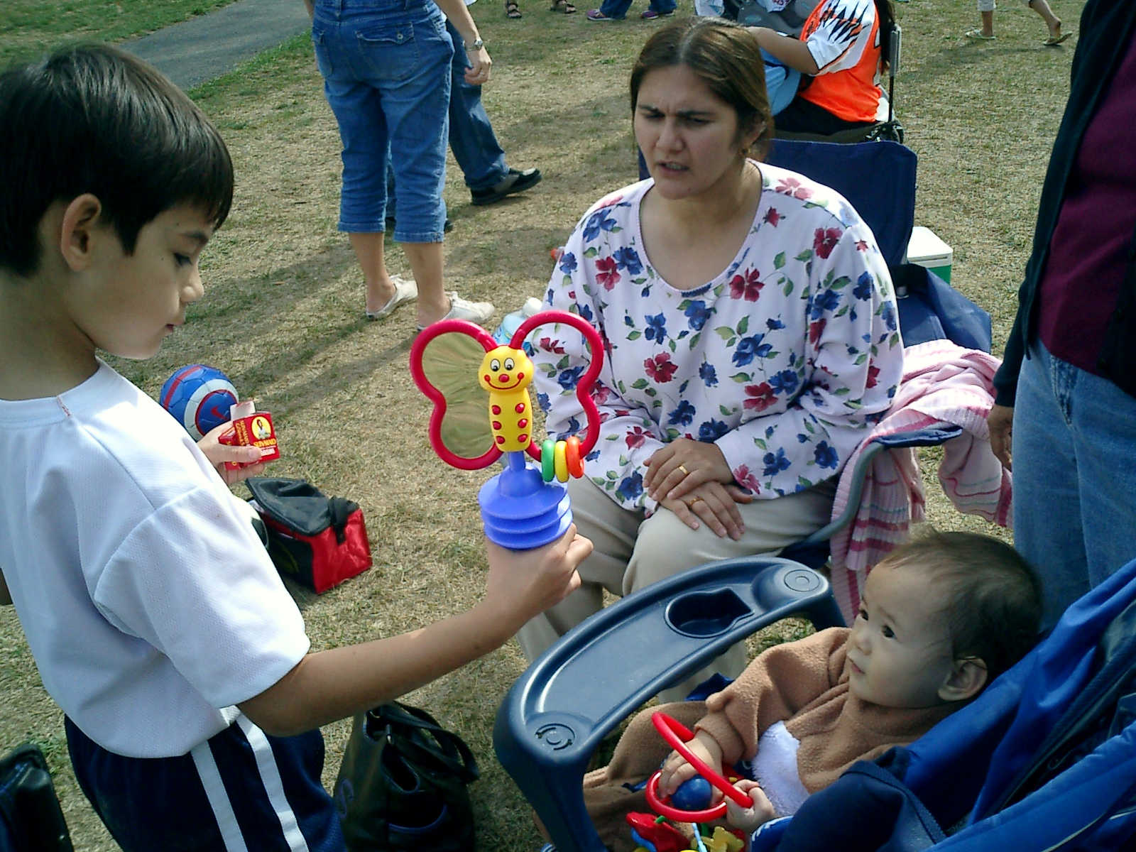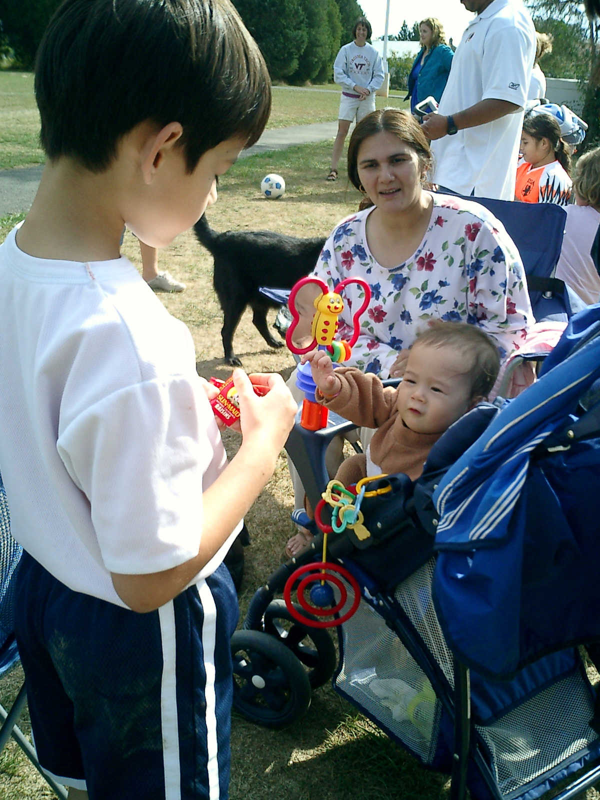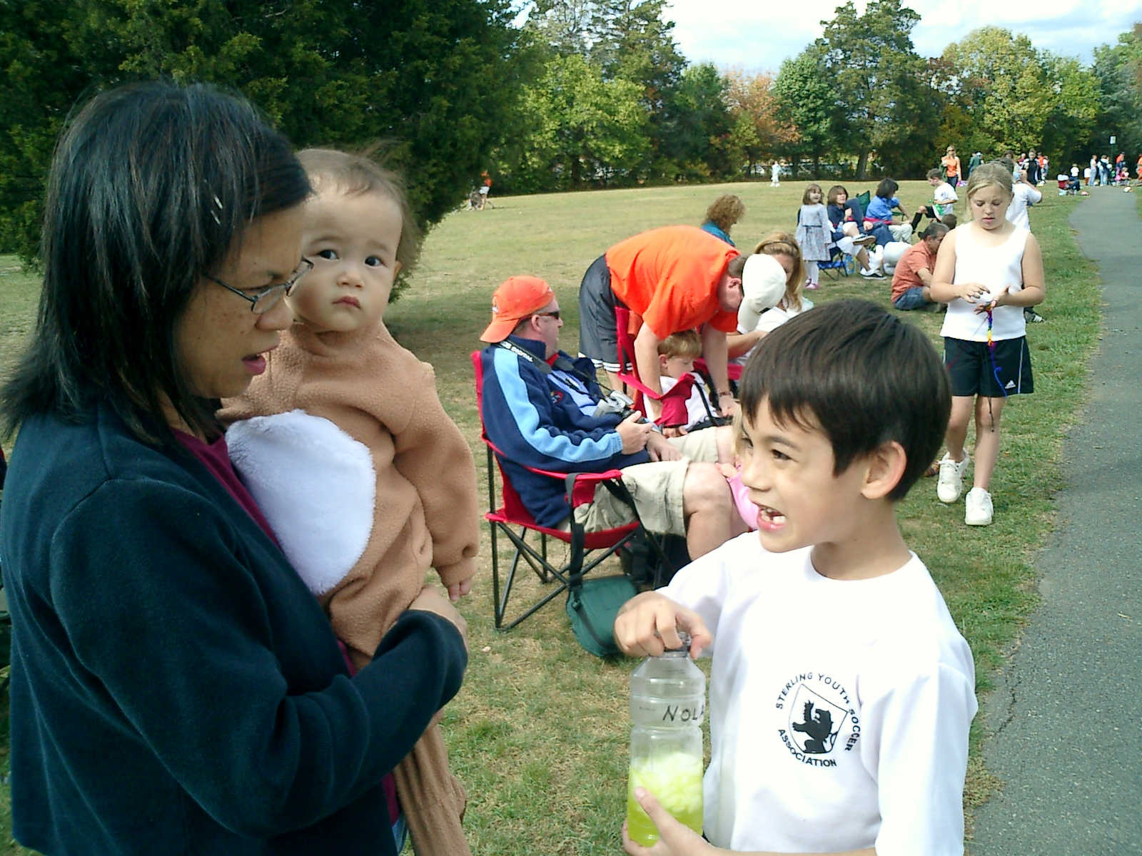 Nadine at 11 months (Oct 20, 2007), watching Nolan play soccer, wearing her lioness costume because it was a little cool. Nadine, not everyone gets to dress up like that -- how stylish!