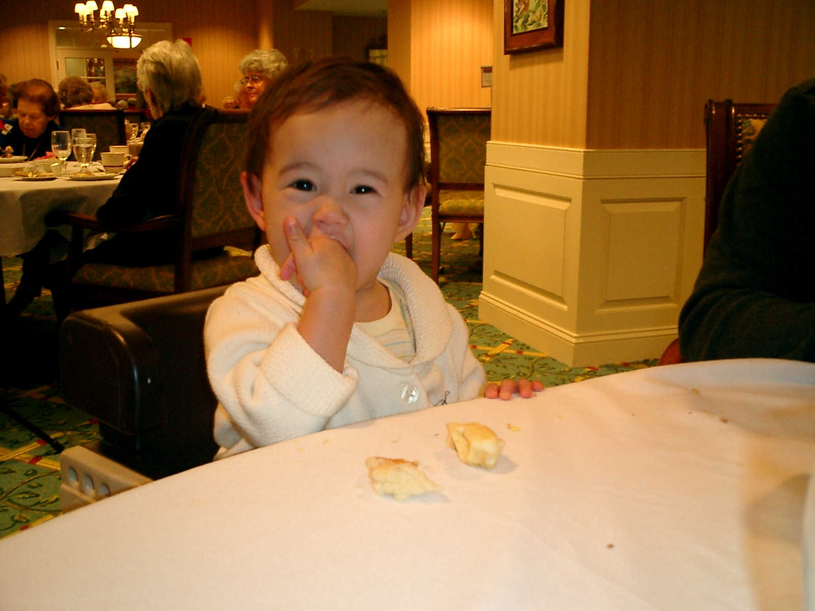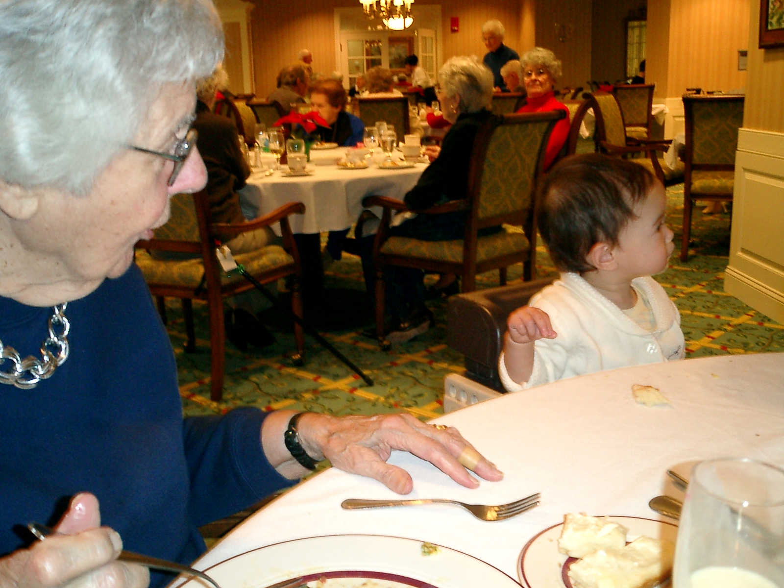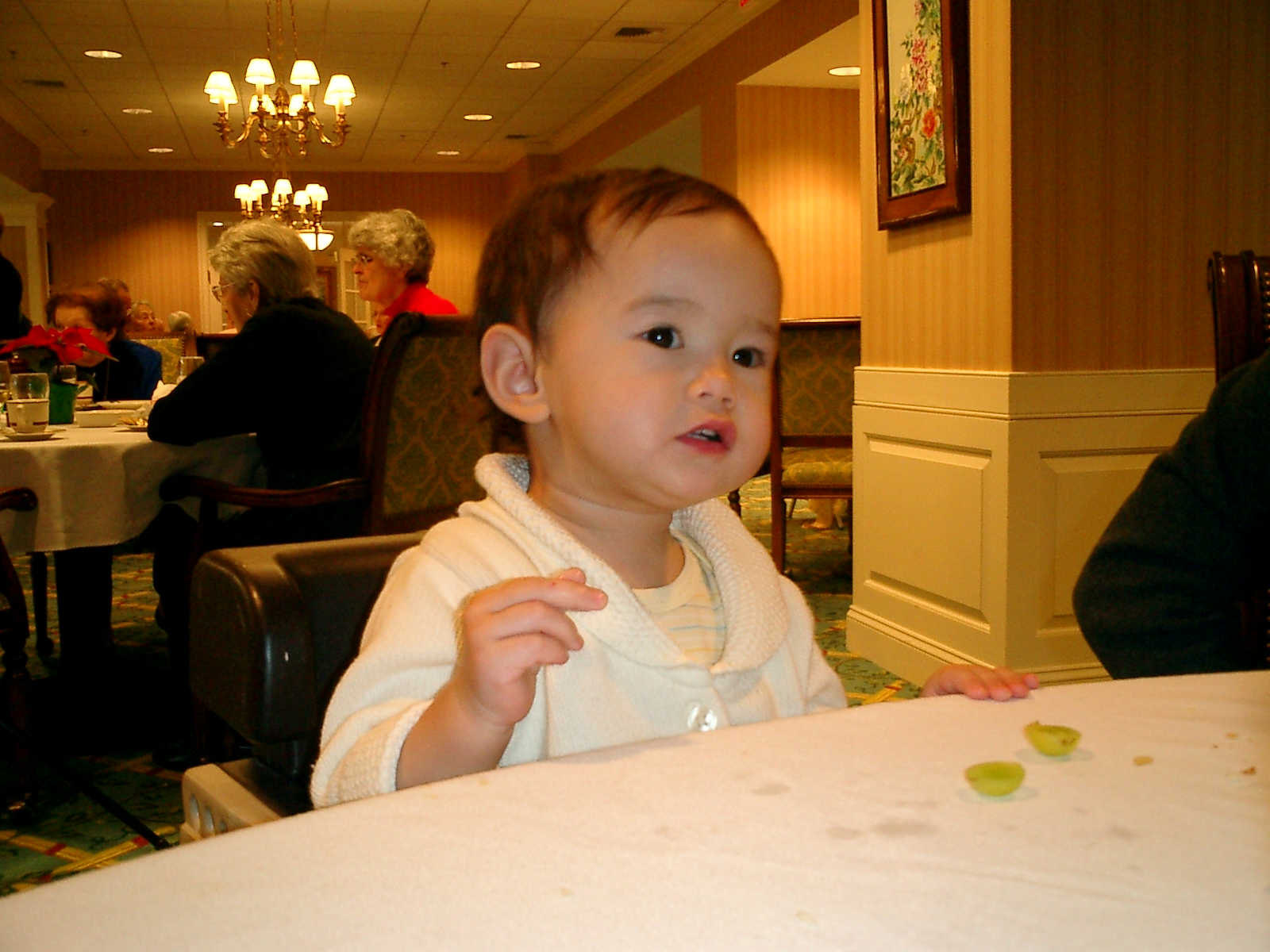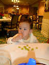 Nadine at 13 months (Jan 1, 2008), celebrating New Years Day at Grandma Alexander's home. What a nice lunch we all had, especially you Nadine, as the star of the dining room!
