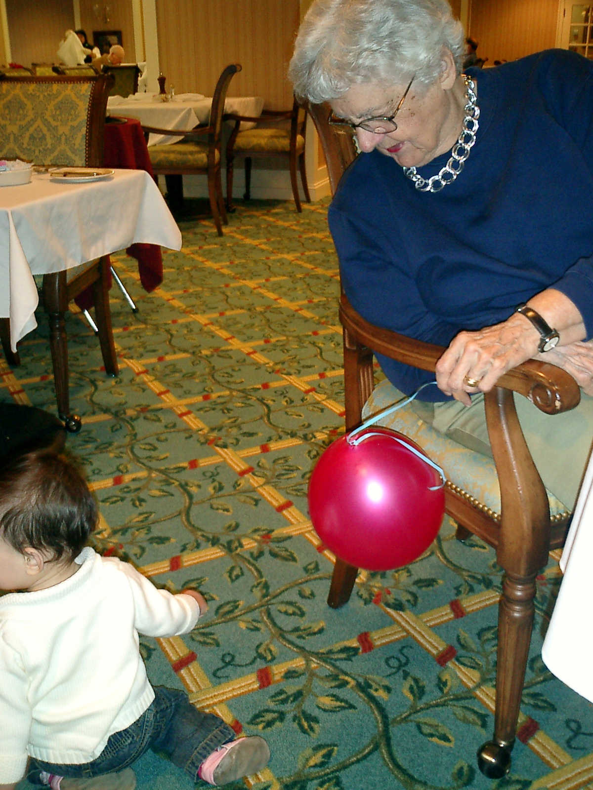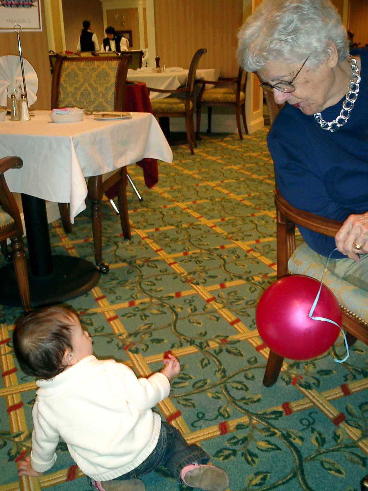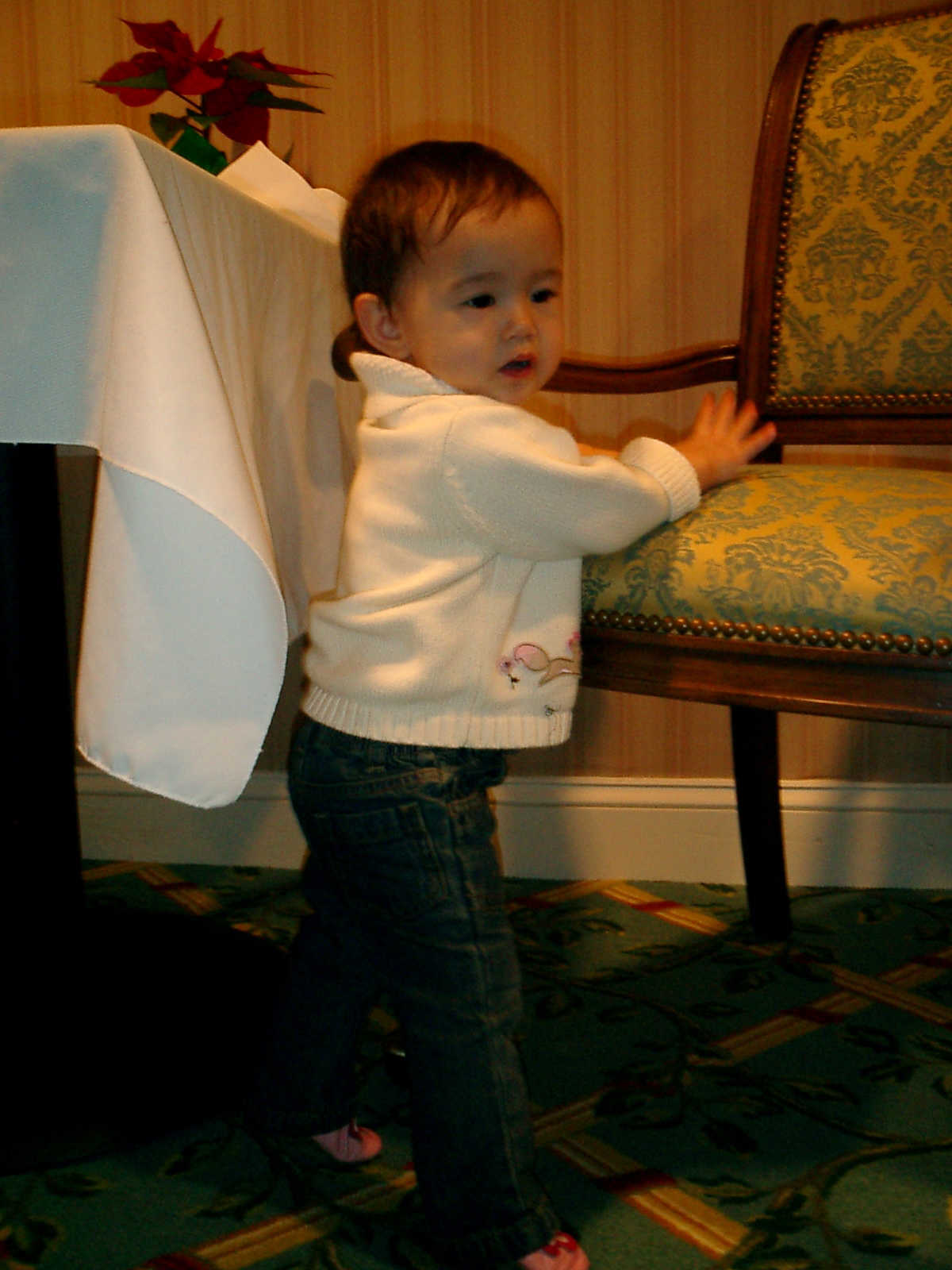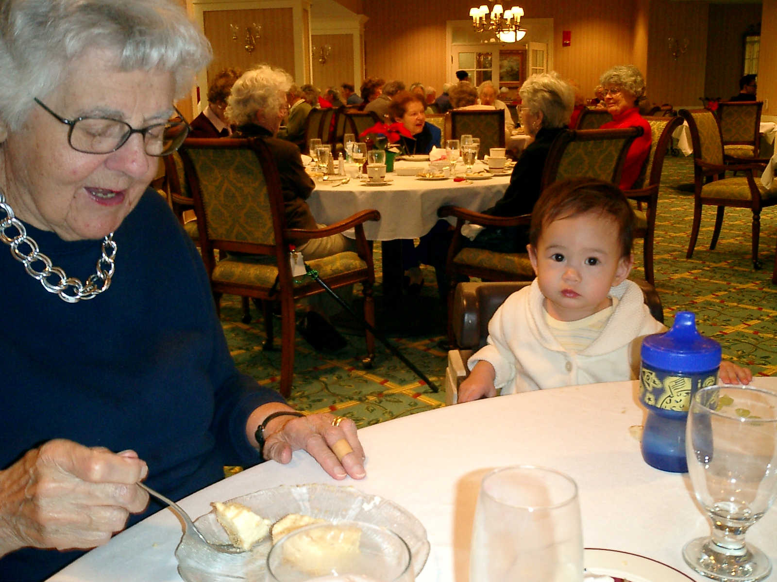 Nadine at 13 months (Jan 1, 2008), celebrating New Years Day at Grandma Alexander's home. What a nice lunch we all had, especially you Nadine, as the star of the dining room!