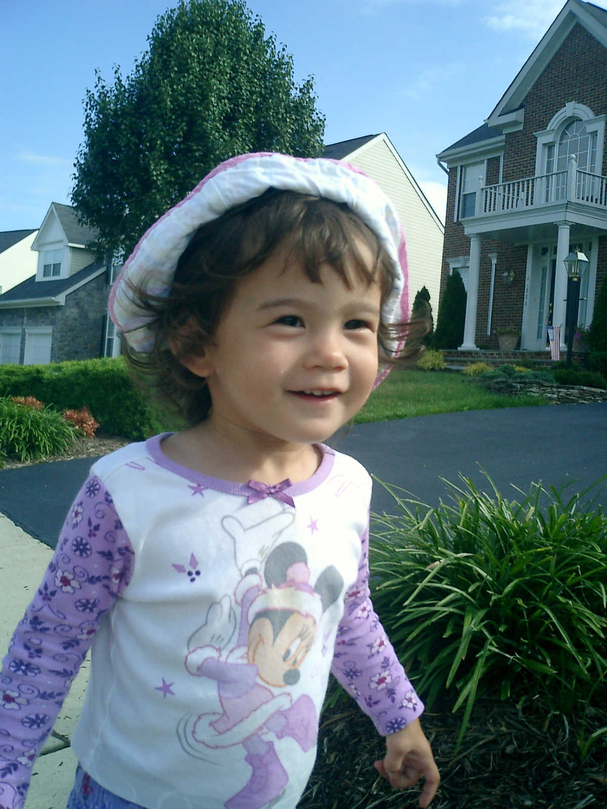 Nadine at 21 months (August 31, 2008), showing off another of her Summer hats. Very pretty, Nadine!