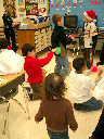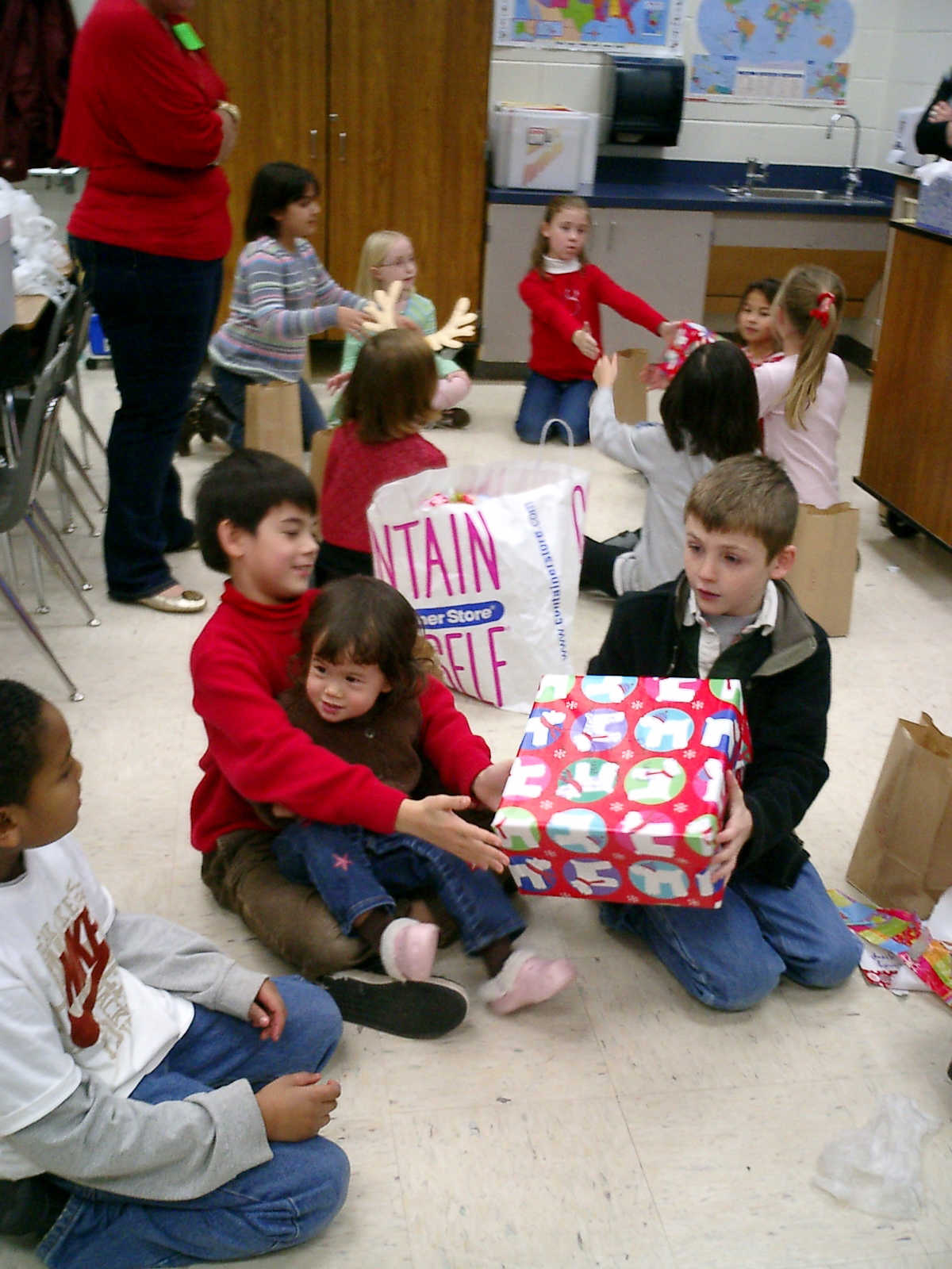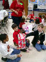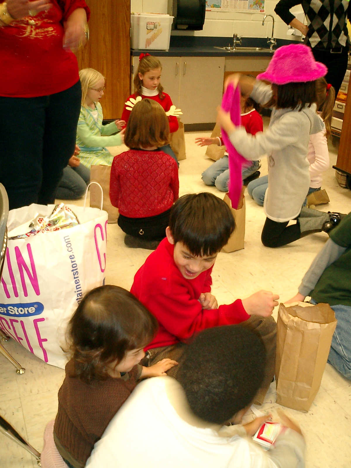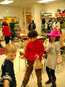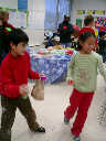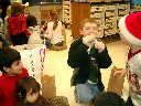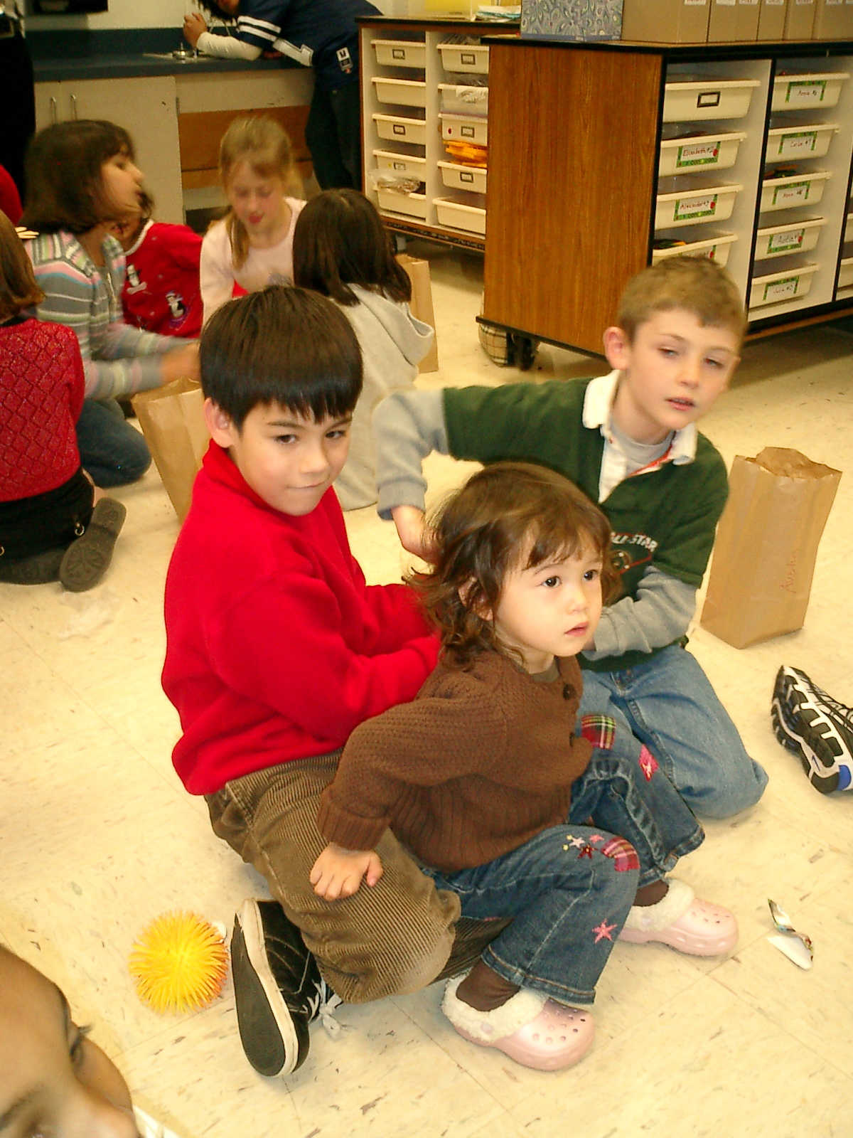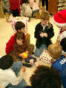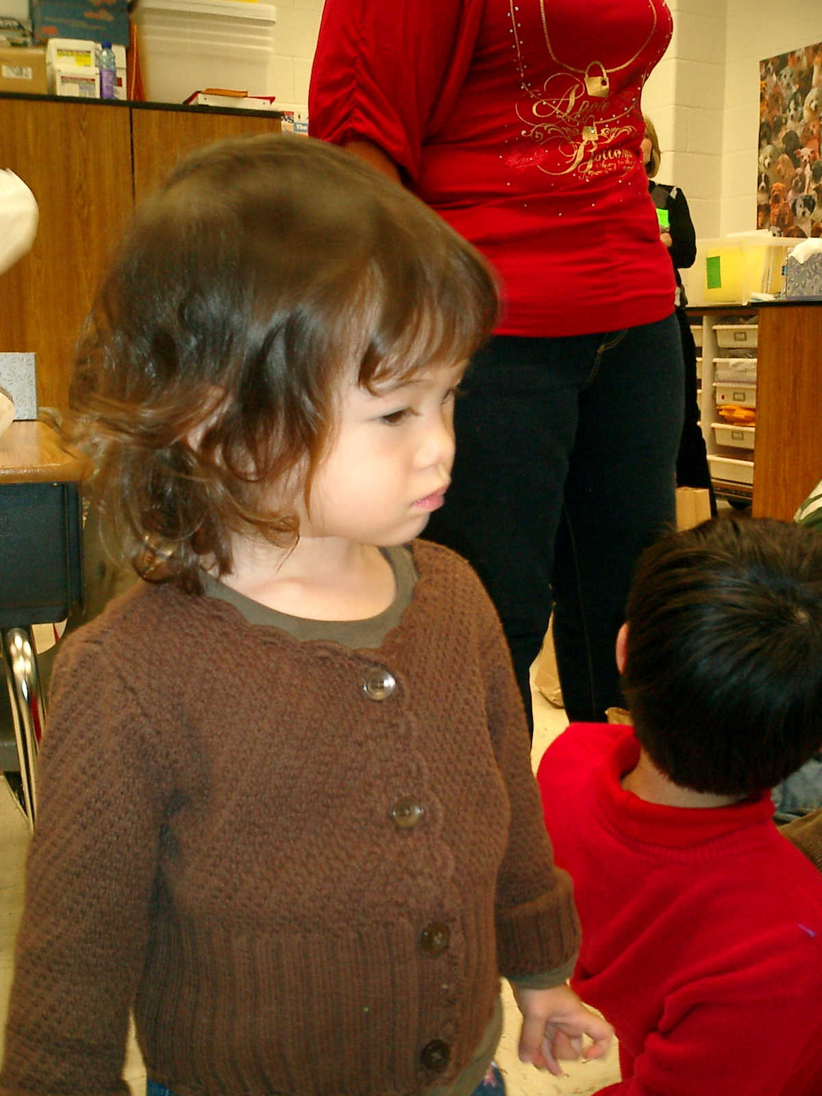Nadine at 25 months (December 11, 2008), having fun at Nolan's school Christmas party, where Nolan's class played a game to open presents. Nadine, you were right in the middle, weren't you?