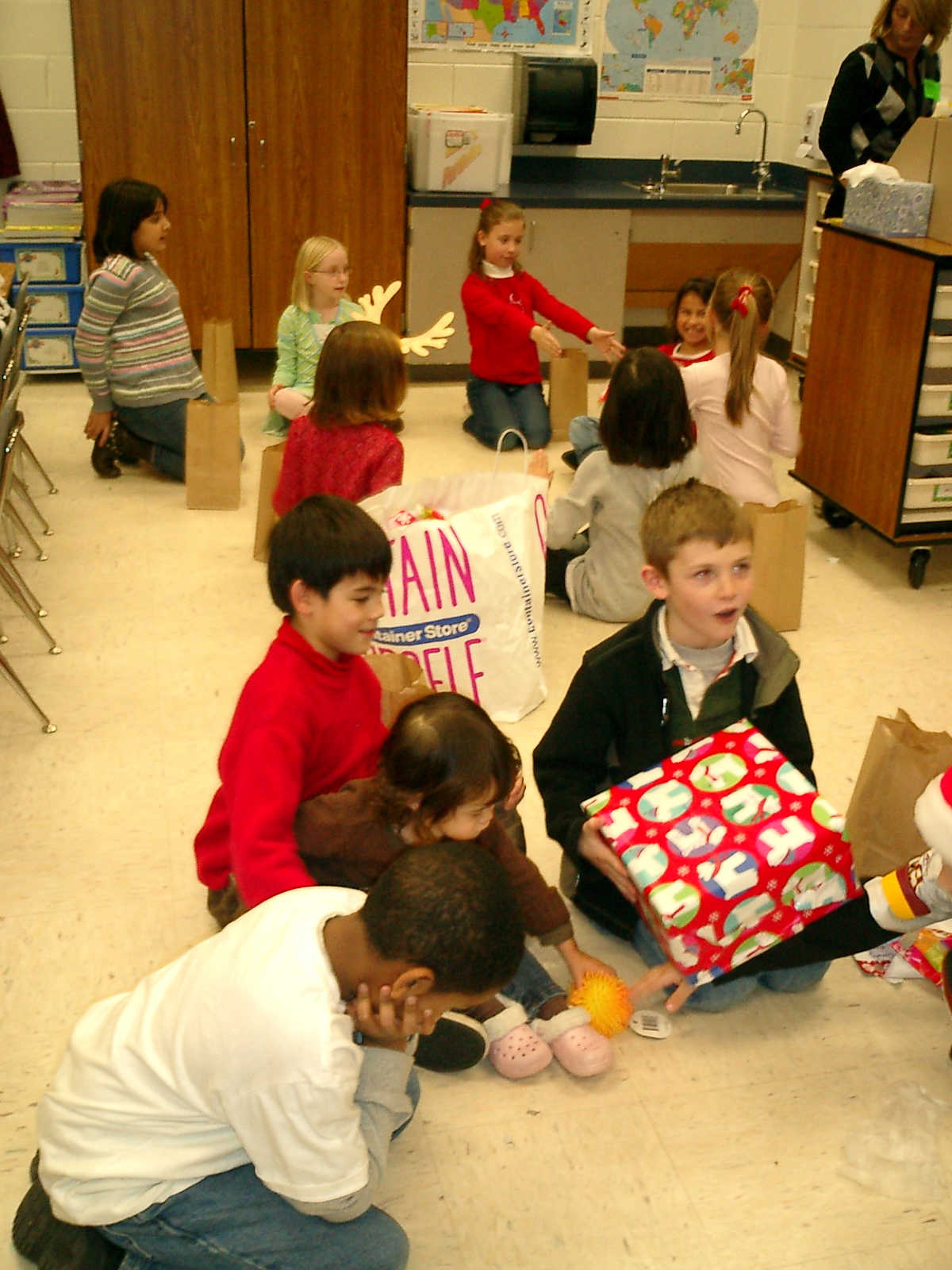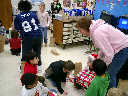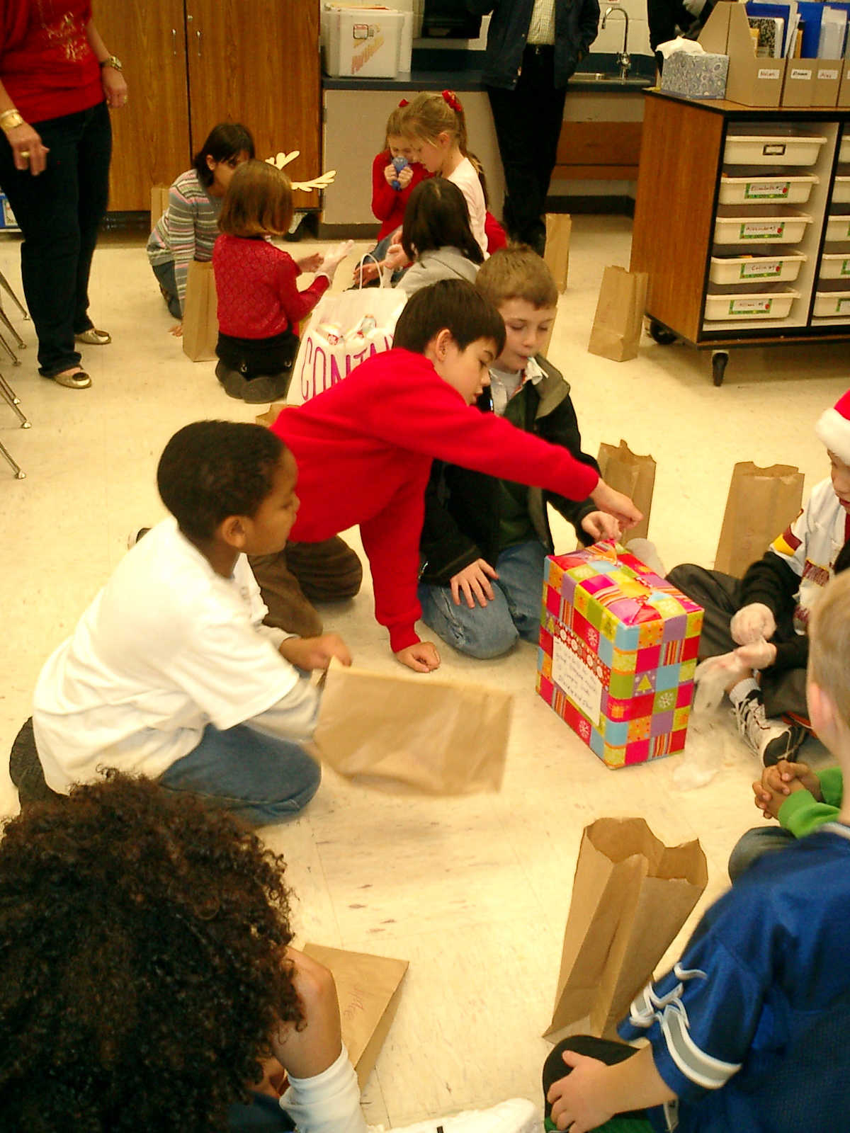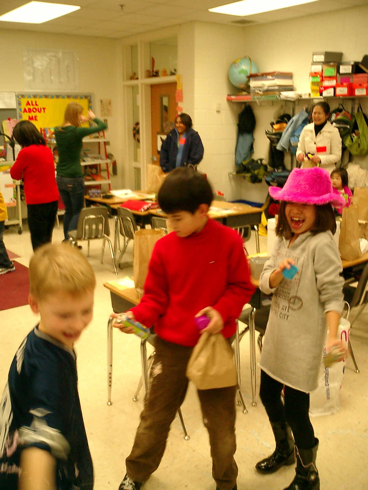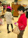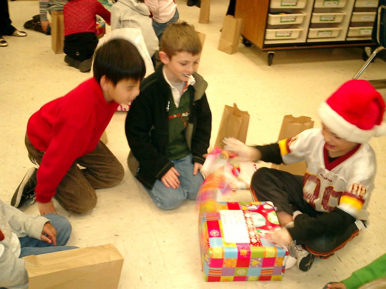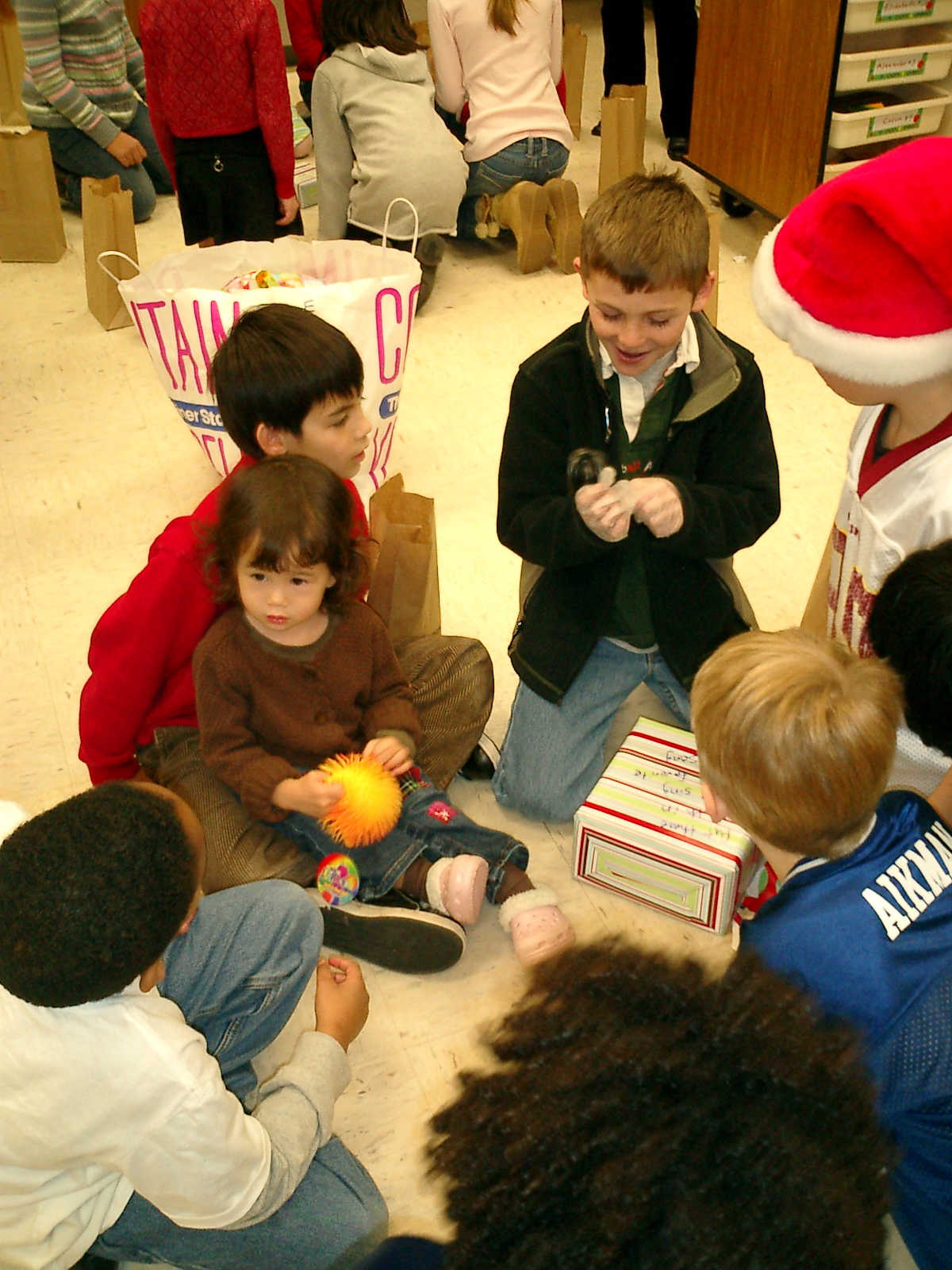 Nadine at 25 months (December 11, 2008), having fun at Nolan's school Christmas party, where Nolan's class played a game to open presents. Nadine, you were right in the middle, weren't you?