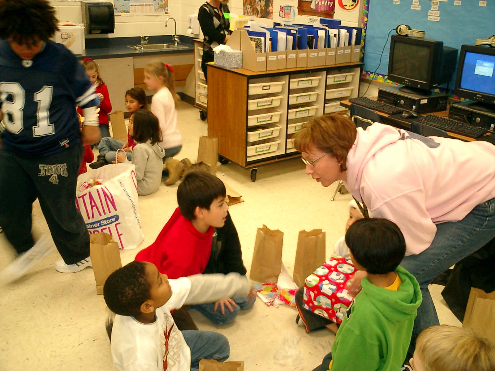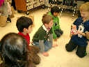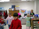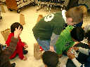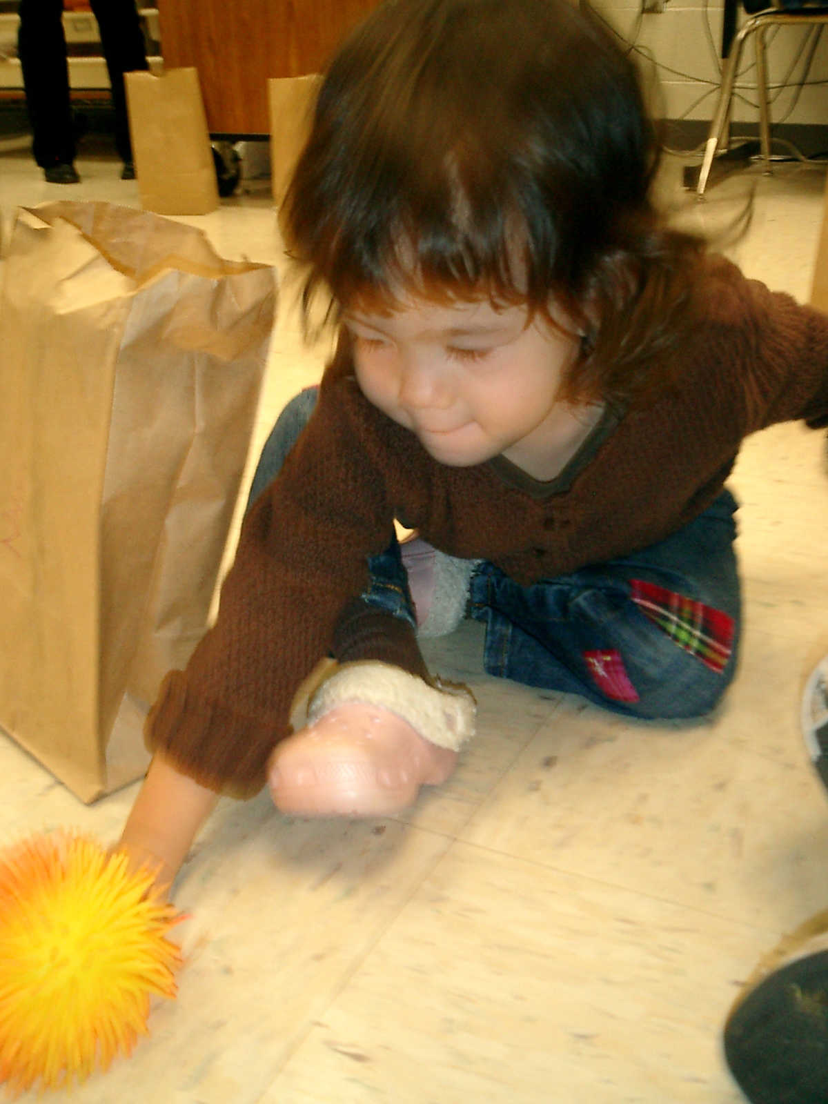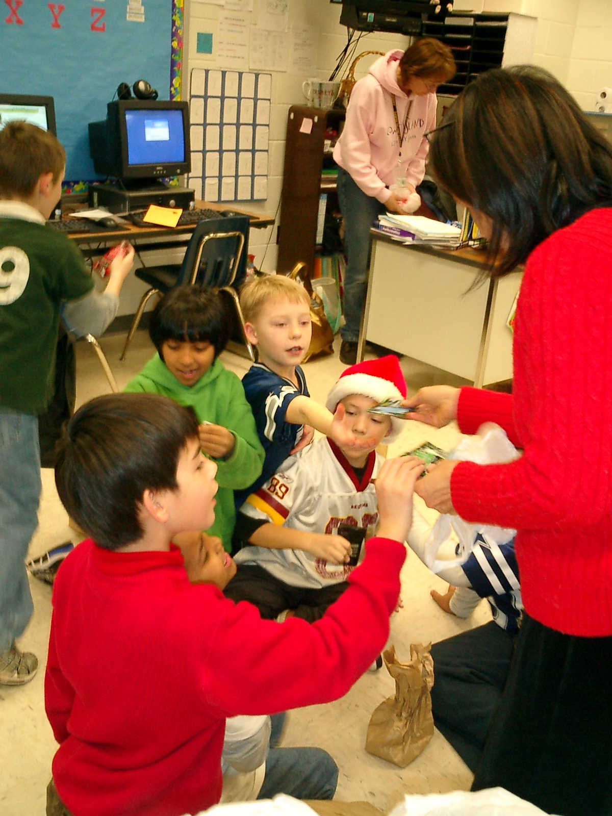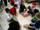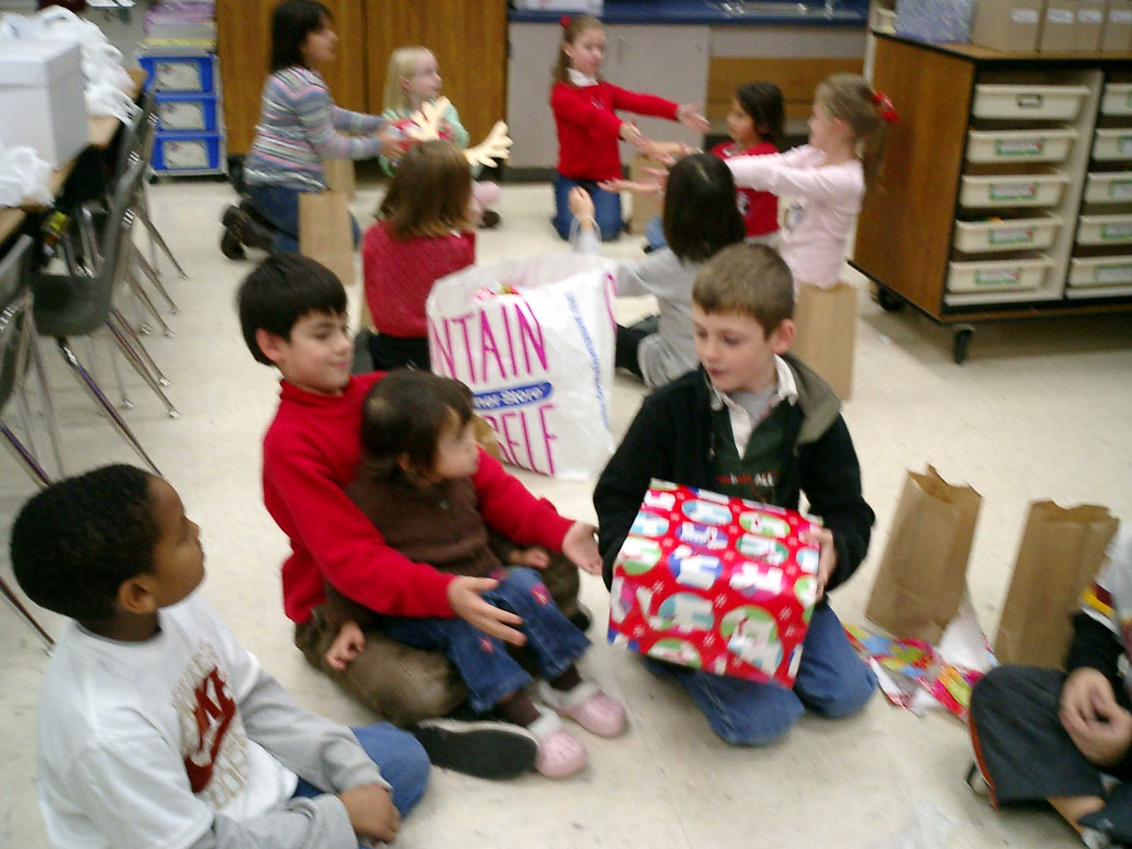 Nadine at 25 months (December 11, 2008), having fun at Nolan's school Christmas party, where Nolan's class played a game to open presents. Nadine, you were right in the middle, weren't you?