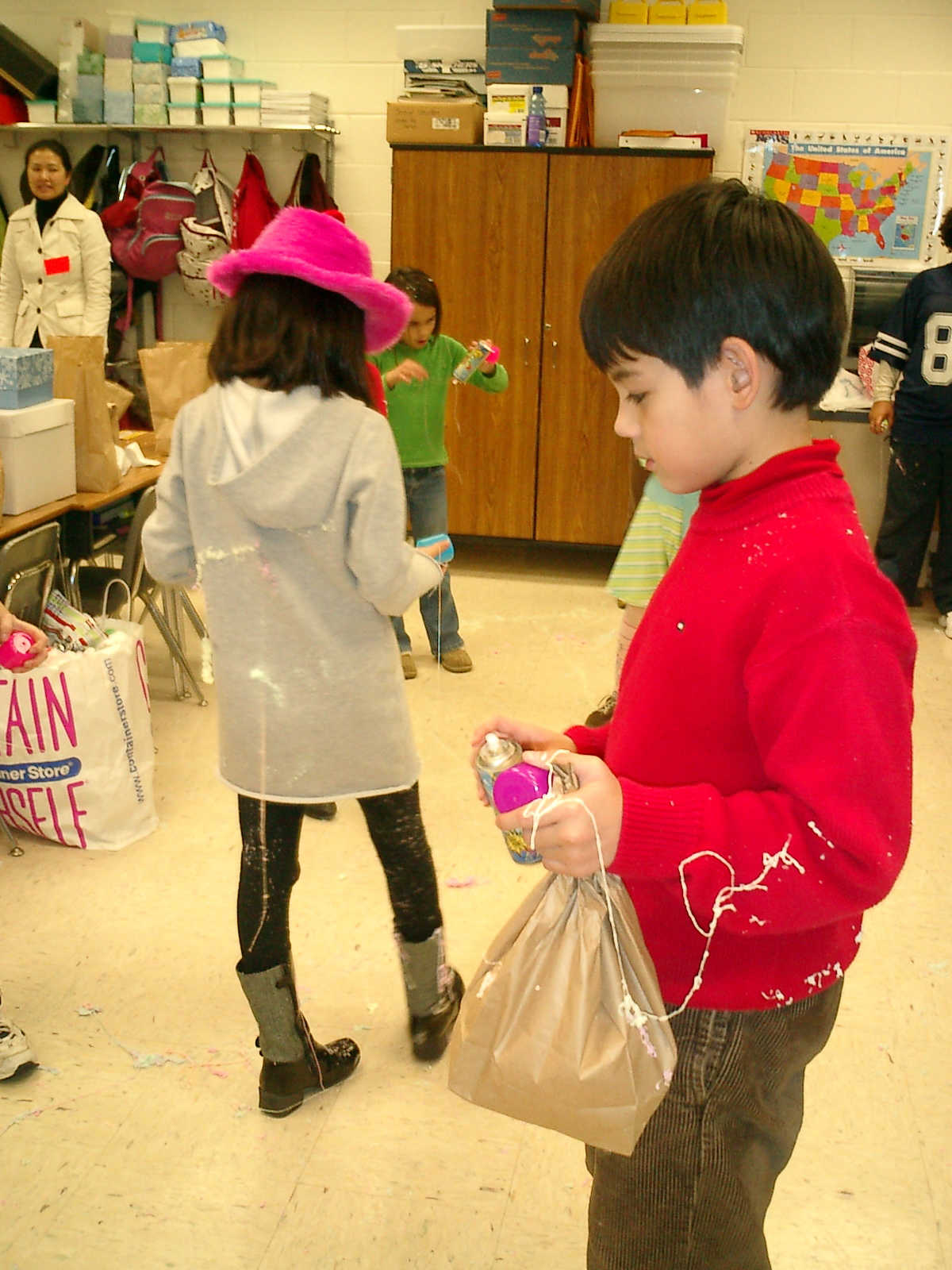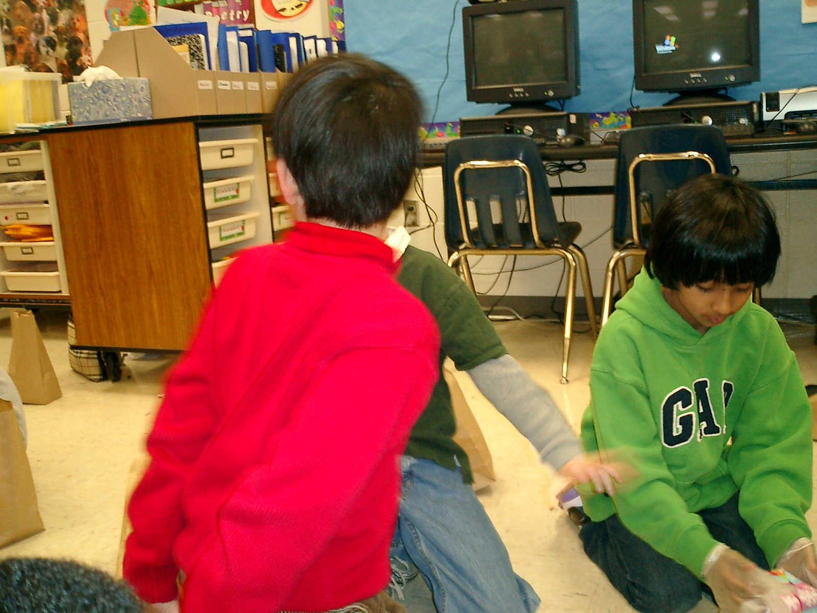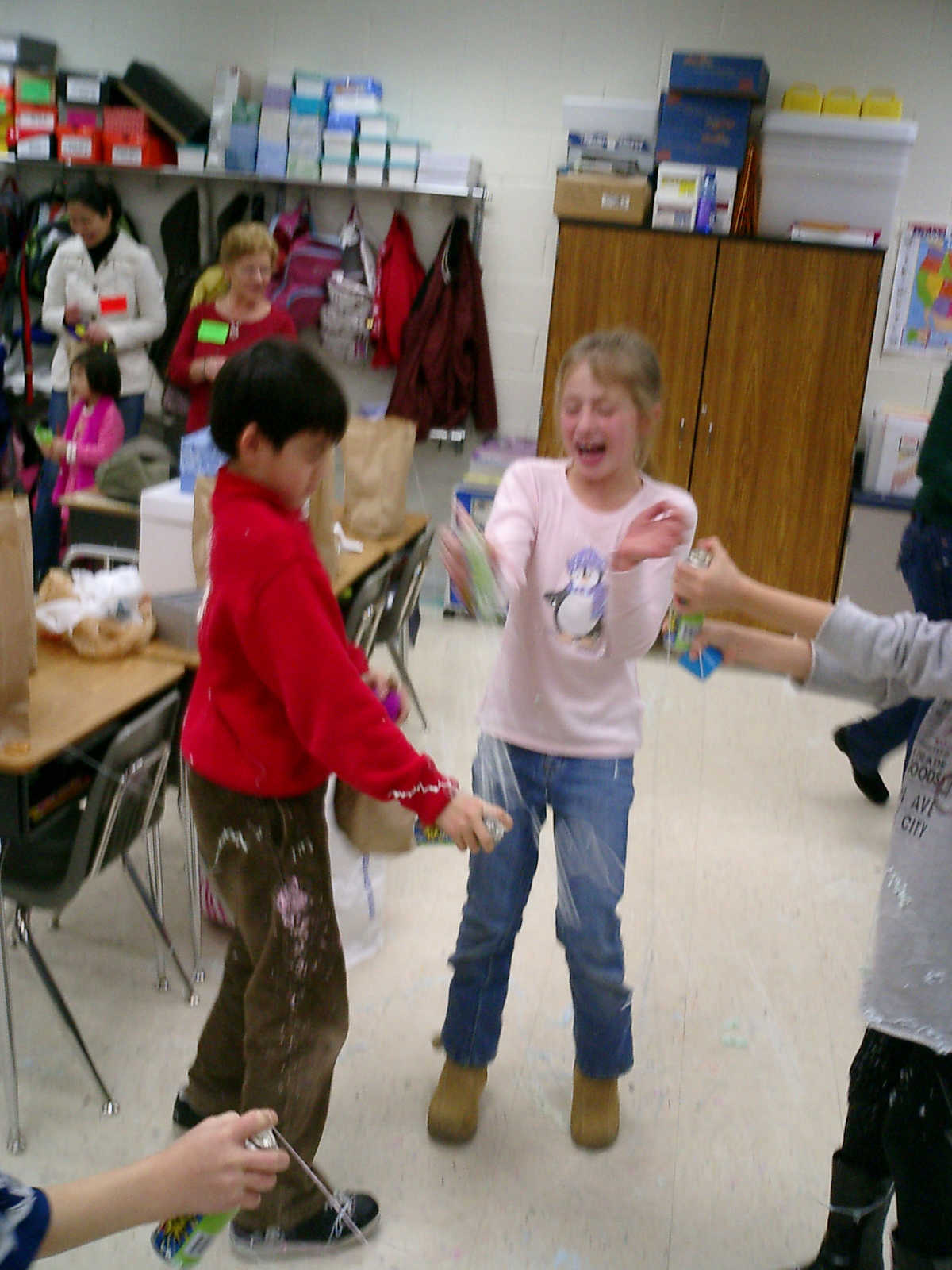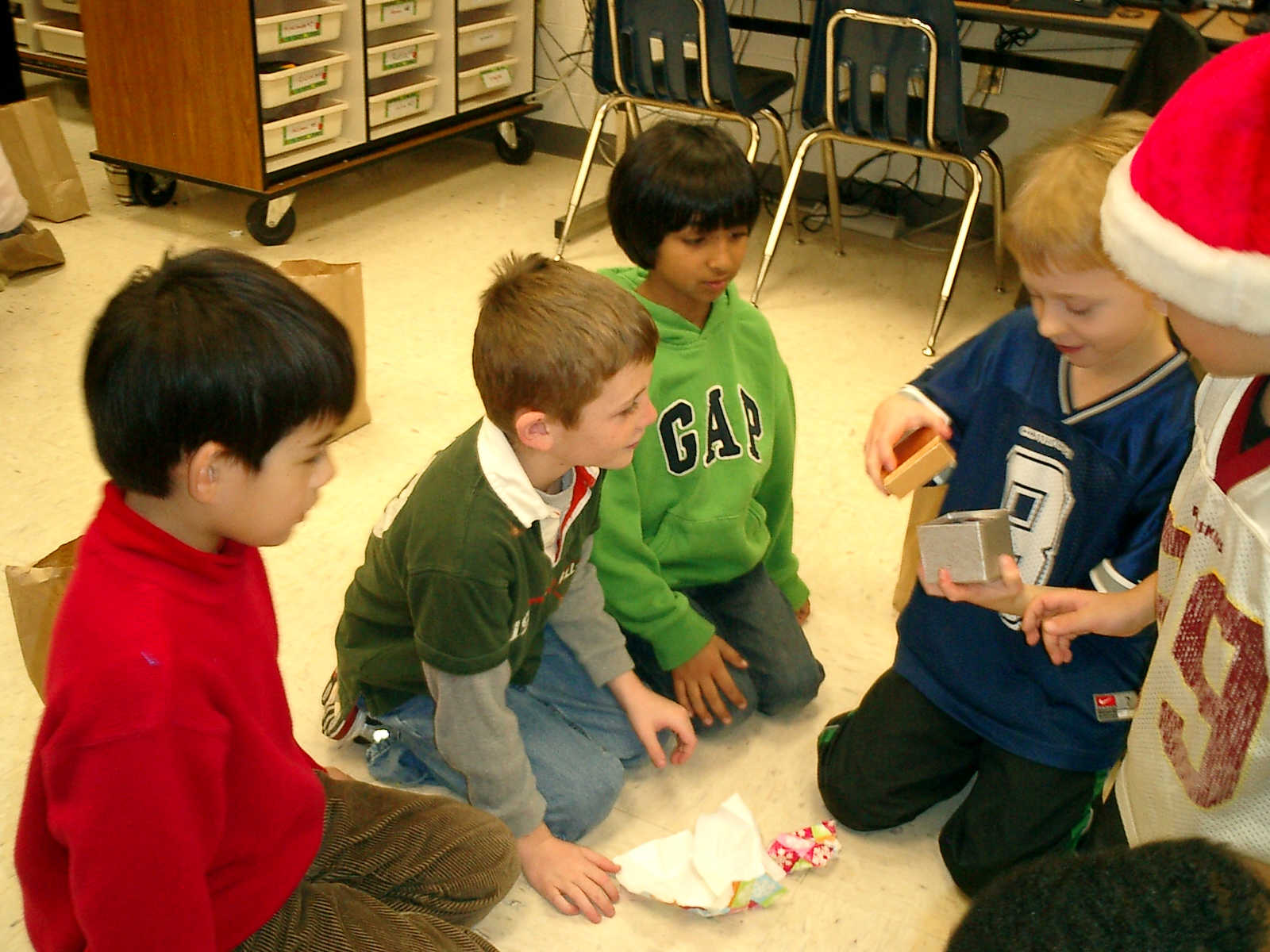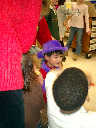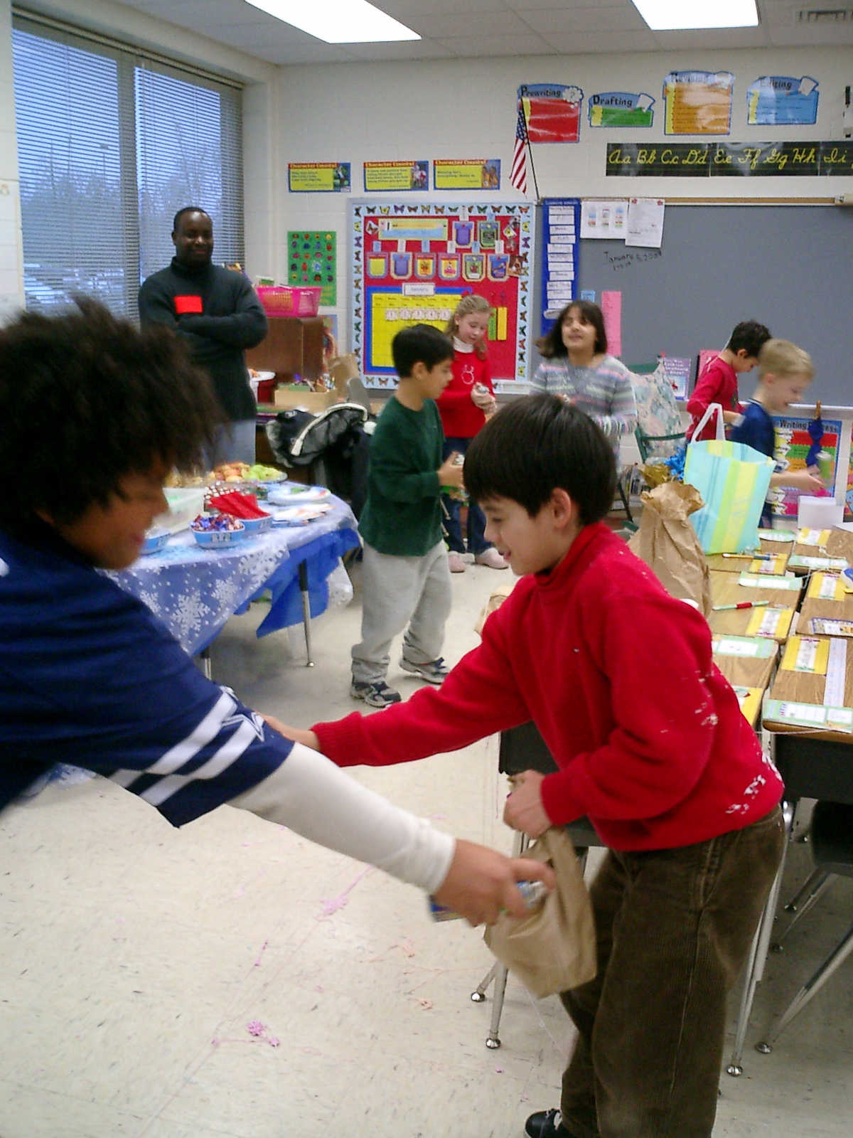 Nadine at 25 months (December 11, 2008), having fun at Nolan's school Christmas party, where Nolan's class played a game to open presents. Nadine, you were right in the middle, weren't you?