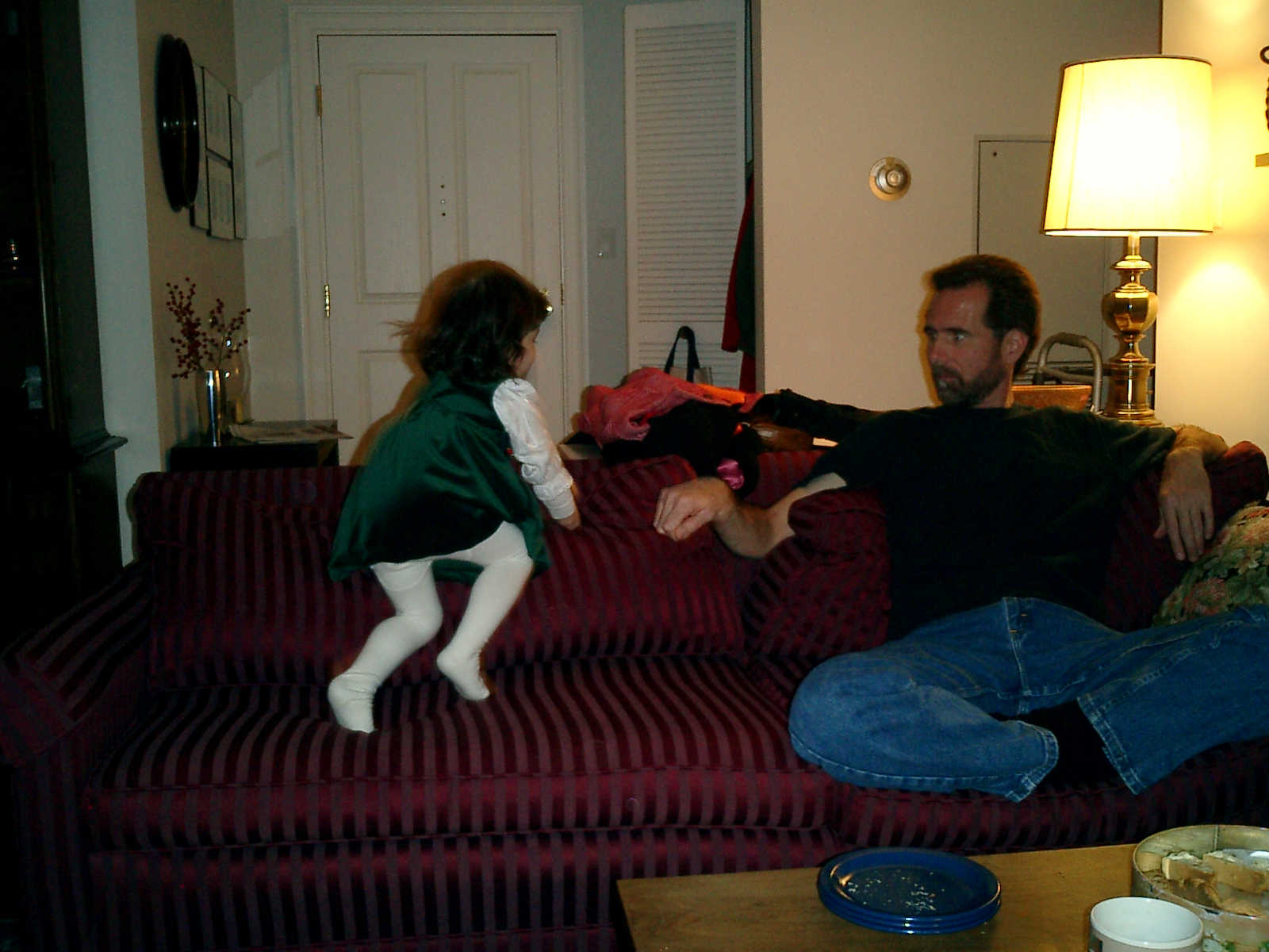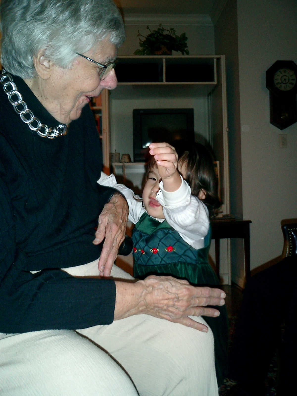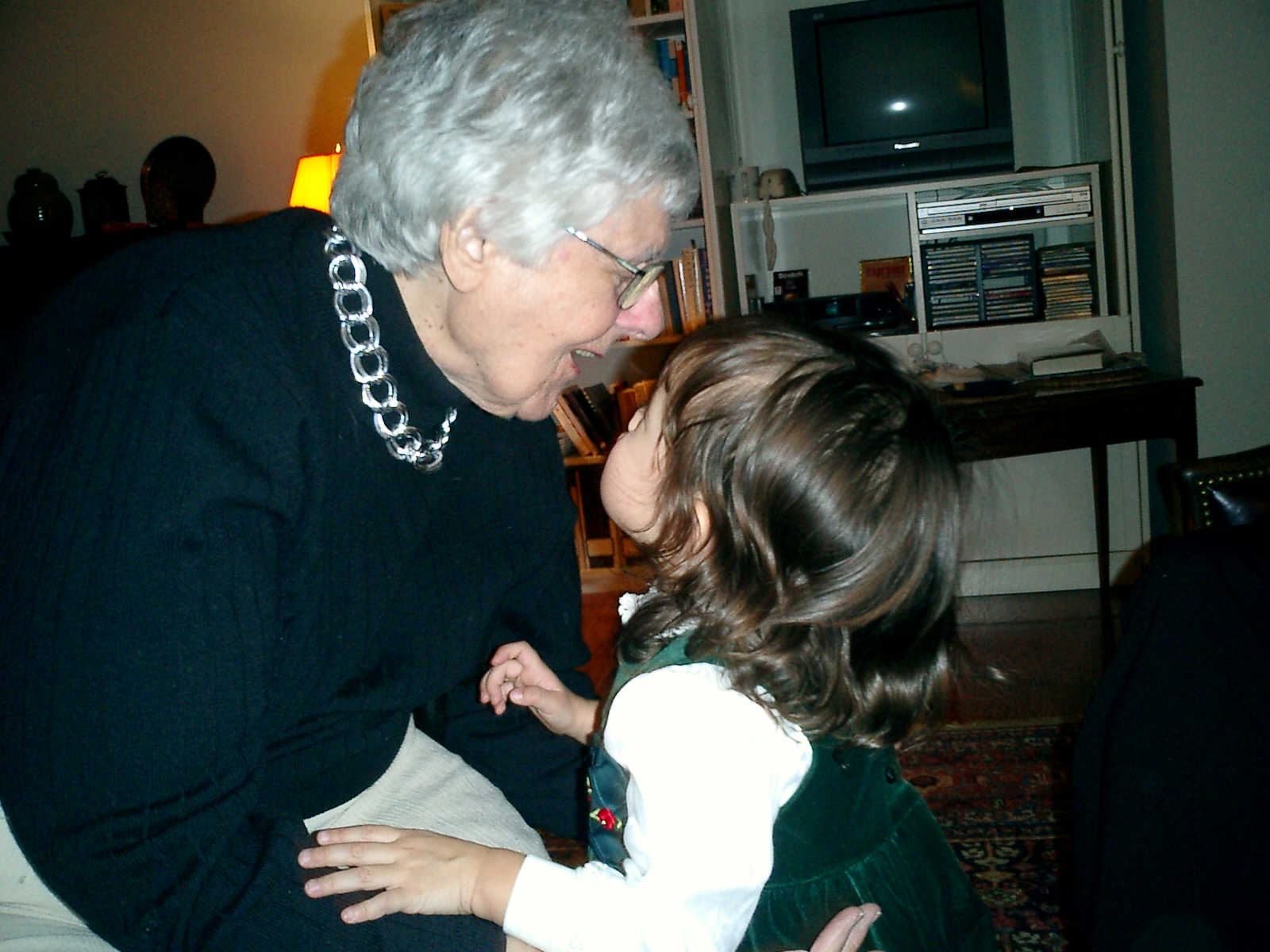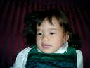 | Nadine at 25 months (December 24, 2008), celebrating Christmas Eve at the Arlington Unitarian Church. Nadine, did you enjoy the candle lighting ceremony? How about the Mitten Tree? We sure had fun at Grandma Alexander's house afterwards -- with Uncle David too! |