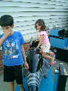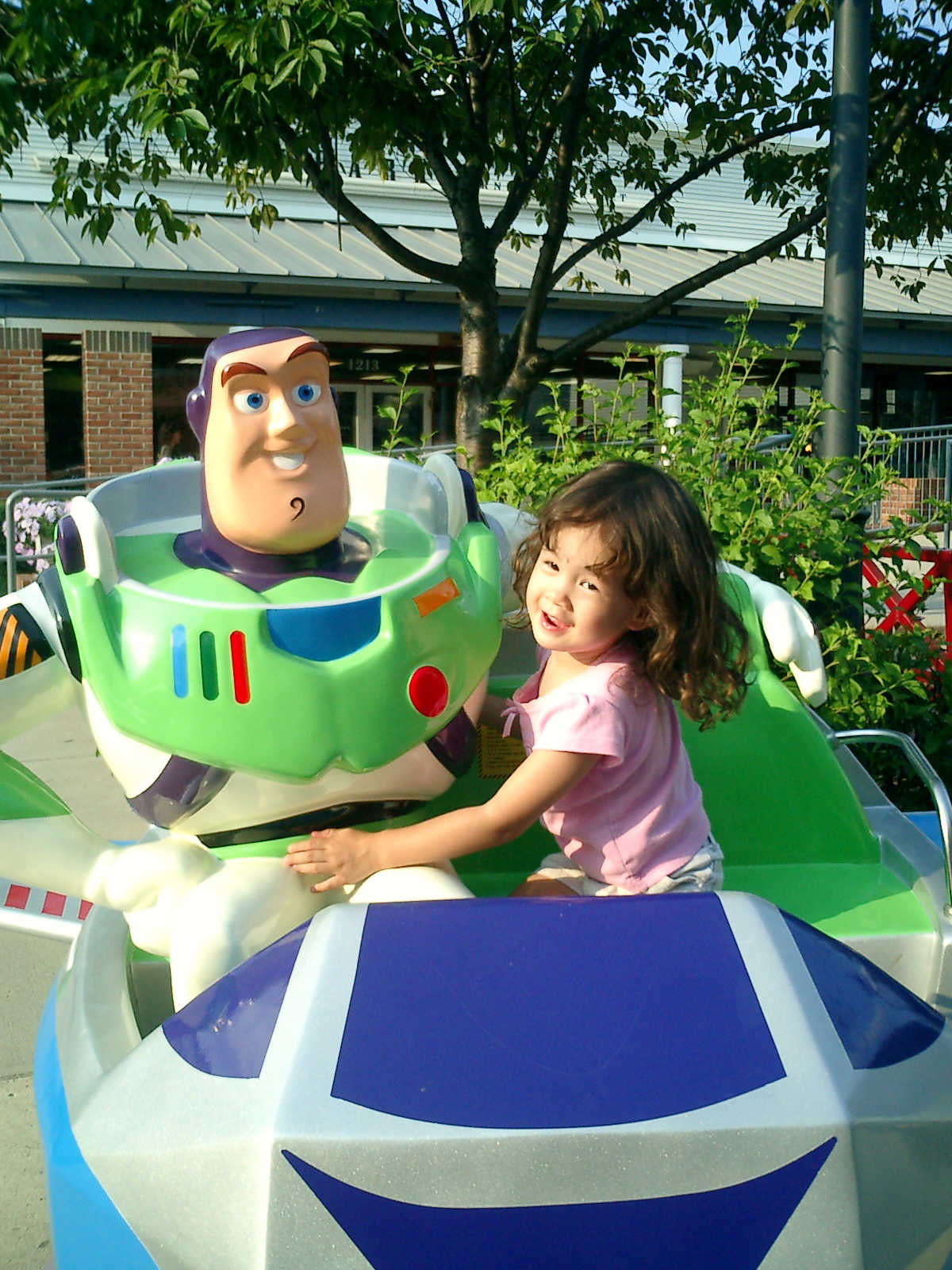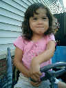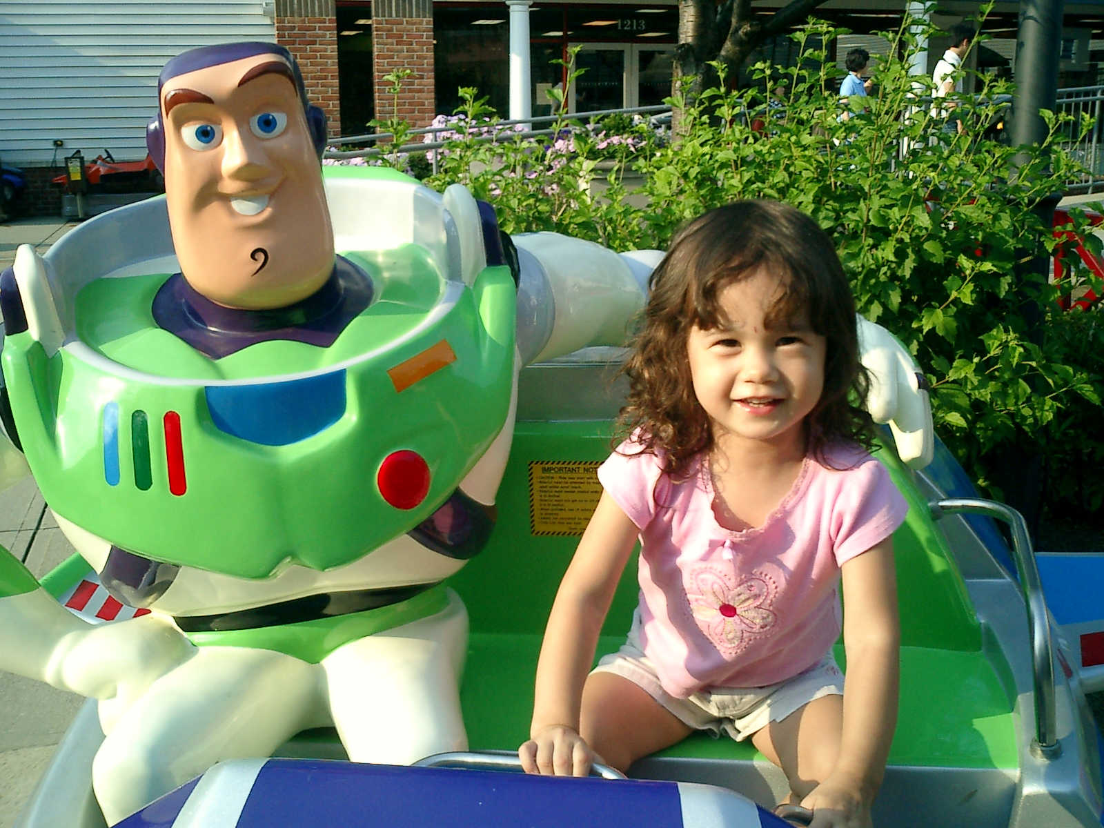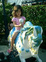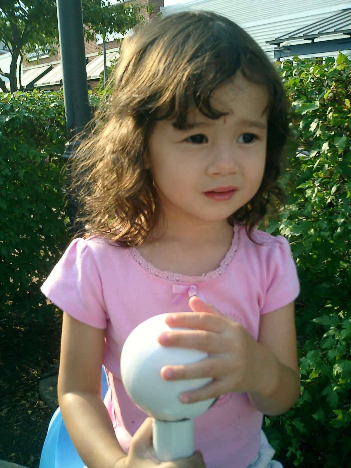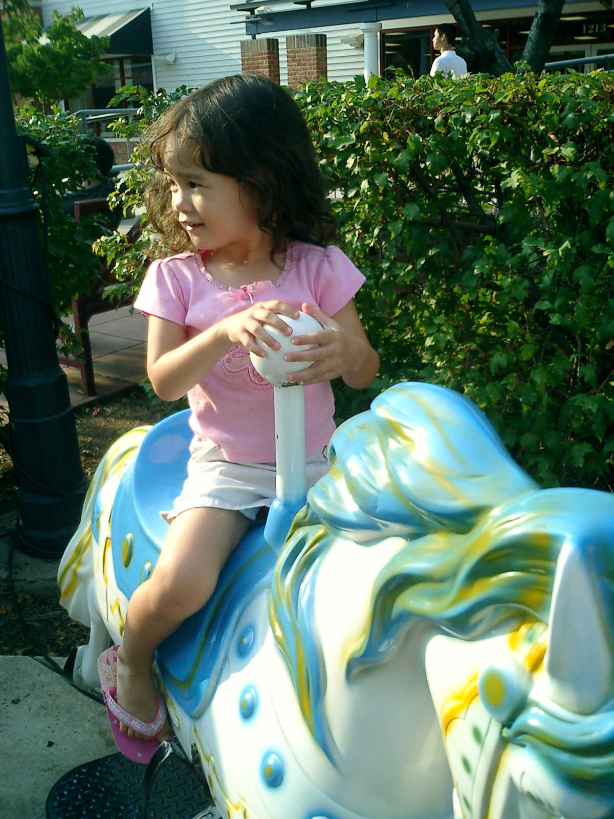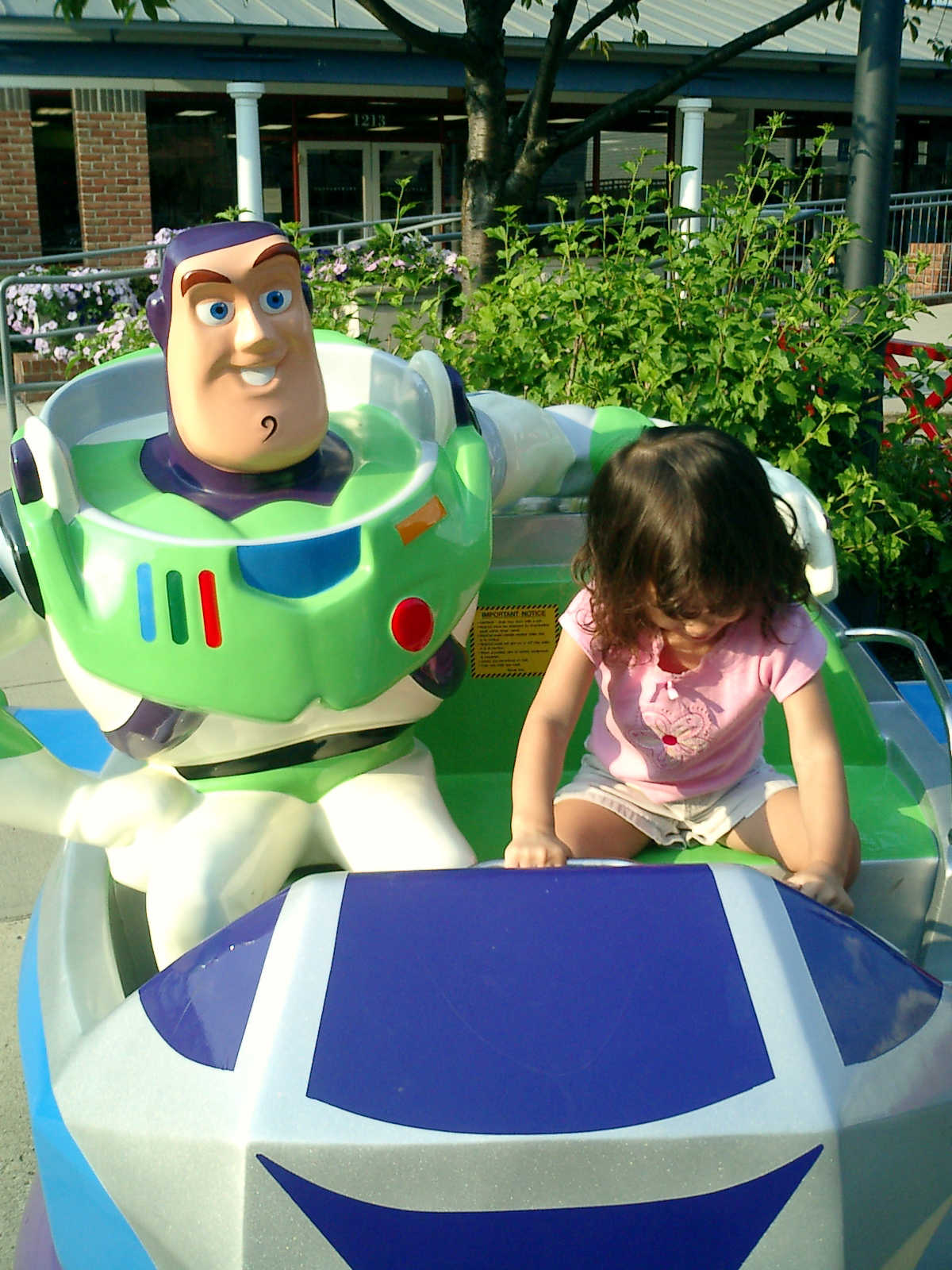 Nadine at 2 years and 8 months (July 21, 2009), at leesburg Outlet Mall with Nolan, having fun on the playground and rides. Nadine, the most fun was just climbing up onto all them, wasn't it?