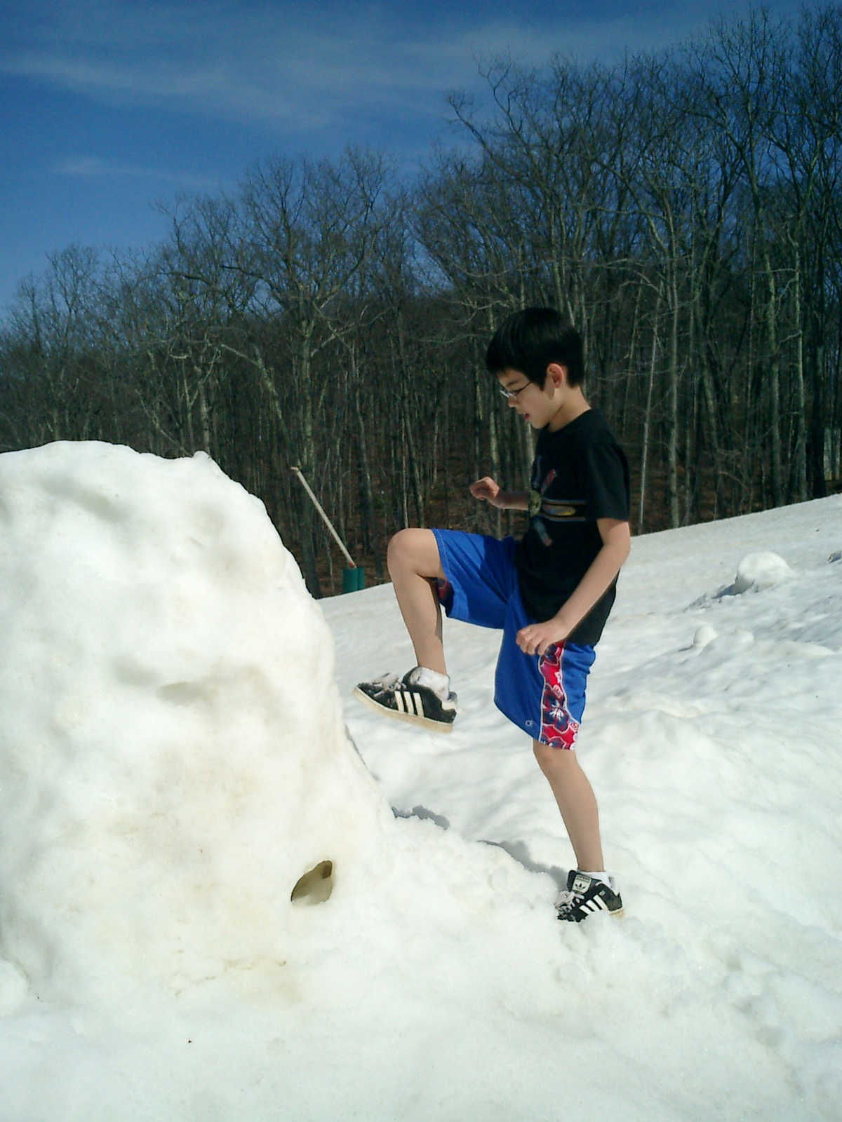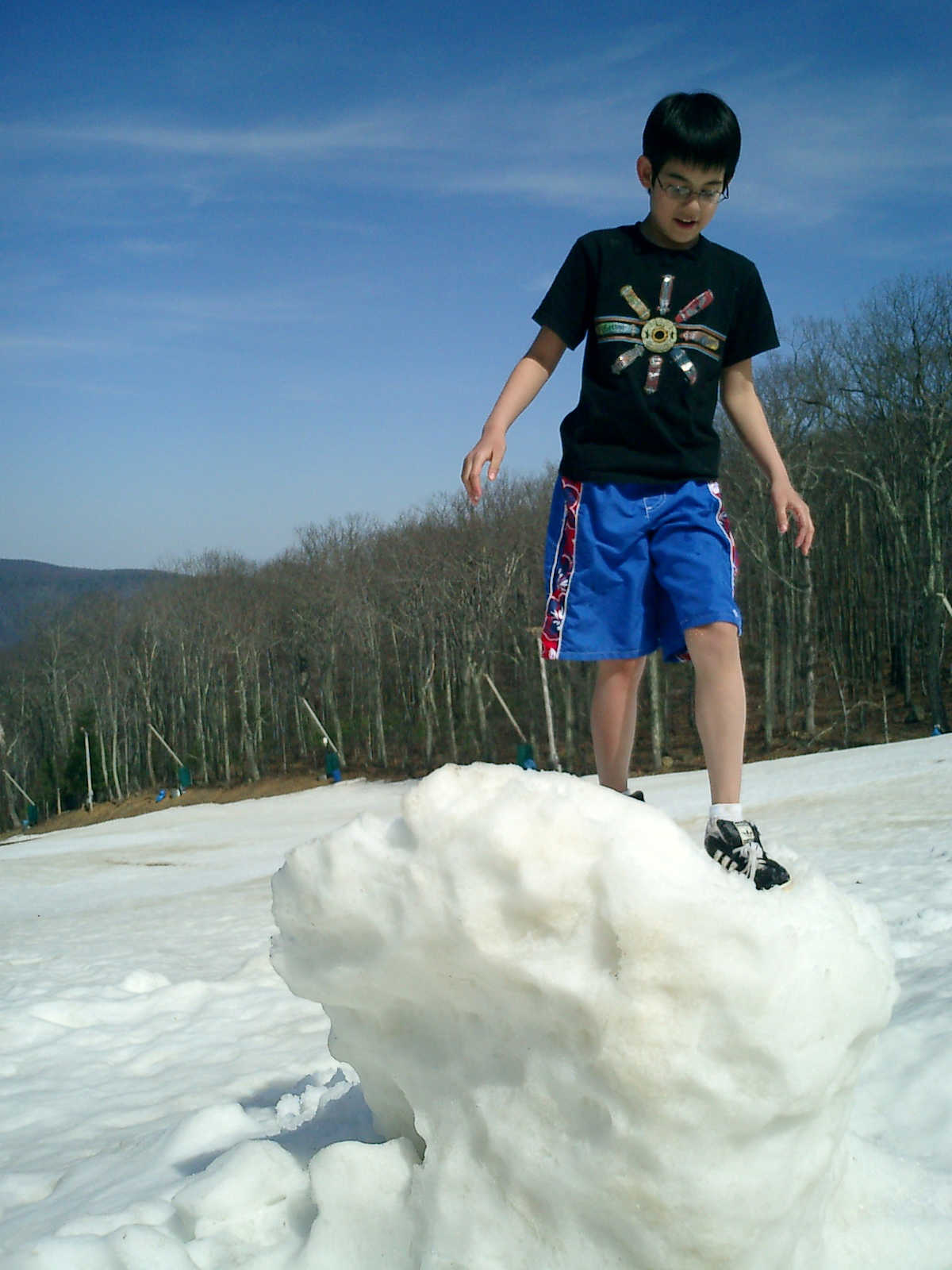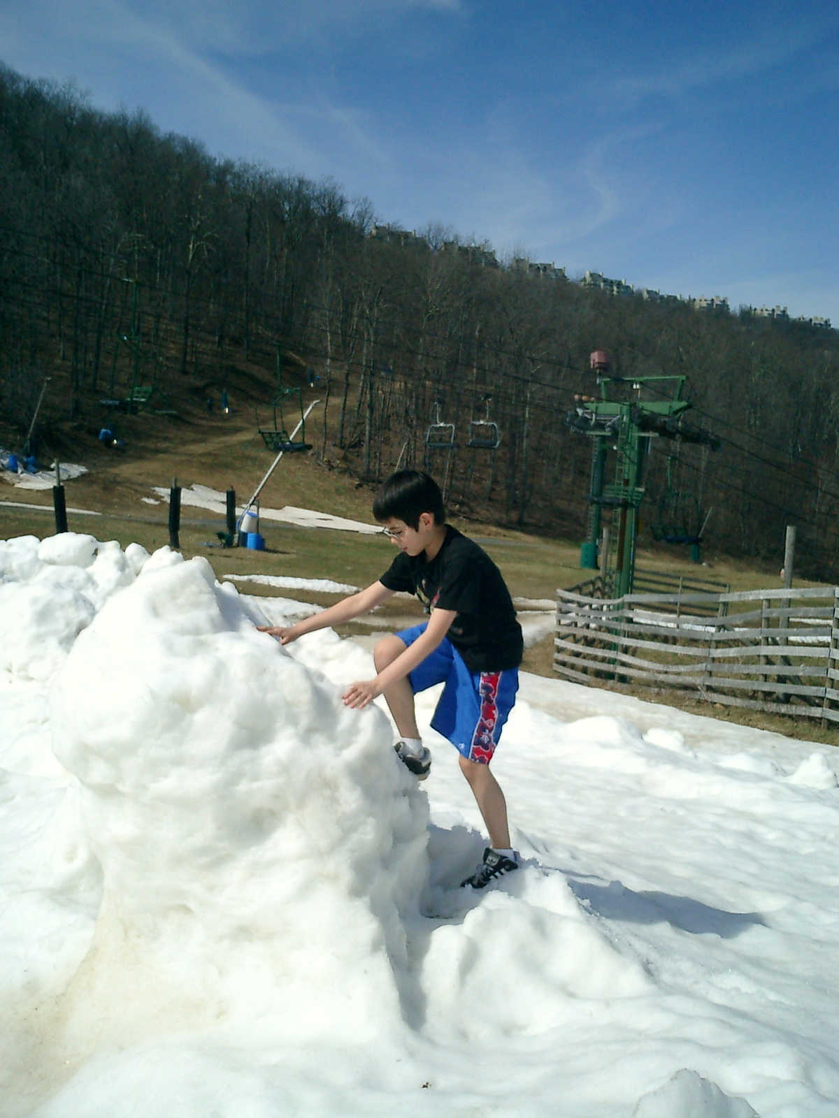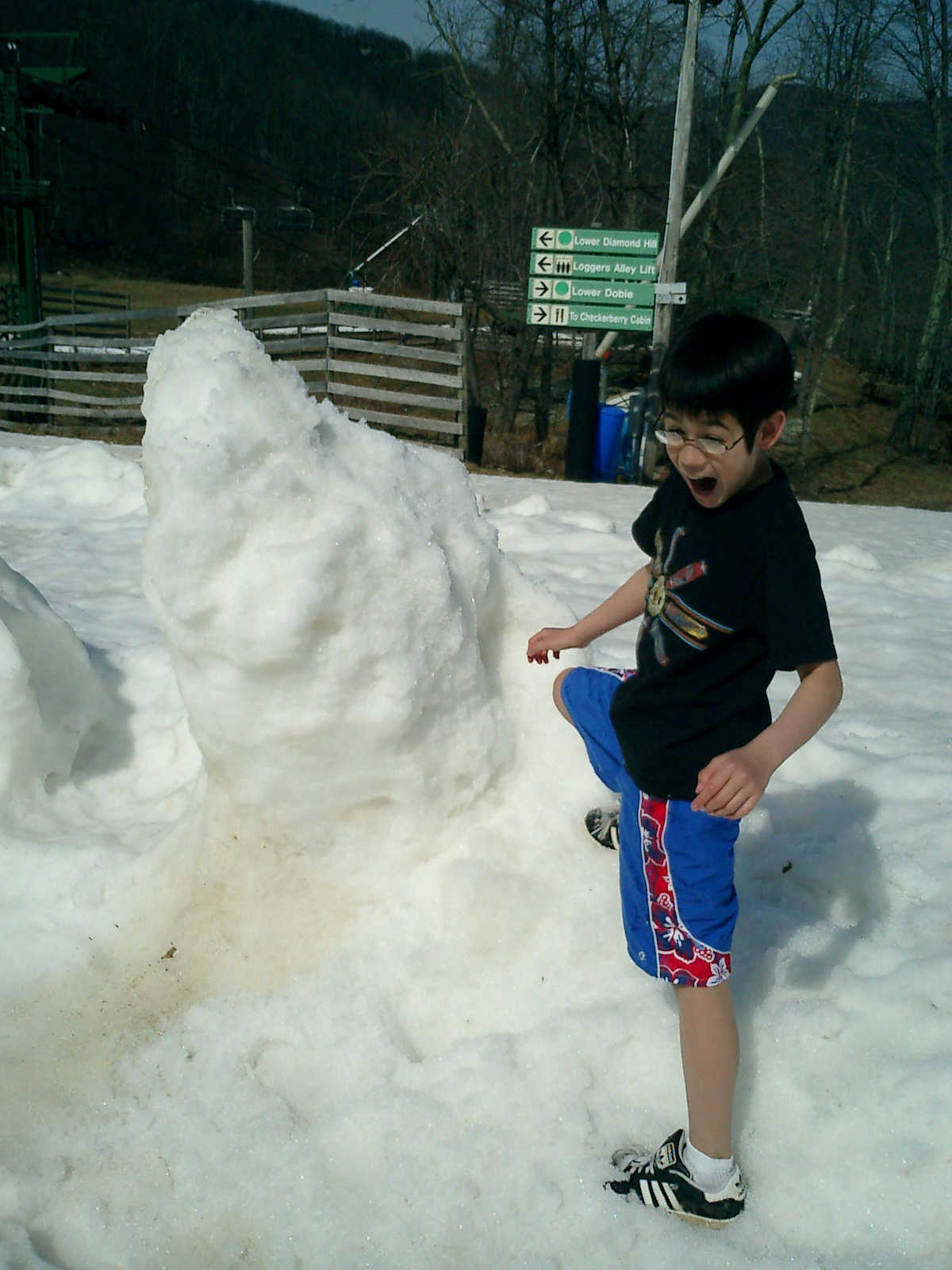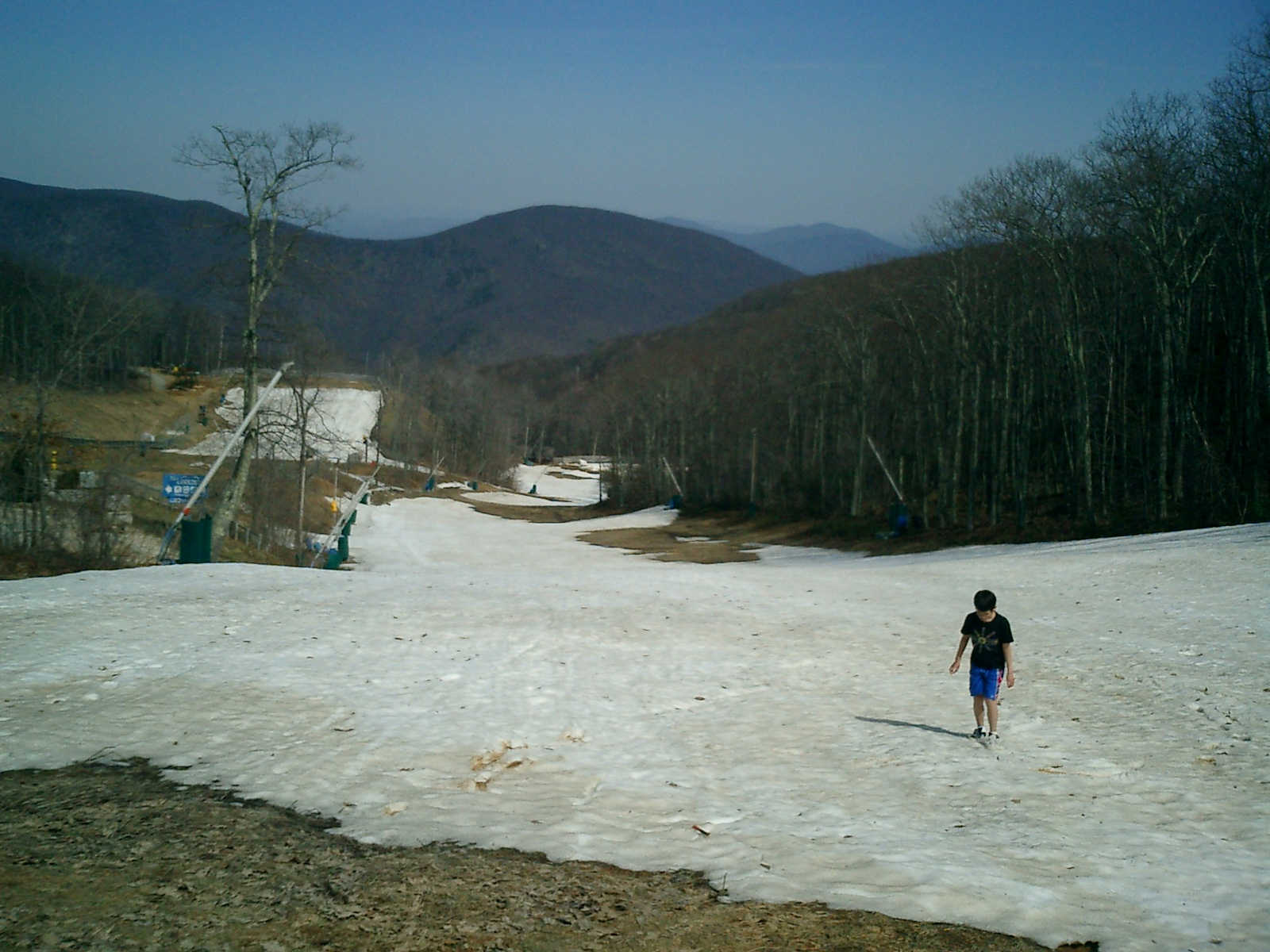 Nadine at 3 years and 4 months (Apr 4, 2010), hiking on the Wintergreen ski slopes, which we discovered were filled with coins that skiers had dropped. We found $10 in quarters, dimes, nickels, and pennies!