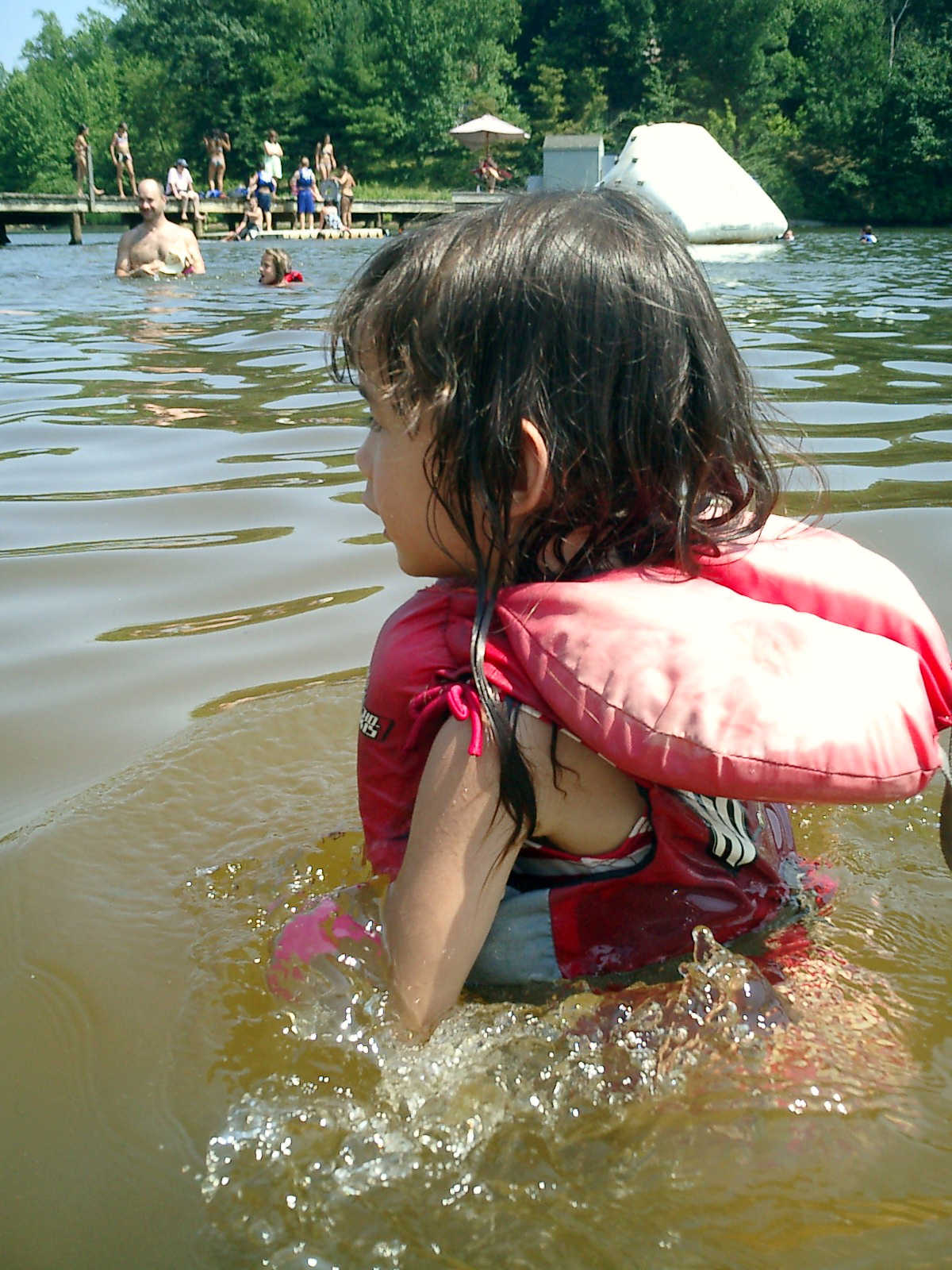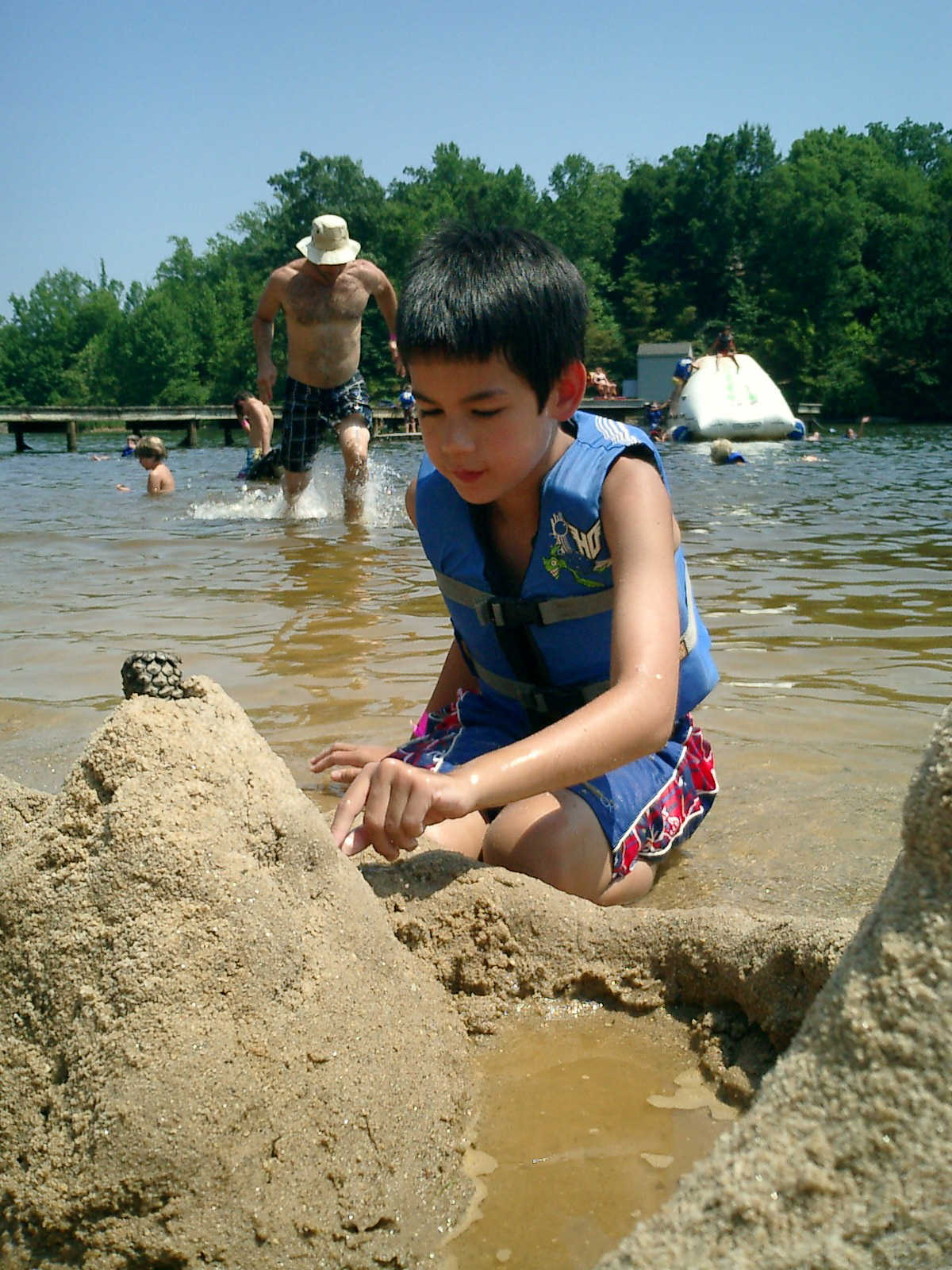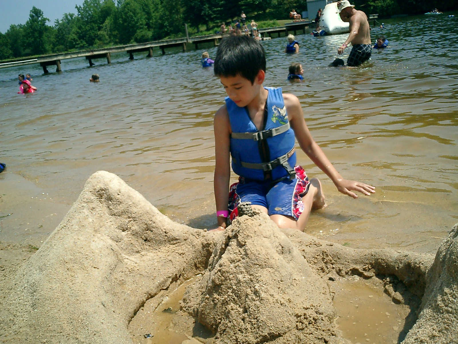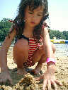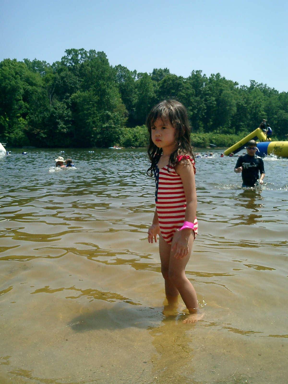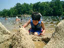 Nadine at 3 years and 8 months (July 5, 2010), at the iWintergreen lake, enjoying the water and helping build Nolan's sand castle!