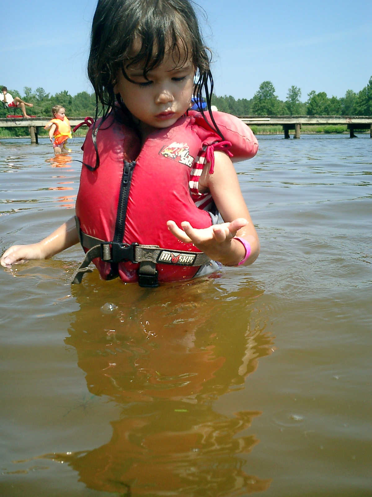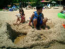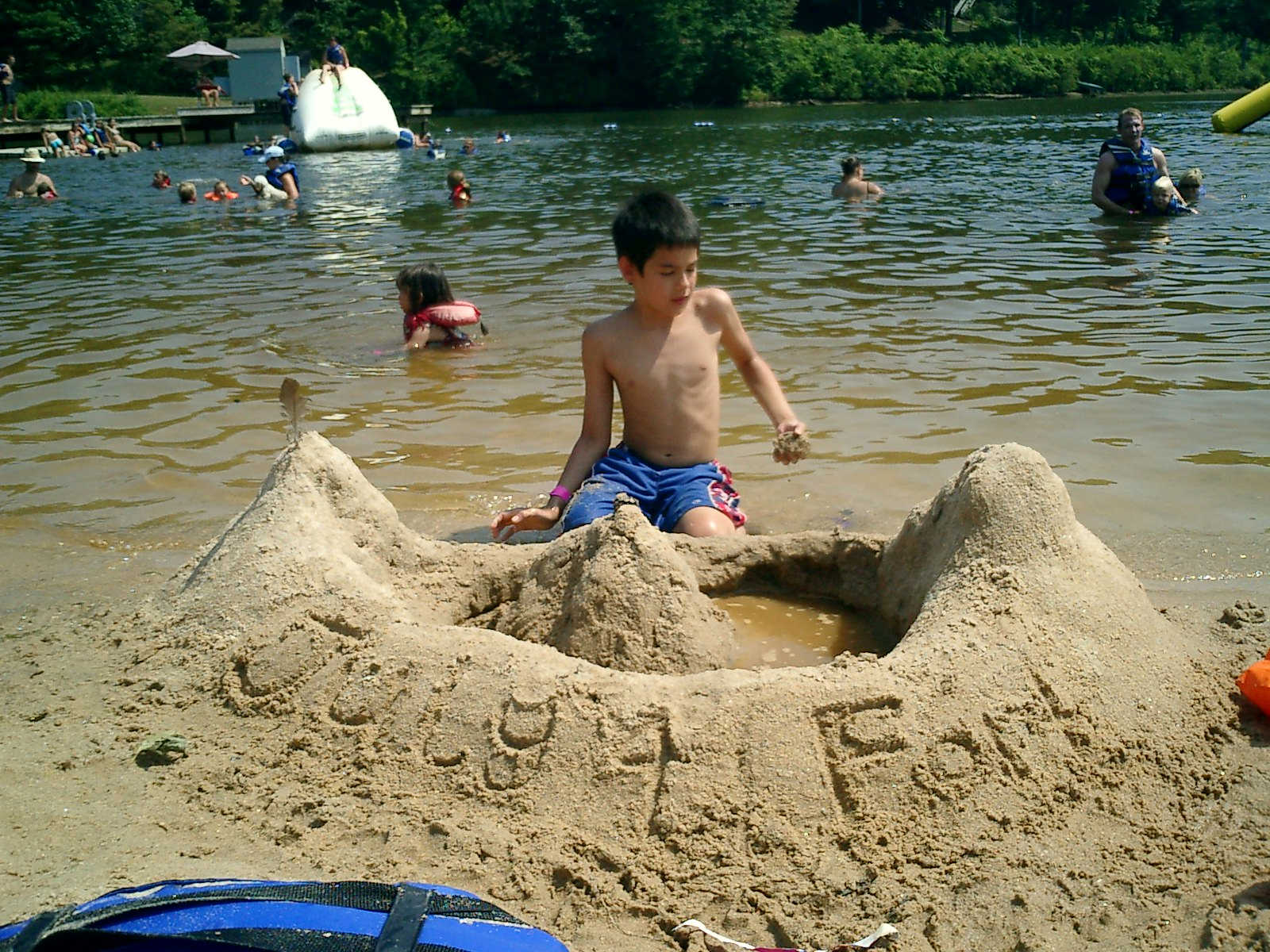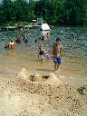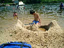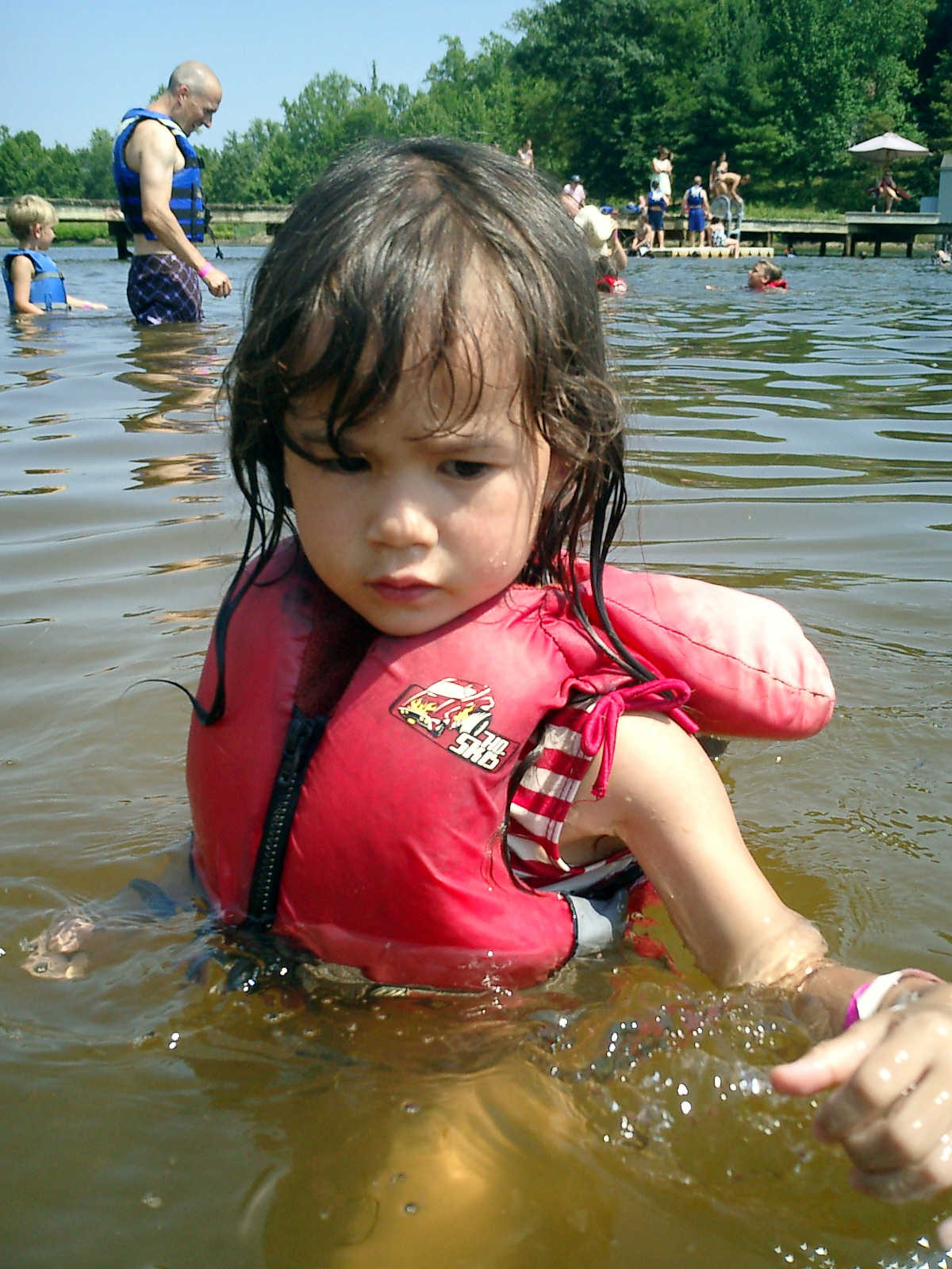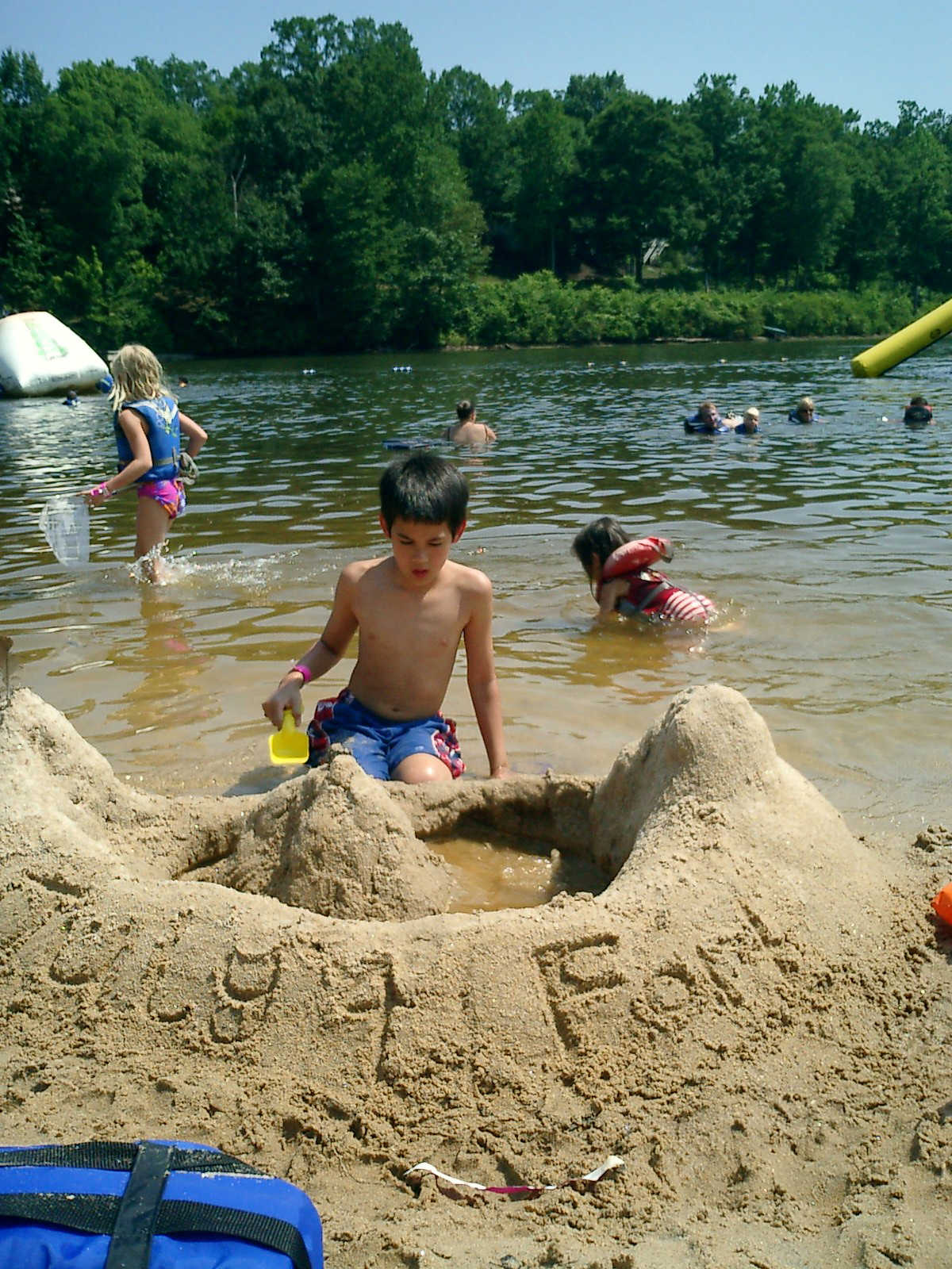 Nadine at 3 years and 8 months (July 5, 2010), at the iWintergreen lake, enjoying the water and helping build Nolan's sand castle!