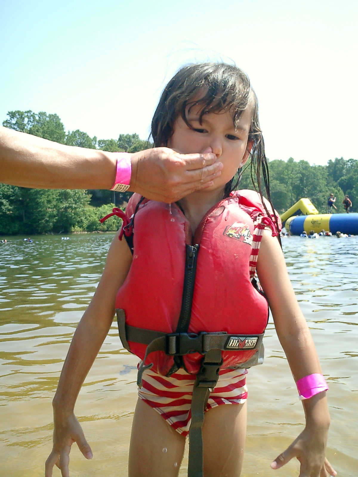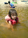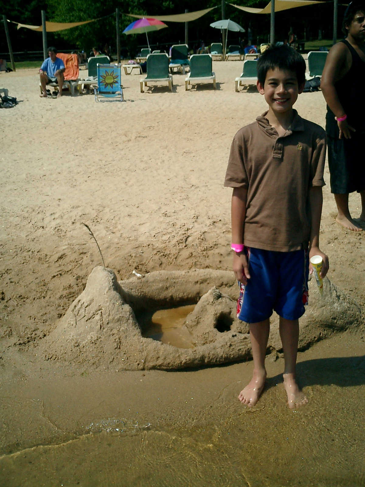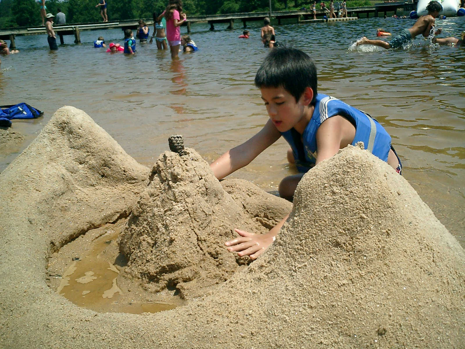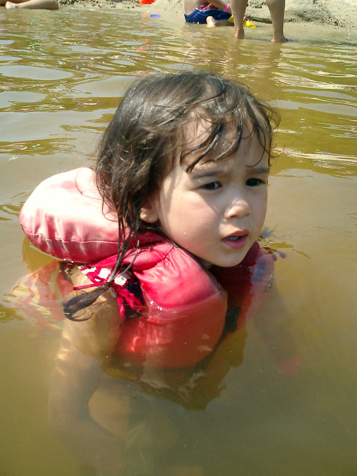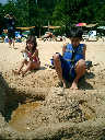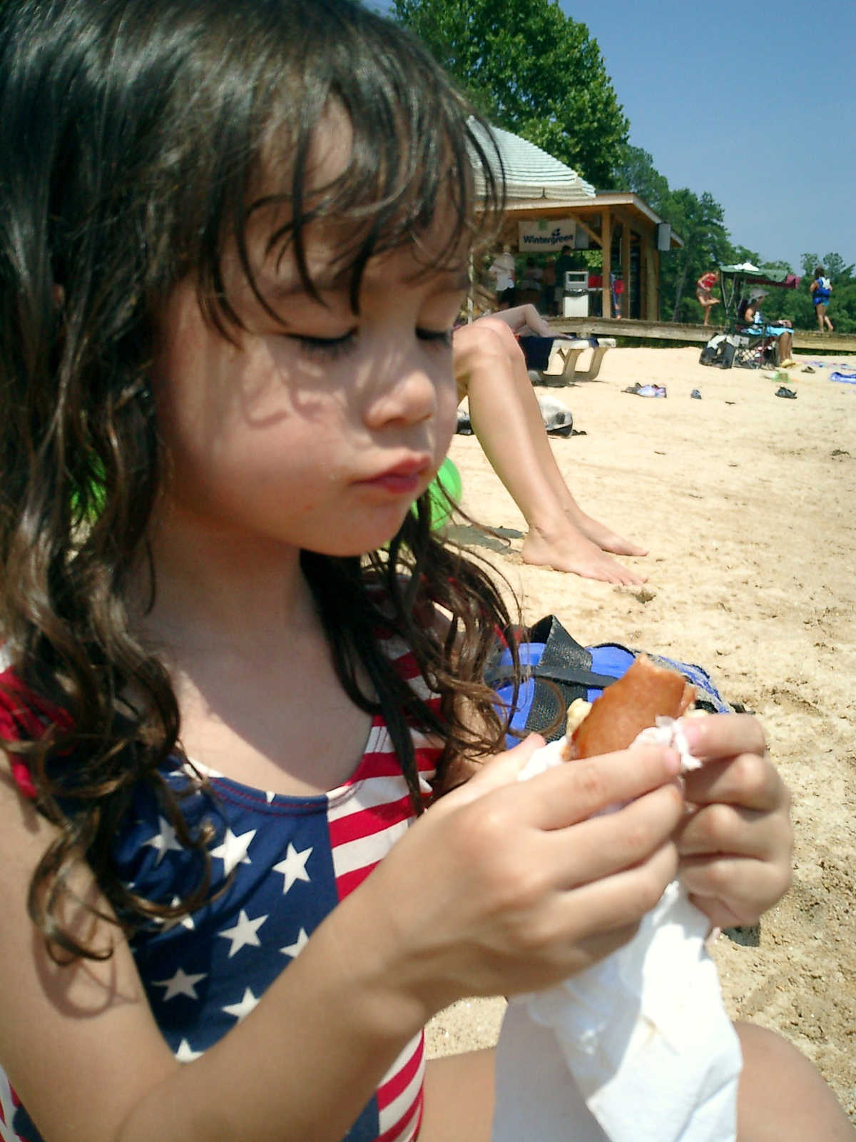 Nadine at 3 years and 8 months (July 5, 2010), at the iWintergreen lake, enjoying the water and helping build Nolan's sand castle!