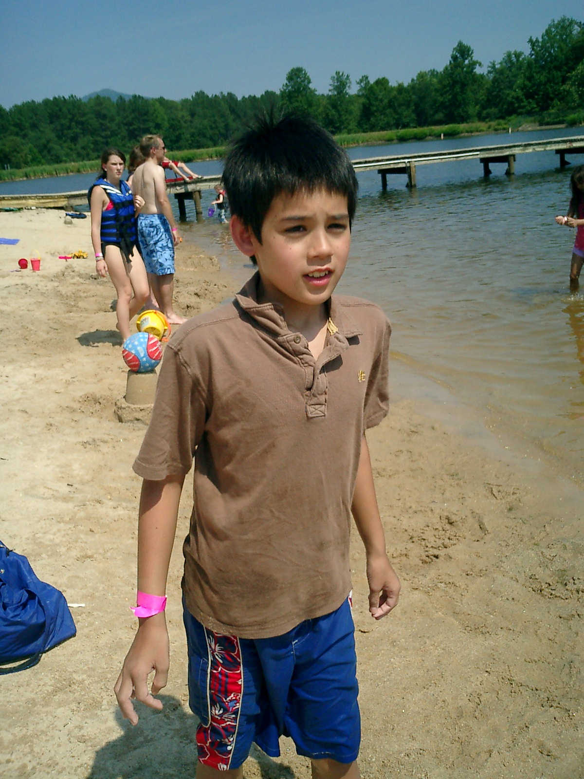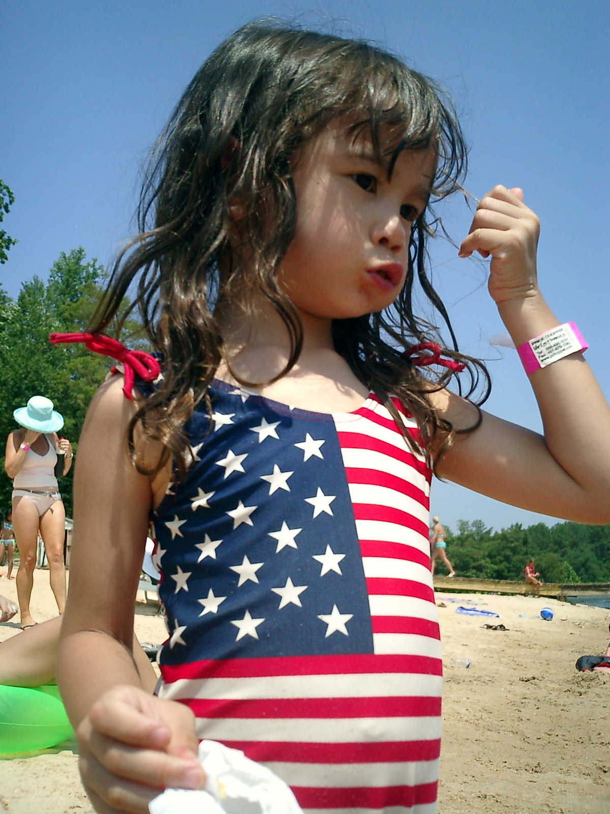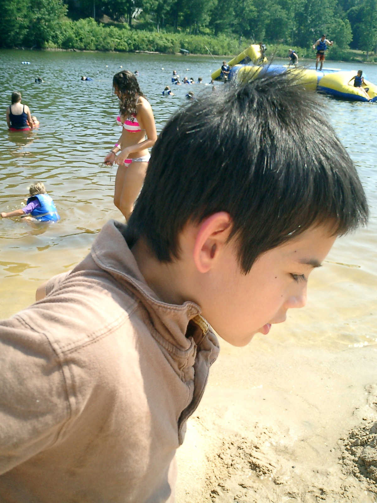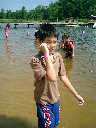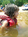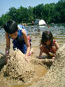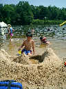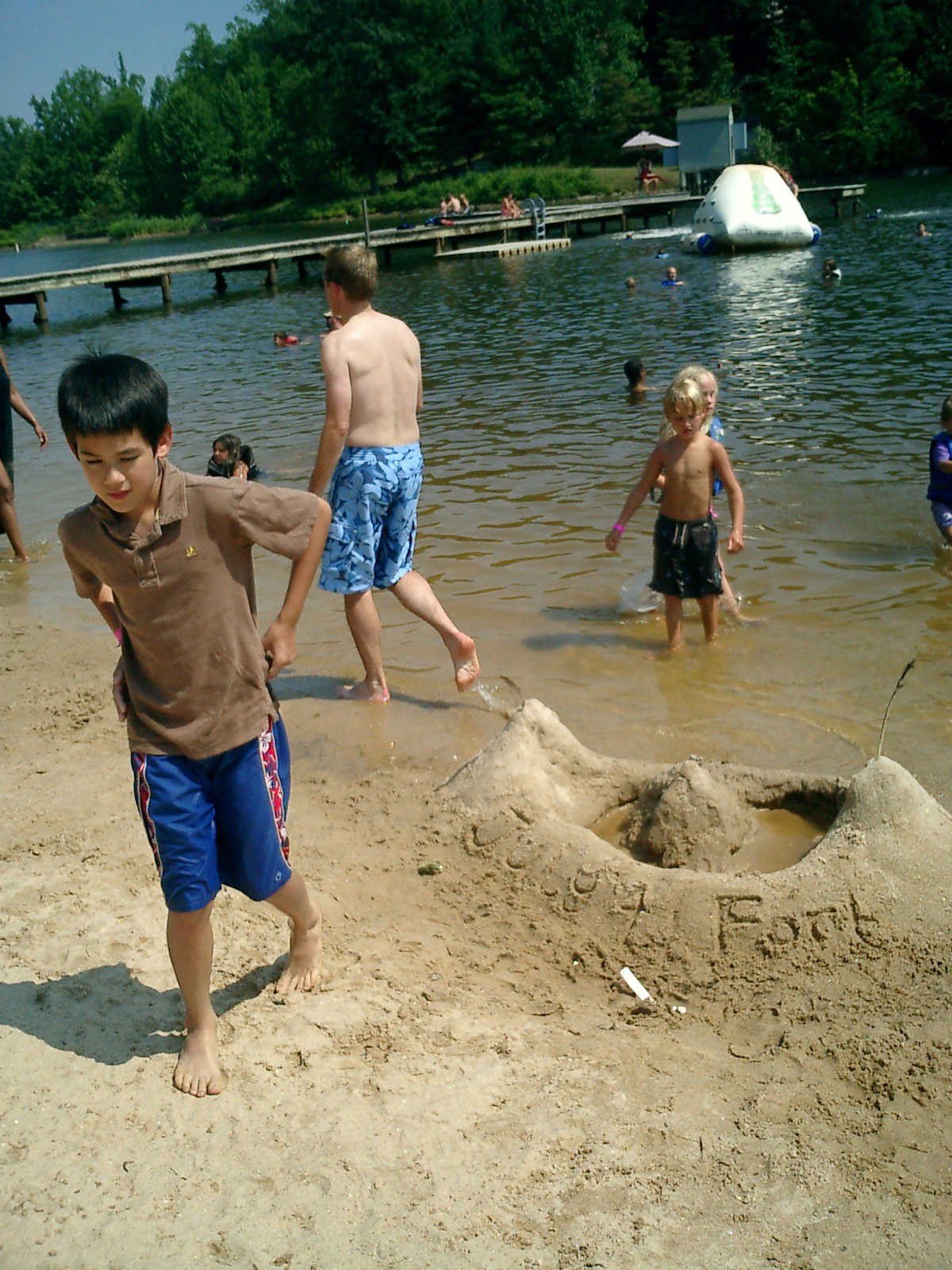 Nadine at 3 years and 8 months (July 5, 2010), at the iWintergreen lake, enjoying the water and helping build Nolan's sand castle!
