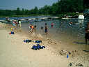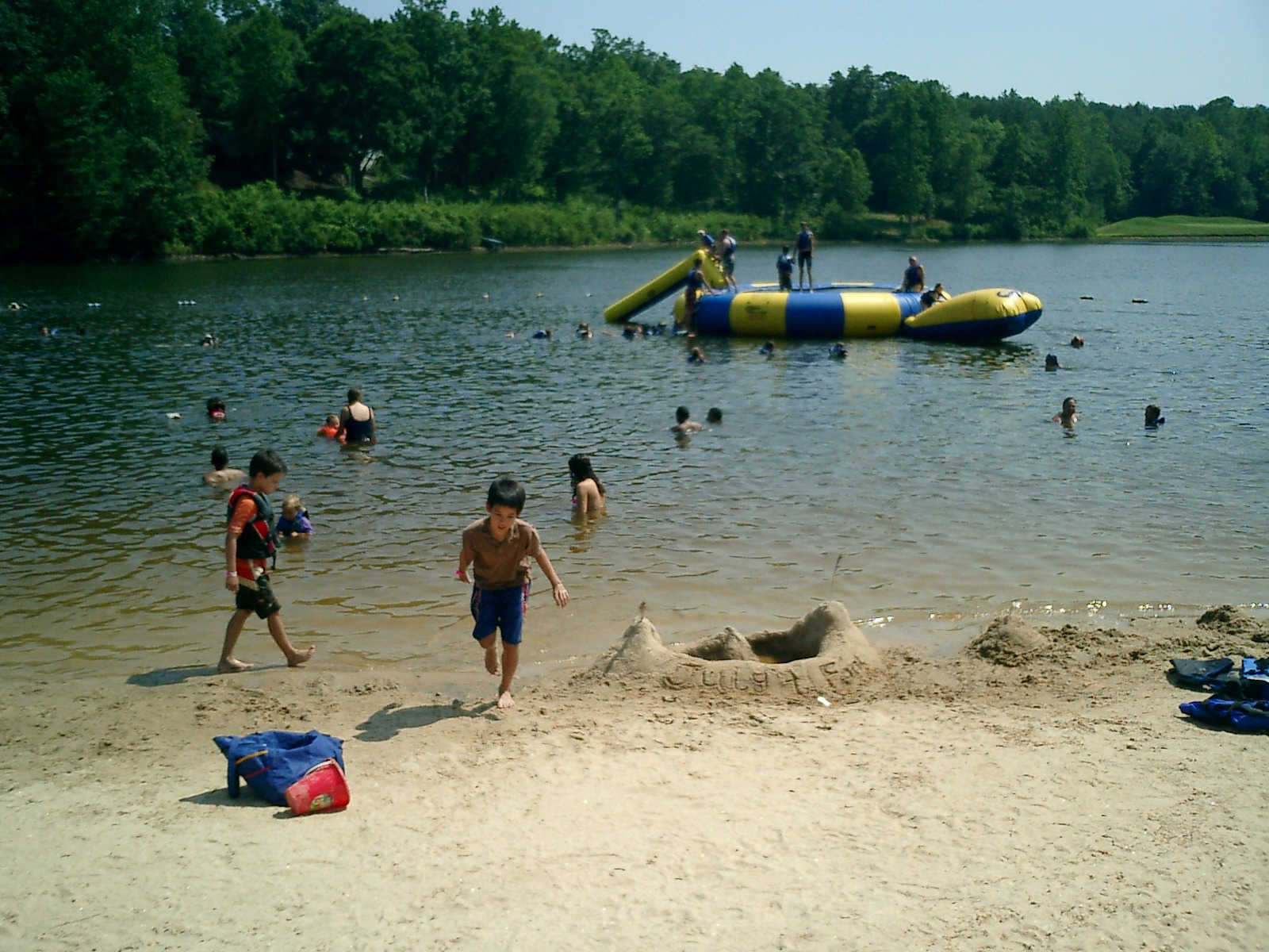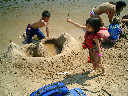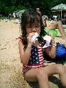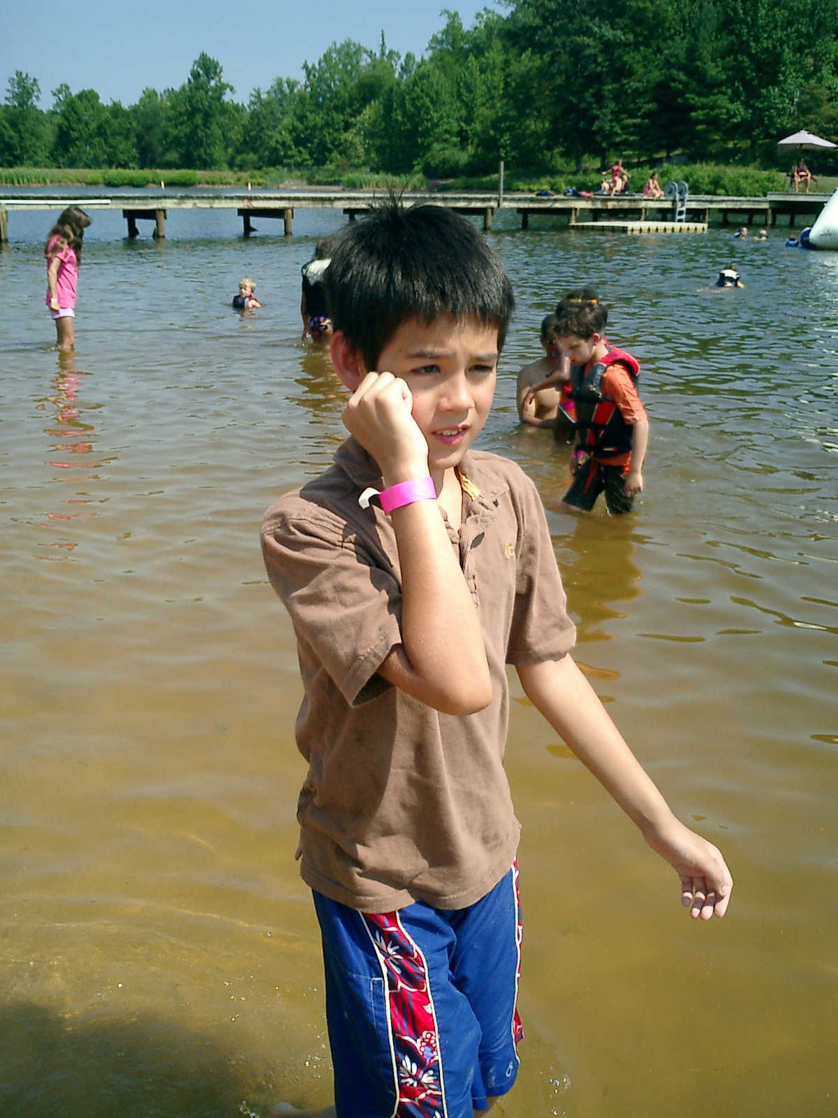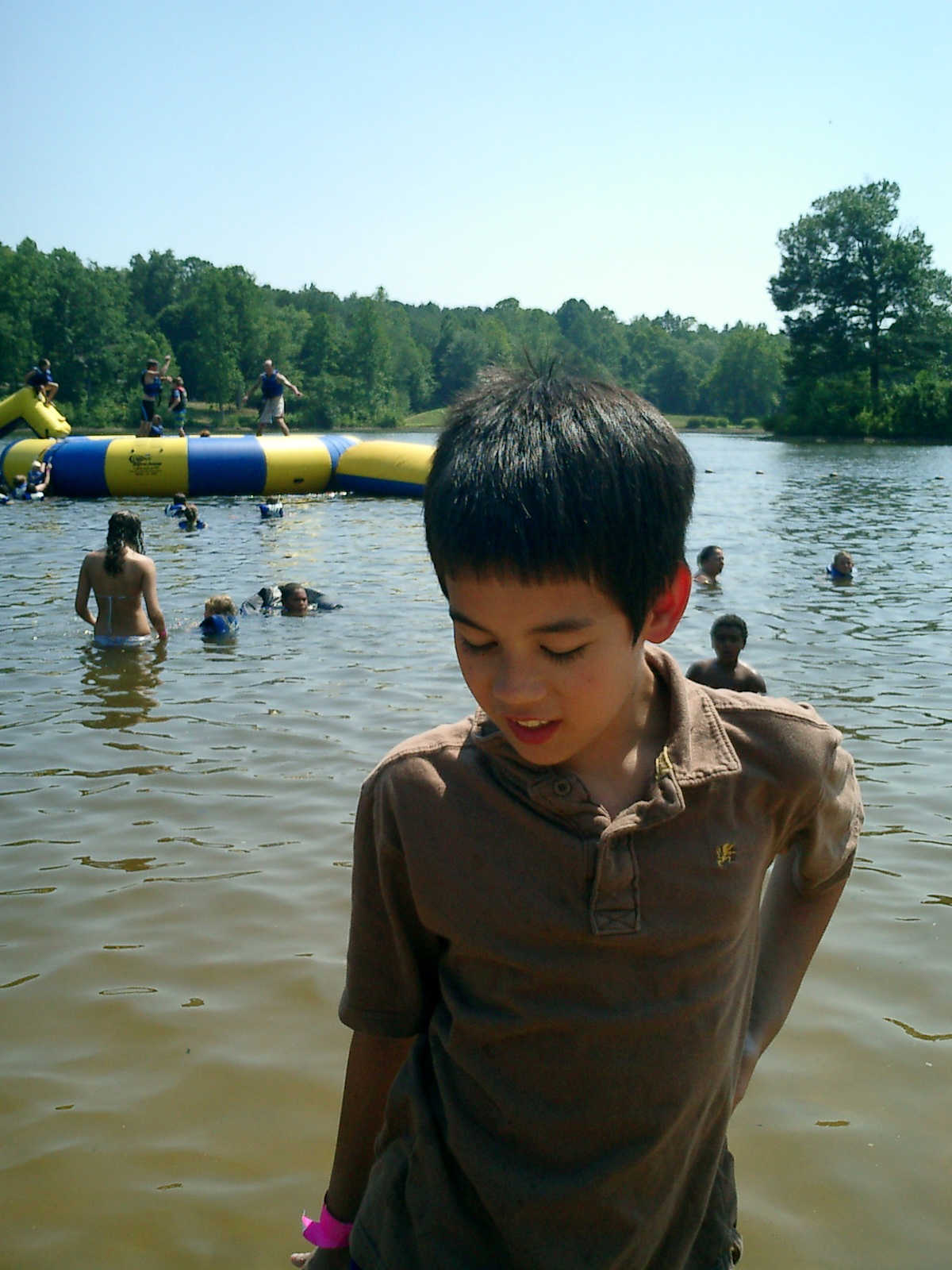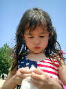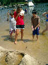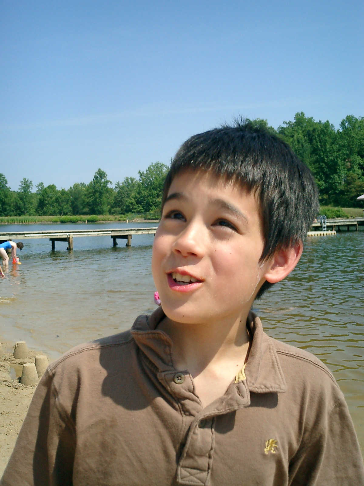 Nadine at 3 years and 8 months (July 5, 2010), at the iWintergreen lake, enjoying the water and helping build Nolan's sand castle!