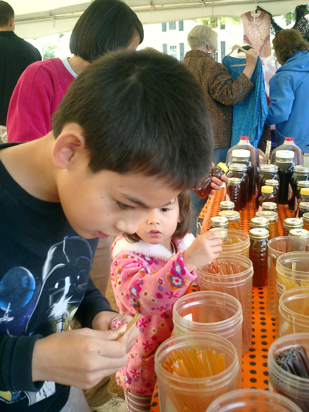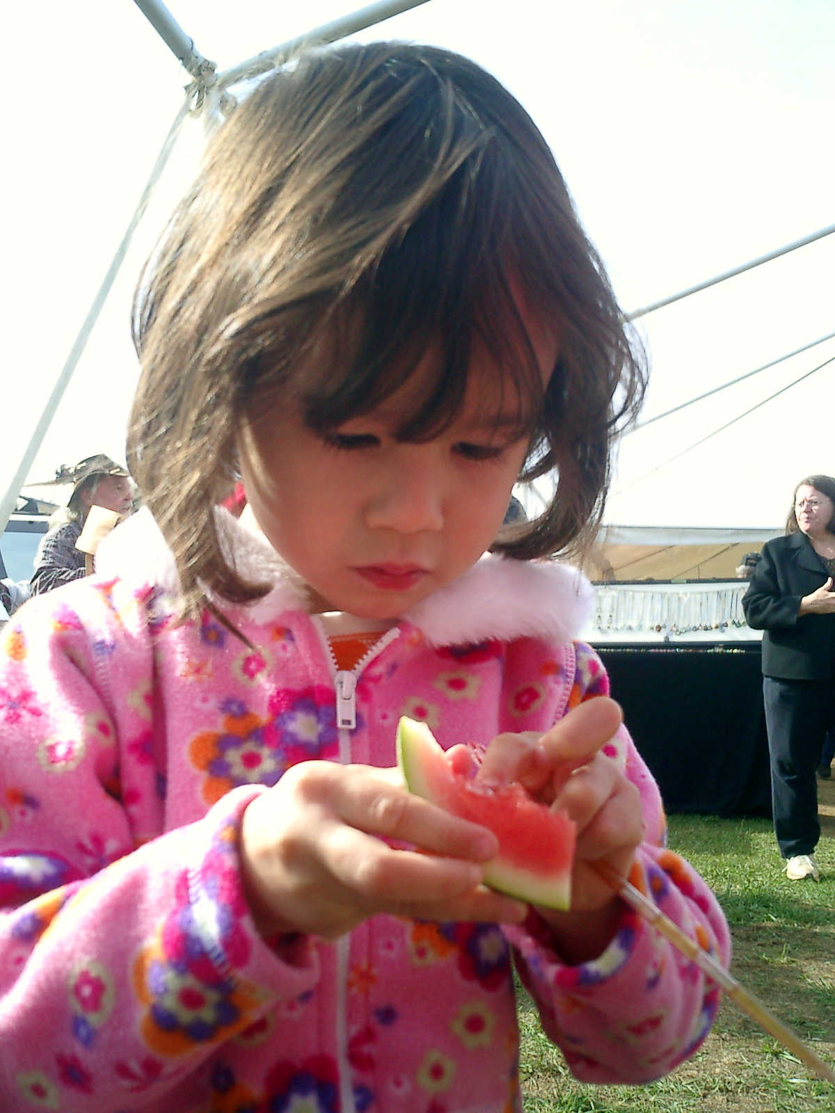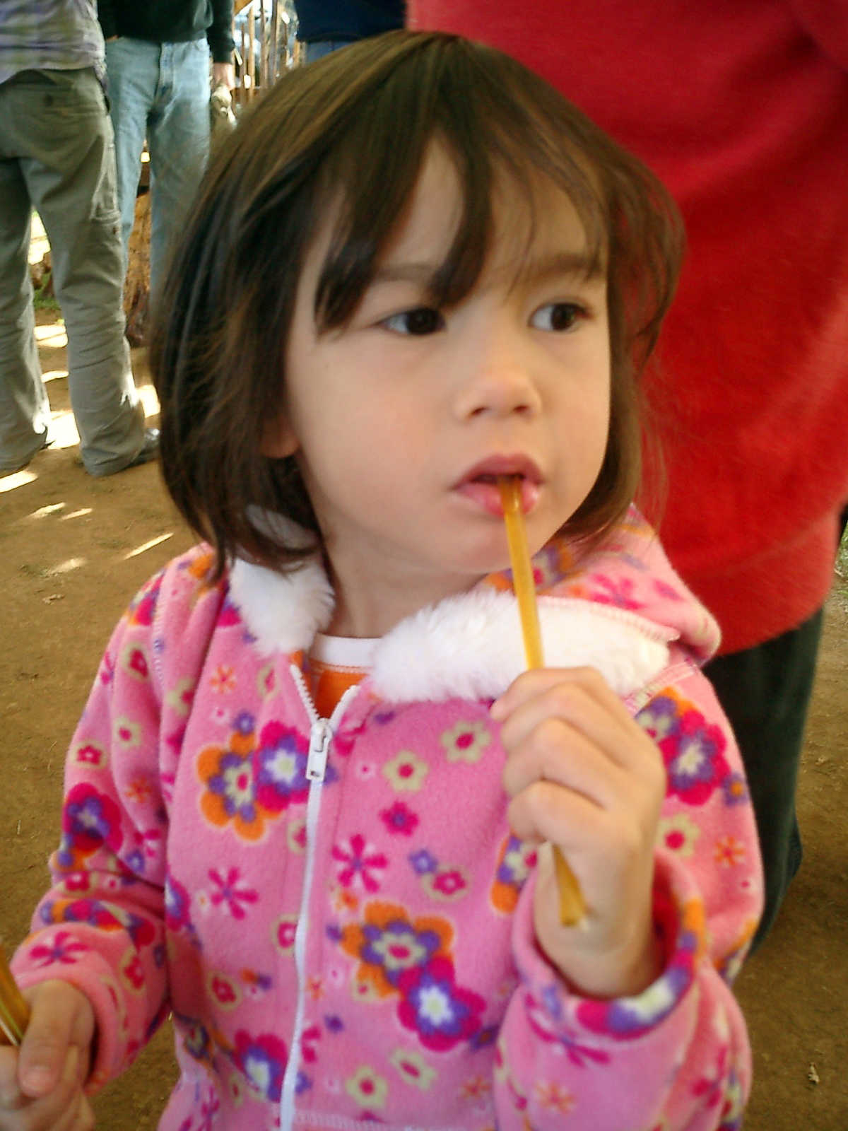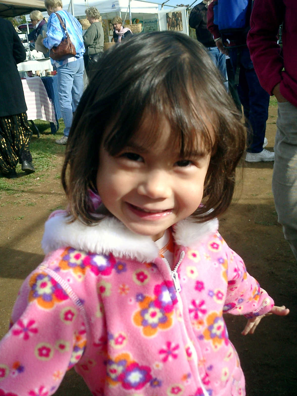 Nadine at 3 years and 11 months (Oct 30, 2010), at the farmers market on Saturday morning. Nadine, you sure love picking up the vegetables and pumpkins, don't you?