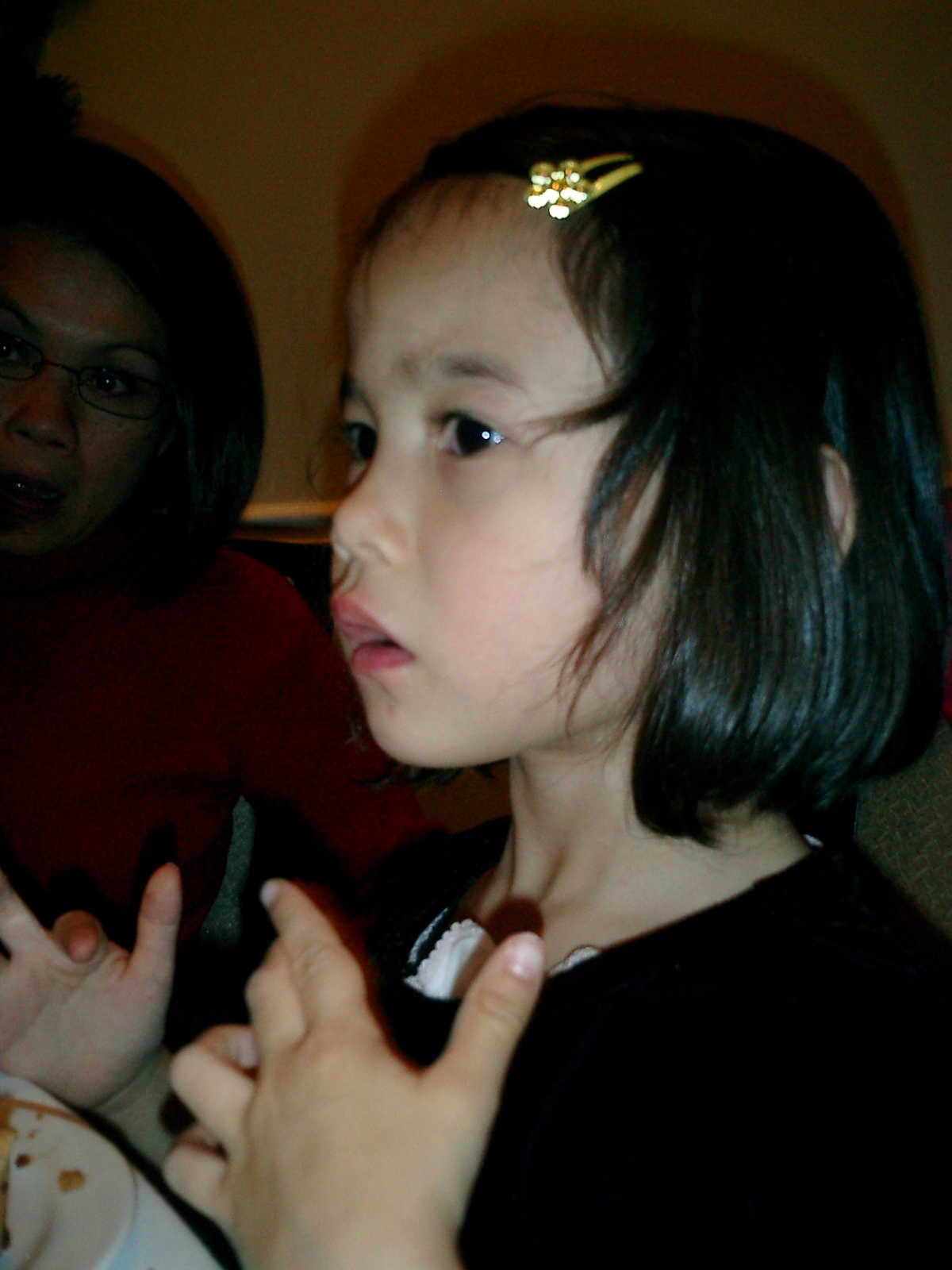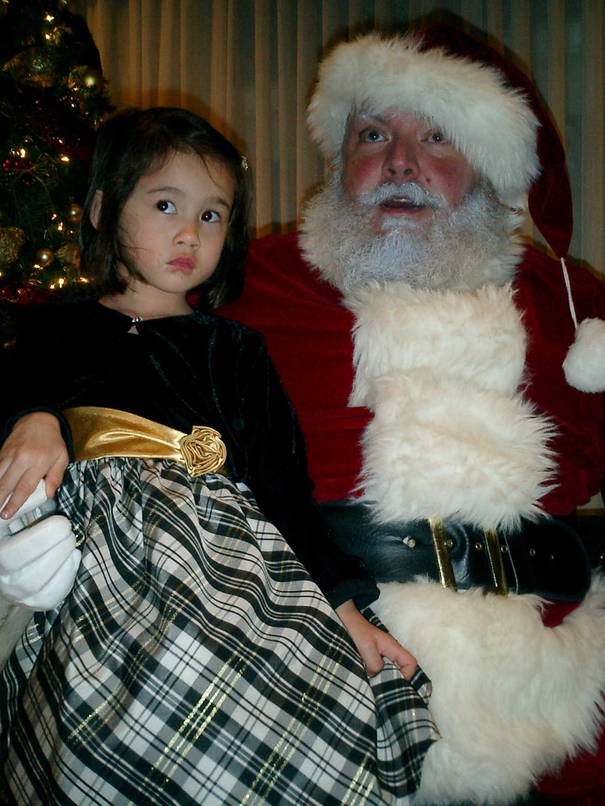 Nadine at 4 years (Dec 7, 2010), visiting Santa Claus at the annual party. Nadine, you look so serious! Did you like all the wonderful food? (You sure did!)