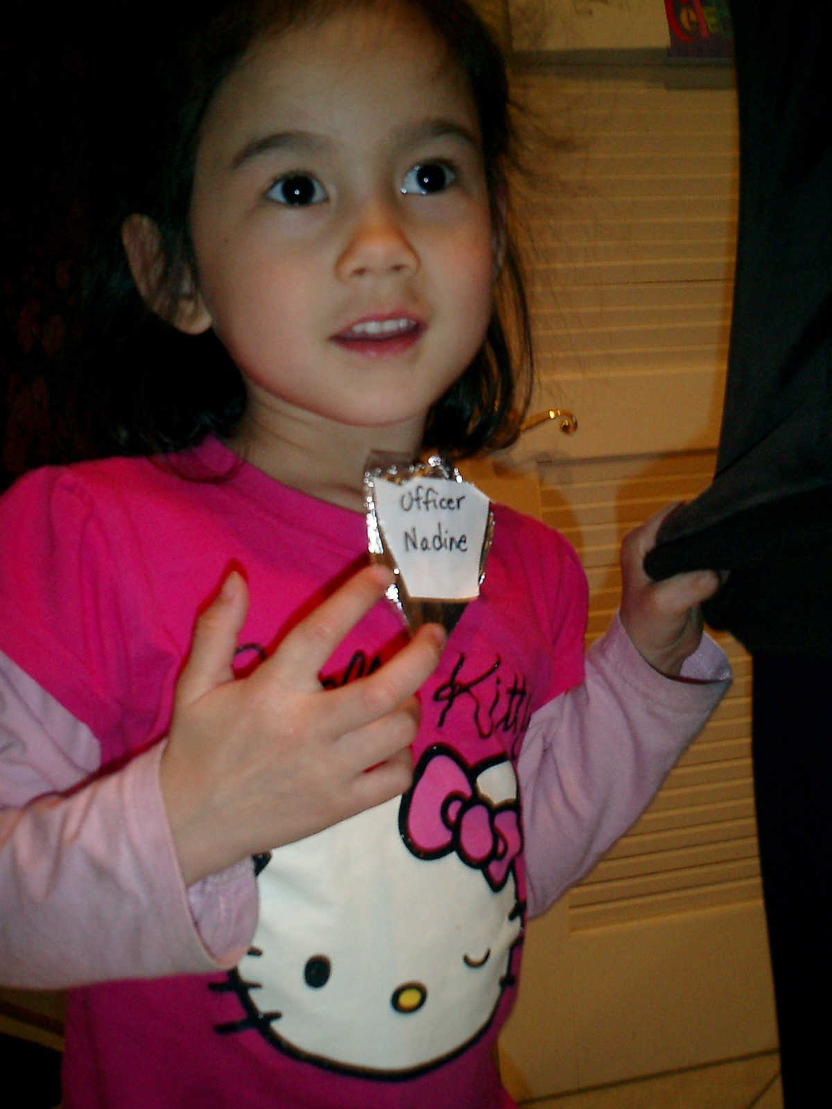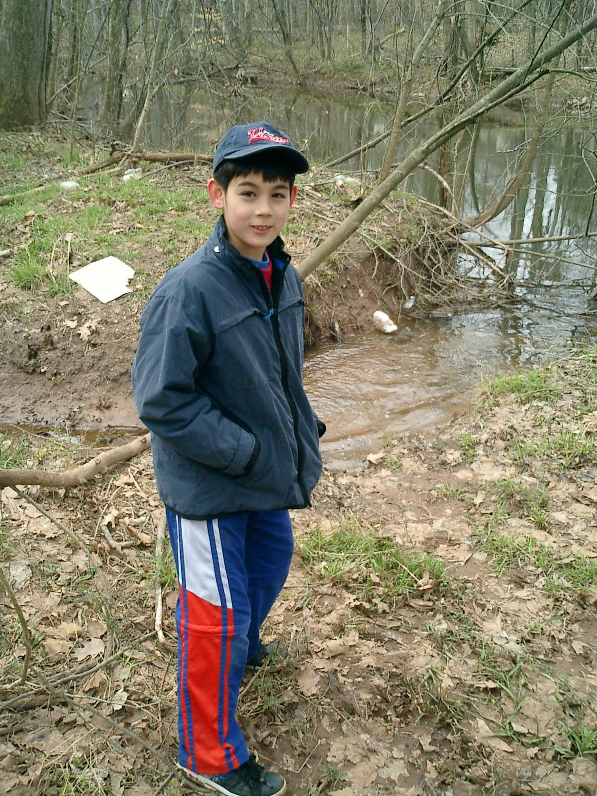 Nadine at 4 years and 4 months (Mar 26, 2011), showing off her "Officer Nadine" badge, which she made in preschool. And, pictures of Nolan from his exploring trip with Daddy, visiting the nearby creek.