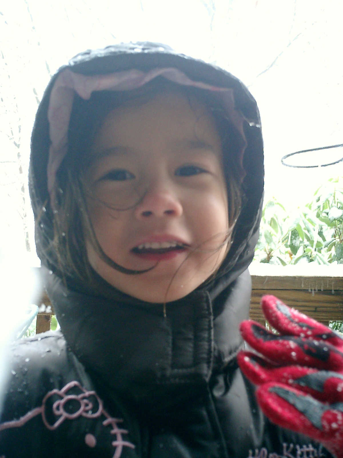 Nadine at 4 years and 11 months (Oct 29, 2011), enjoying the first snow of the year at Wintergreen. The snow tunred to freezing rain, everything was coated in ice!