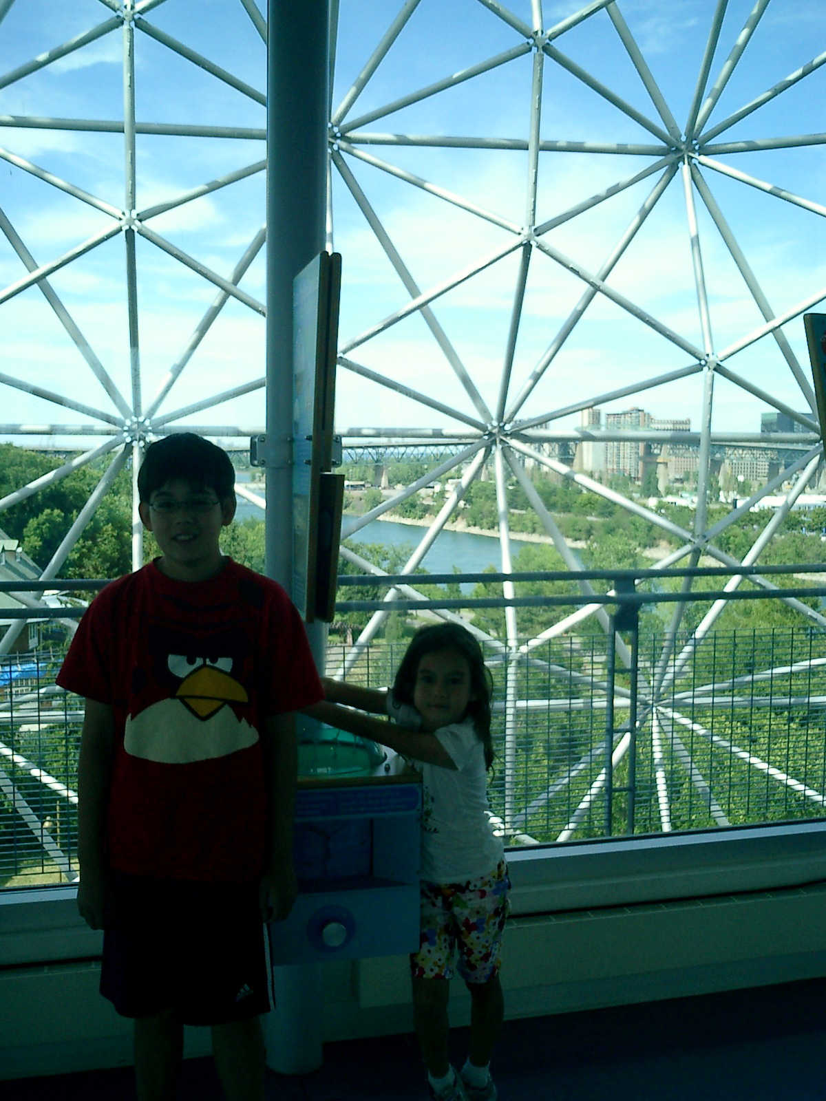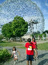 Nadine at 5 years and 8 months (Jul 28, 2012), visiting the Montreal Parks, including the BioSphere dome near the Saint Lawrence River.