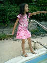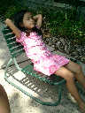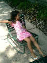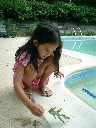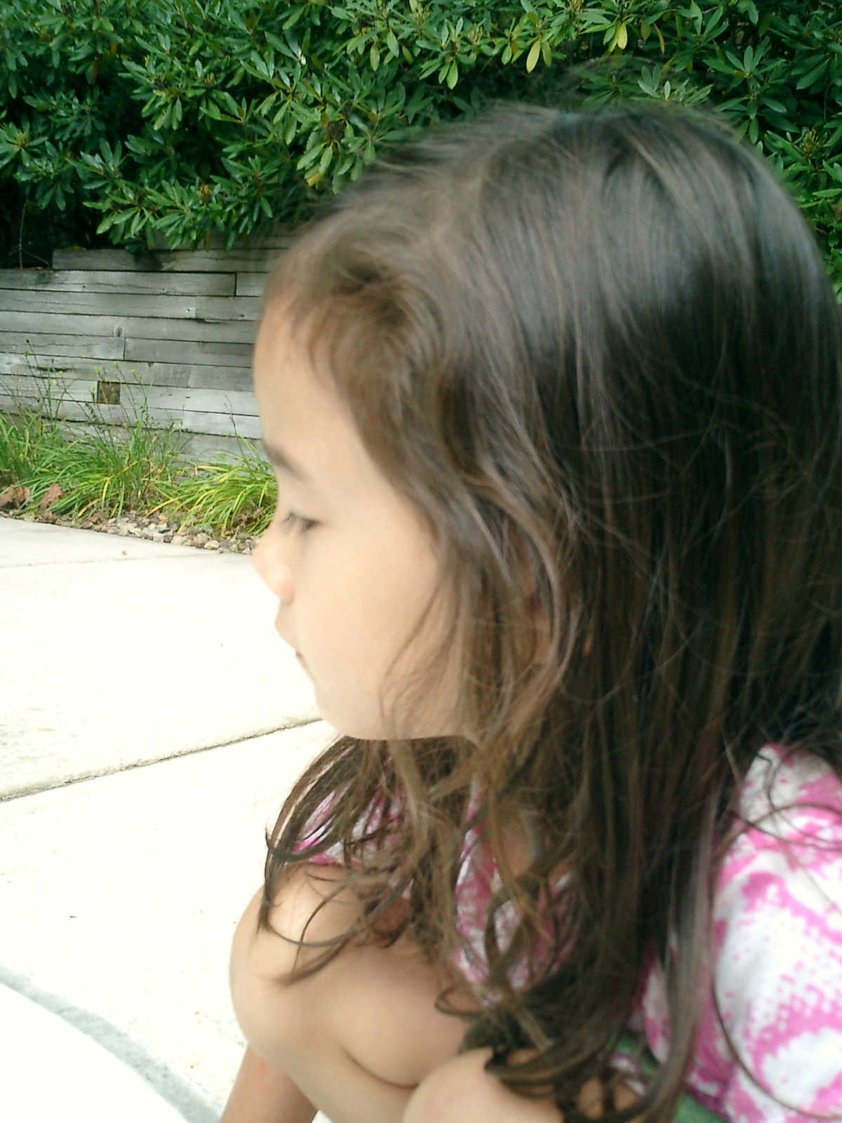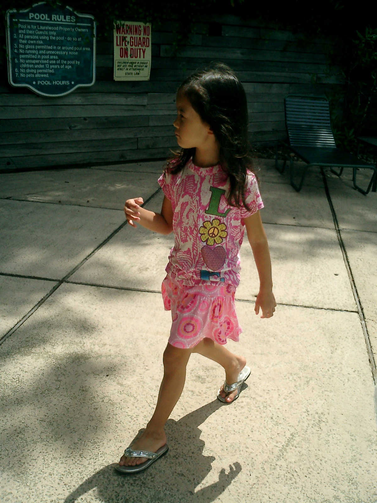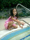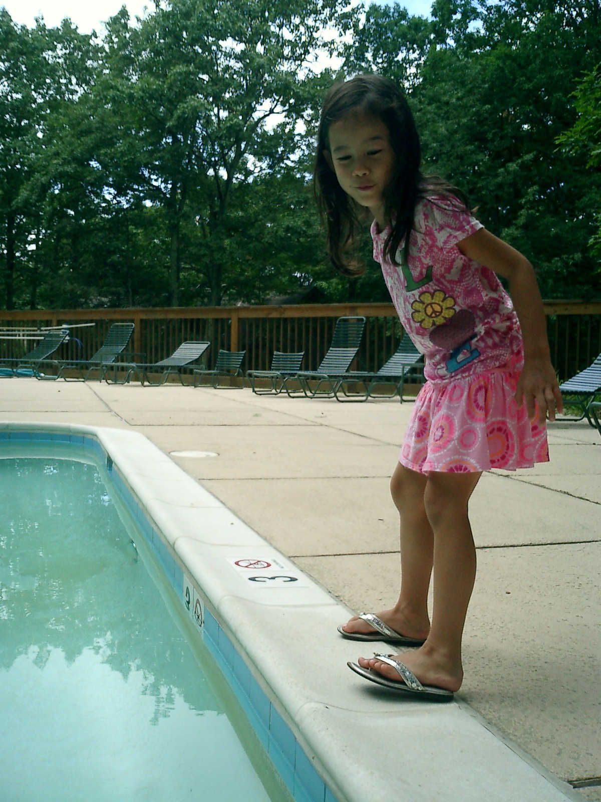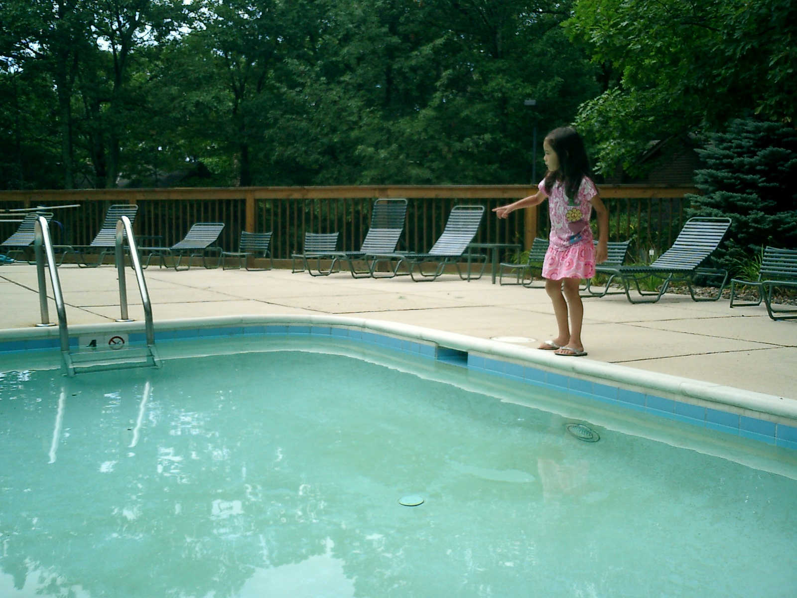 Nadine at 5 years and 9 months (Aug 11, 2012), hanging out at the Laurelwood swimming pool. Nadine, did you make a tiny boat from leaves and acorn shells?