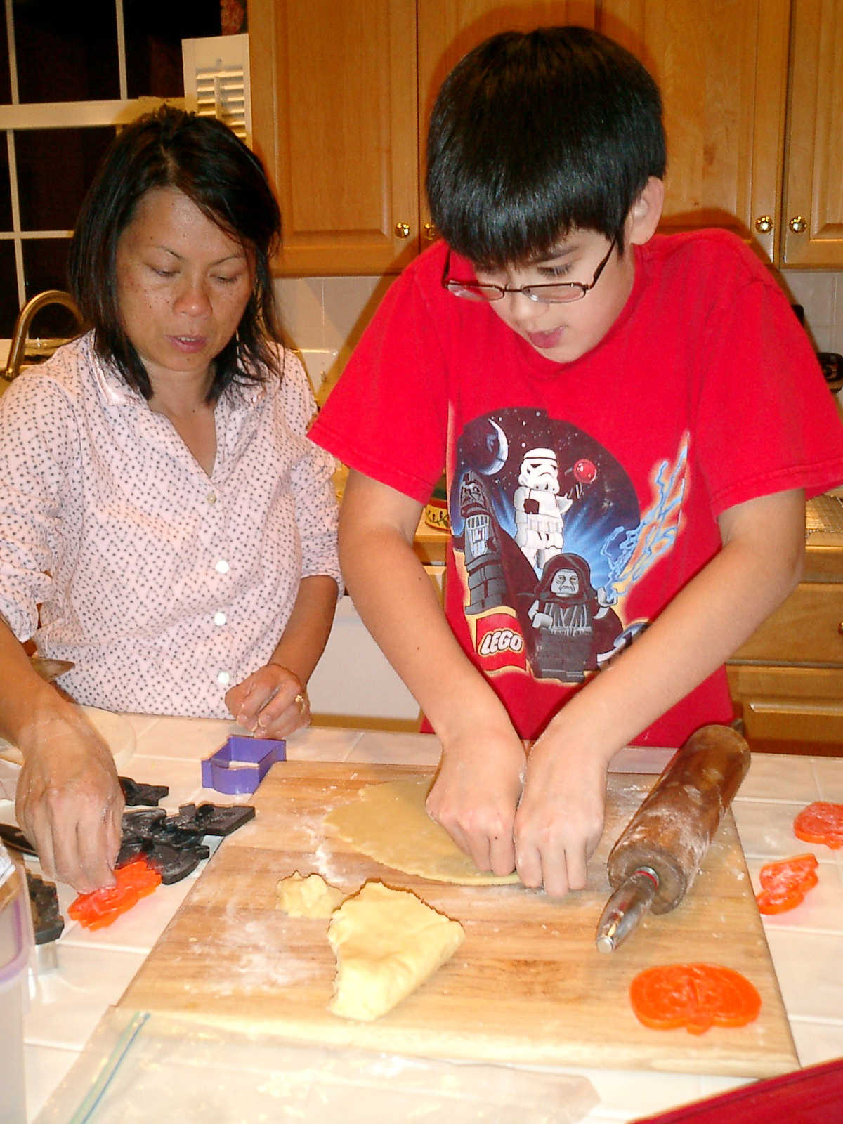 Nadine at 5 years and 11 months (Oct 29, 2012), making Halloween cookies with Nolan. (Nadine, did you put the sprinkles on the cookies?)