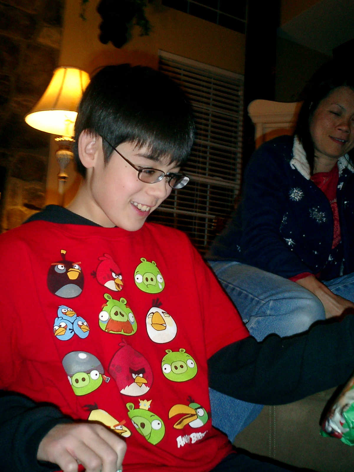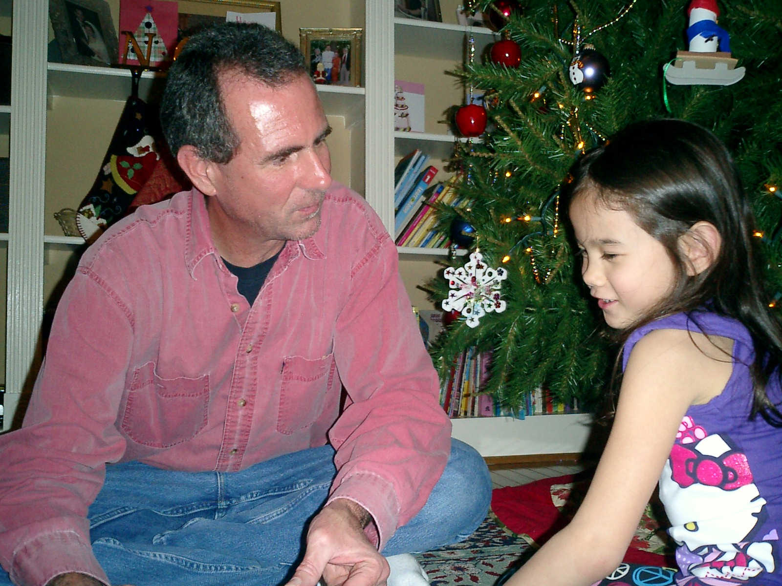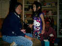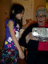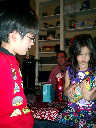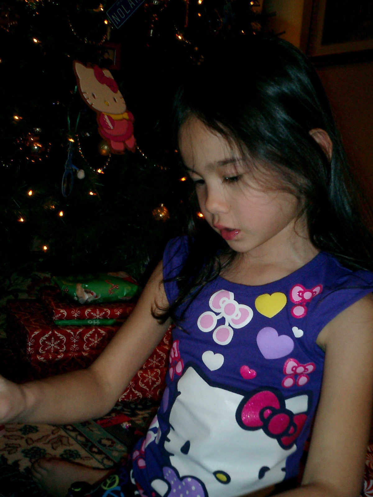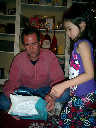 Nadine at 6 years and 1 month (Dec 24, 2012), opening presents on Christmas Eve with Grandma Alexander and Uncle Dave. What did Nolan get? Fireworks!