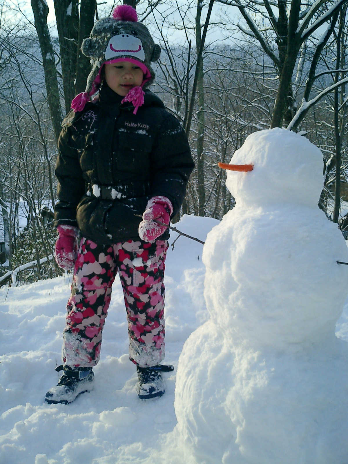 Nadine at 6 years and 4 months (Mar 24, 2013), enjoying the big snowfall at Wintergreen. Nice snowman you and Nolan made, with a carrot nose!