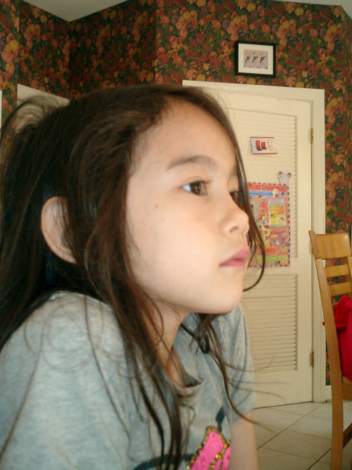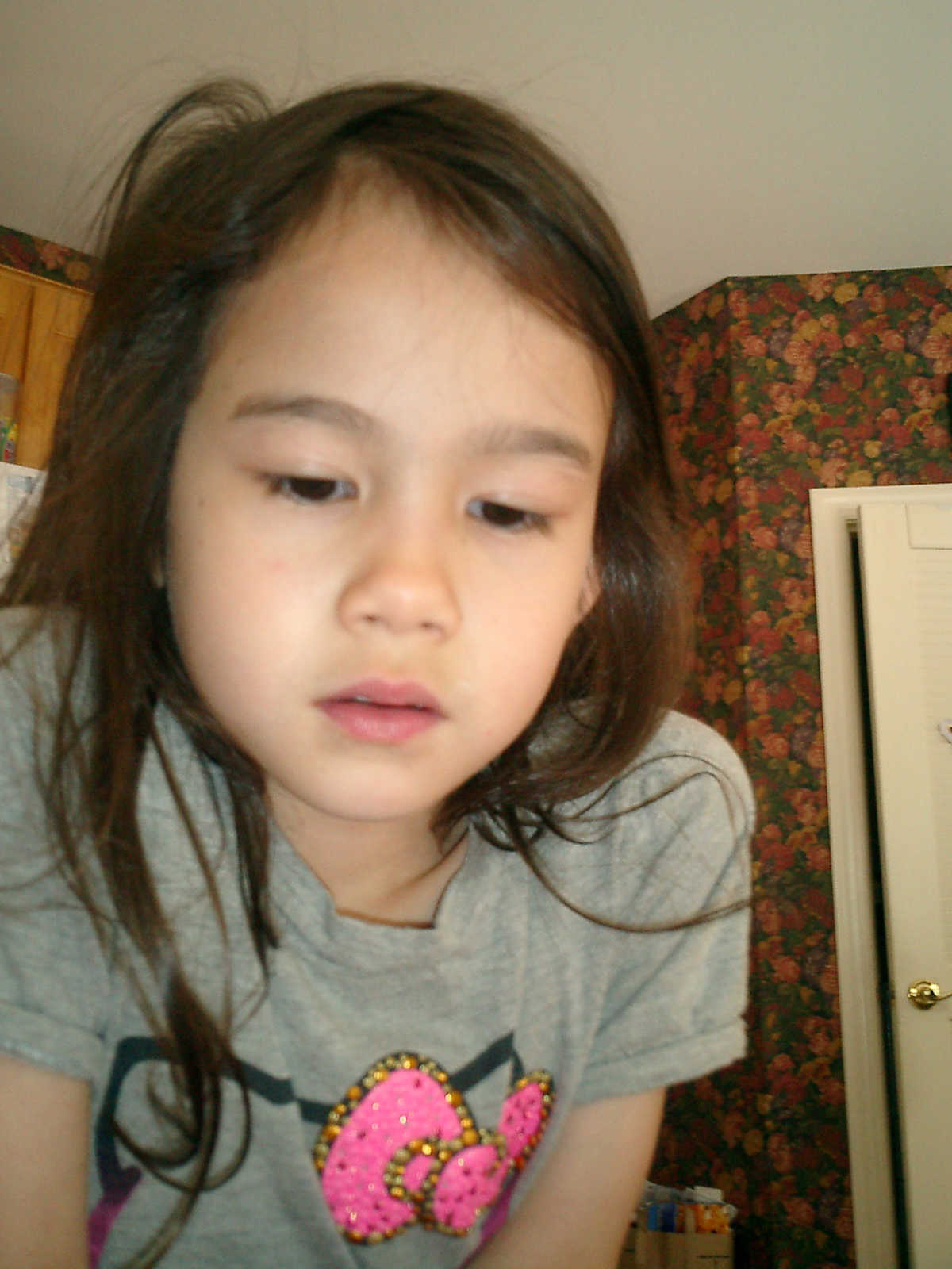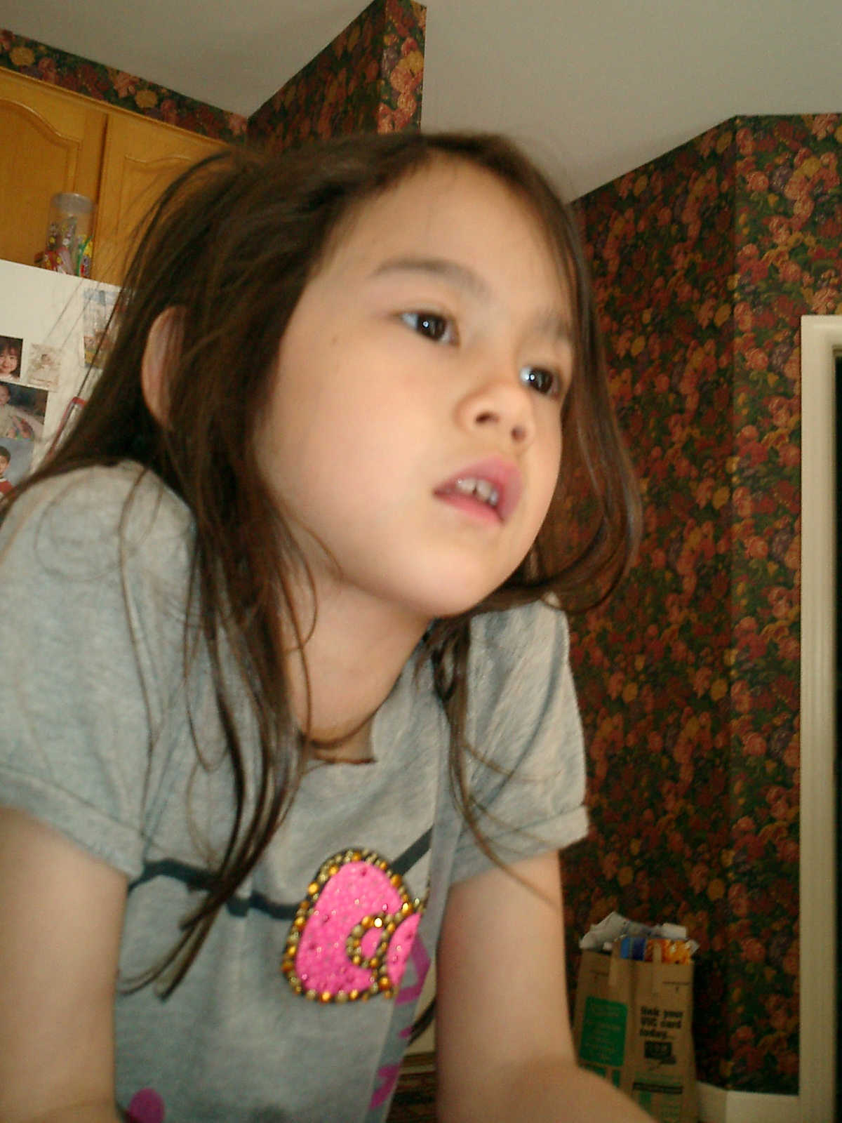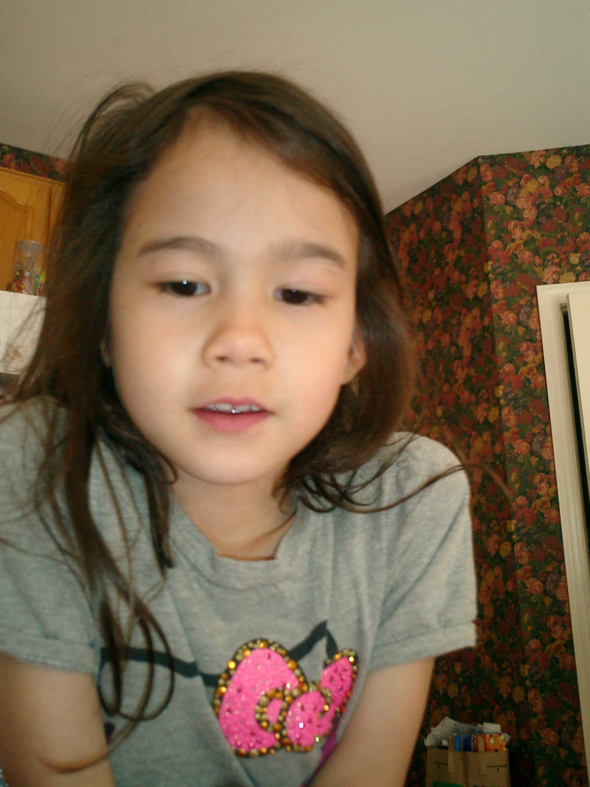 Nadine at 6 years and 6 months (May 21, 2013), giving her Mothers Day card to Sally. Nadine, that sure was a pretty card you made, for Mommy!
