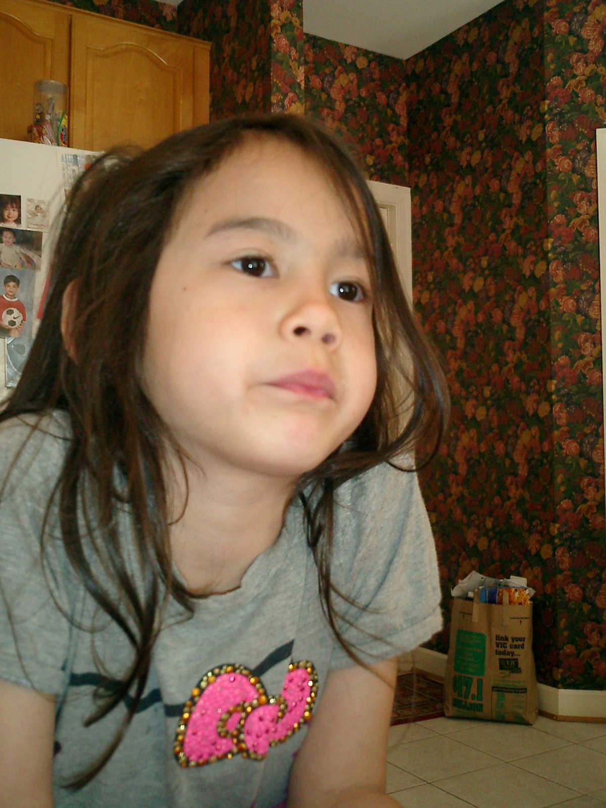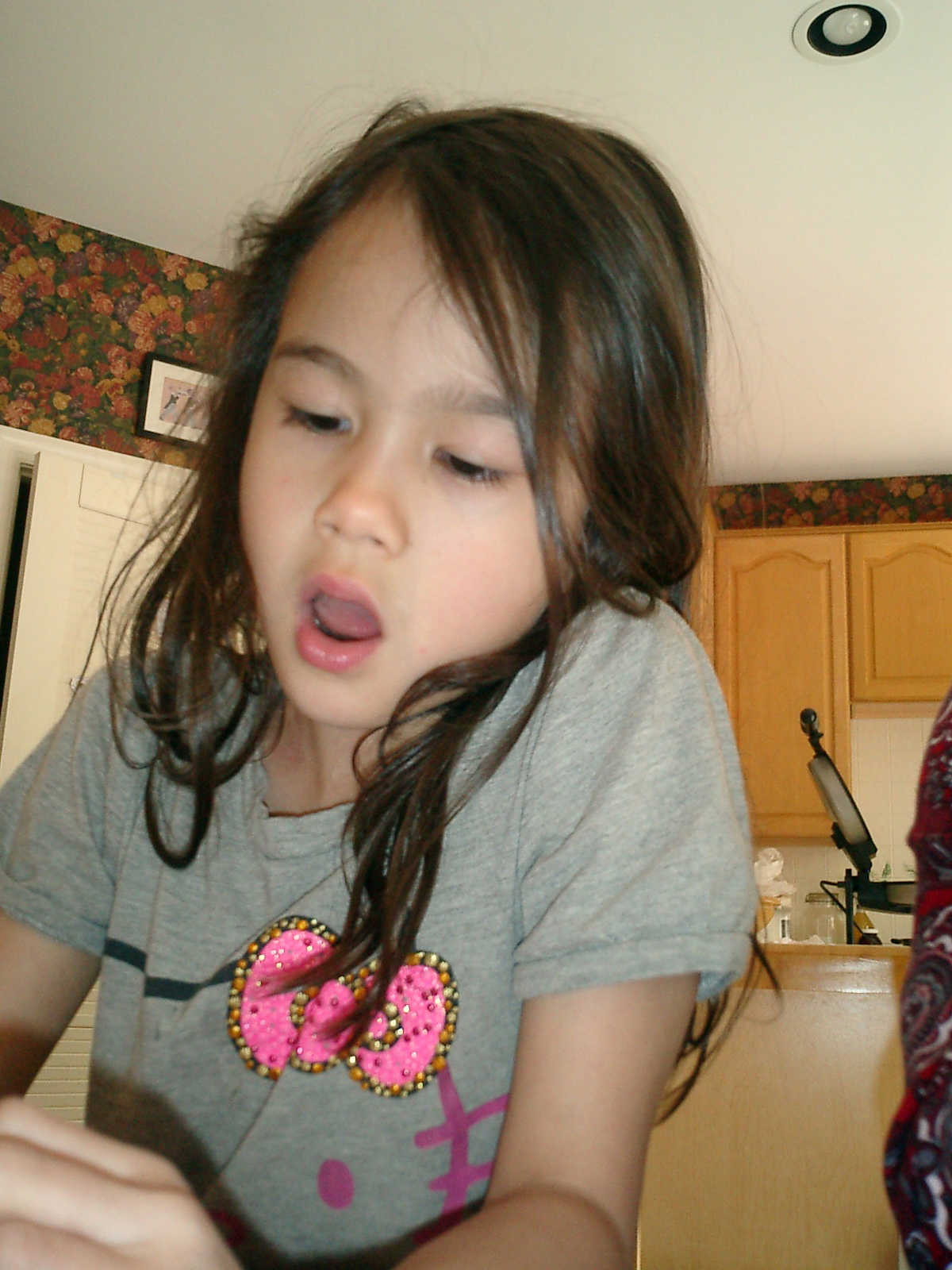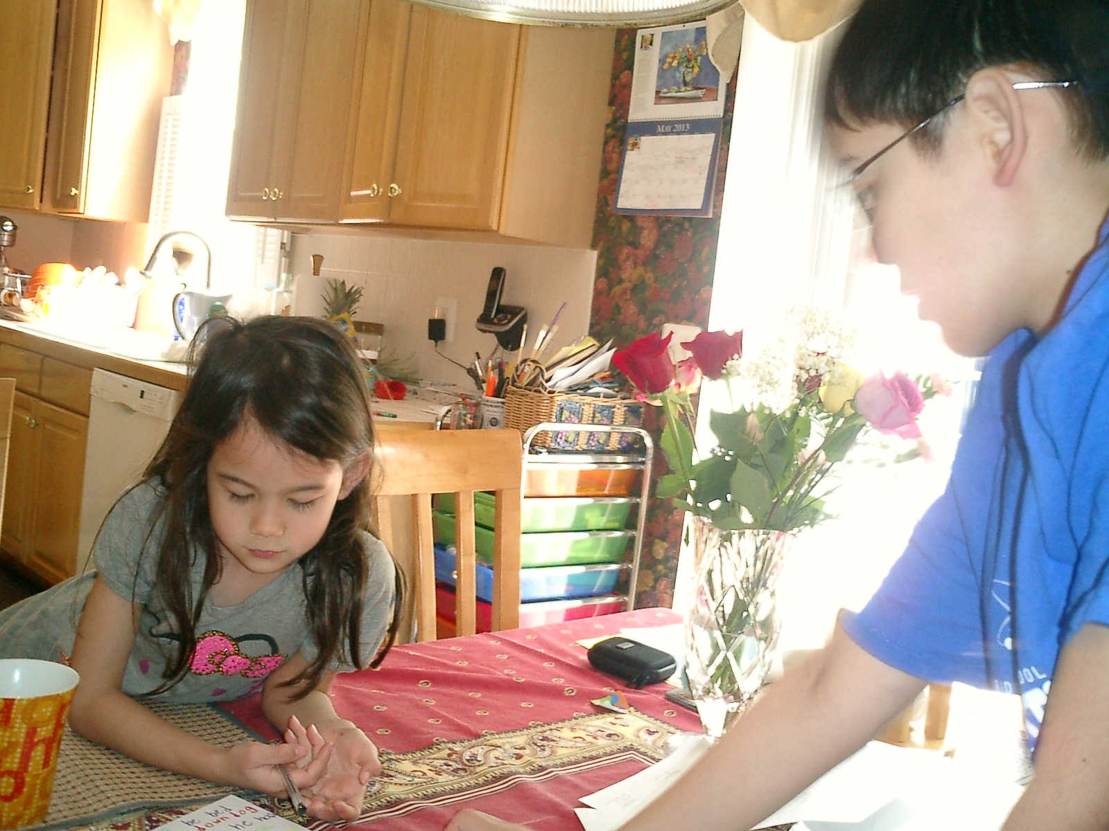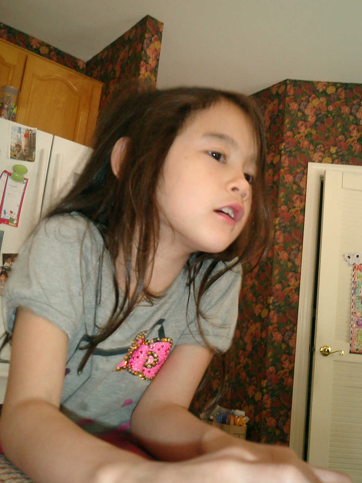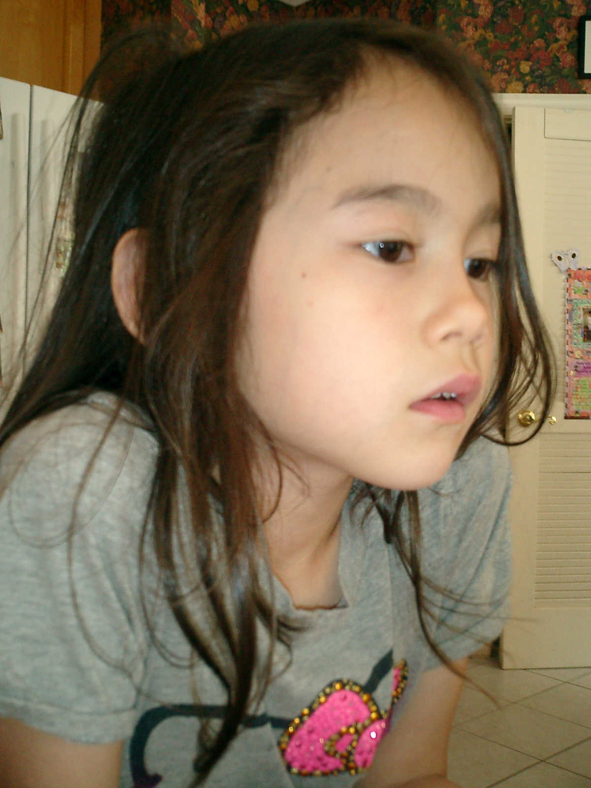 Nadine at 6 years and 6 months (May 21, 2013), giving her Mothers Day card to Sally. Nadine, that sure was a pretty card you made, for Mommy!