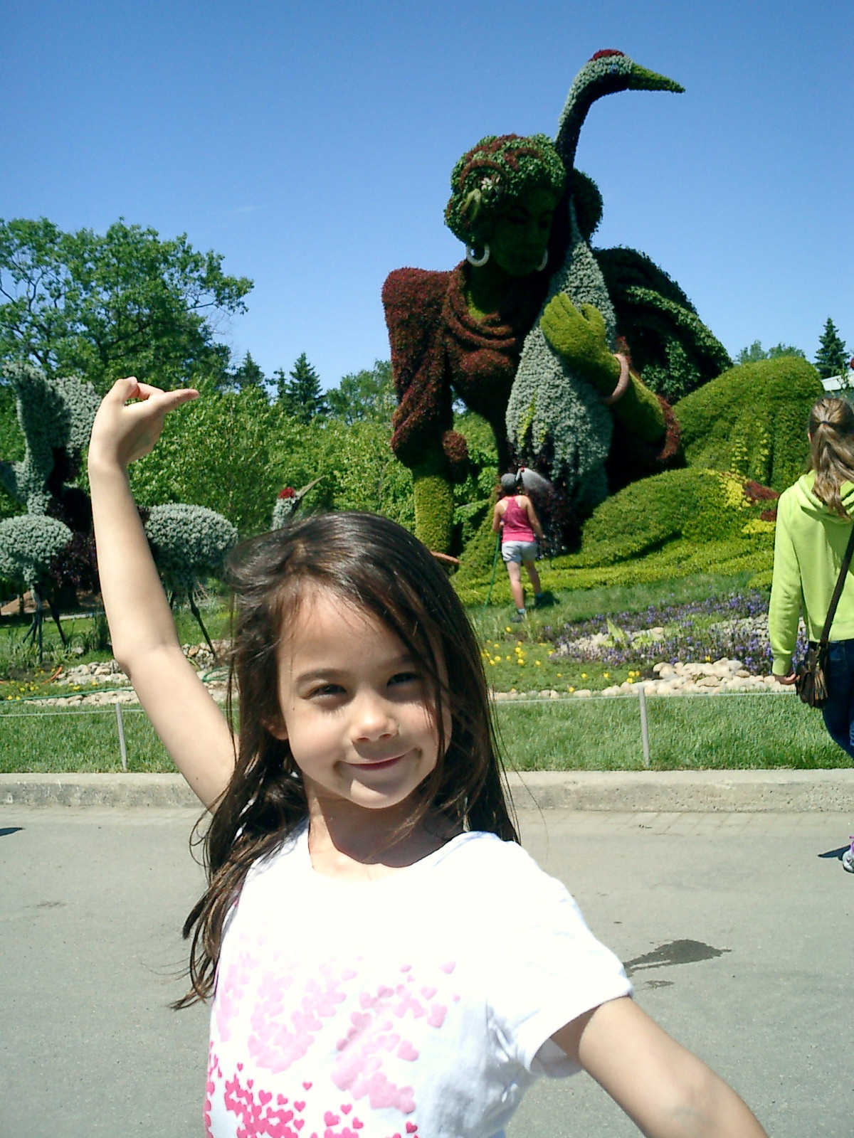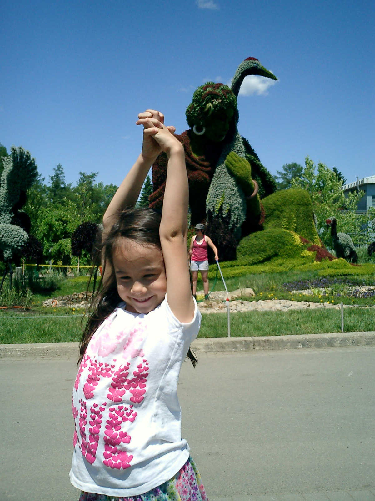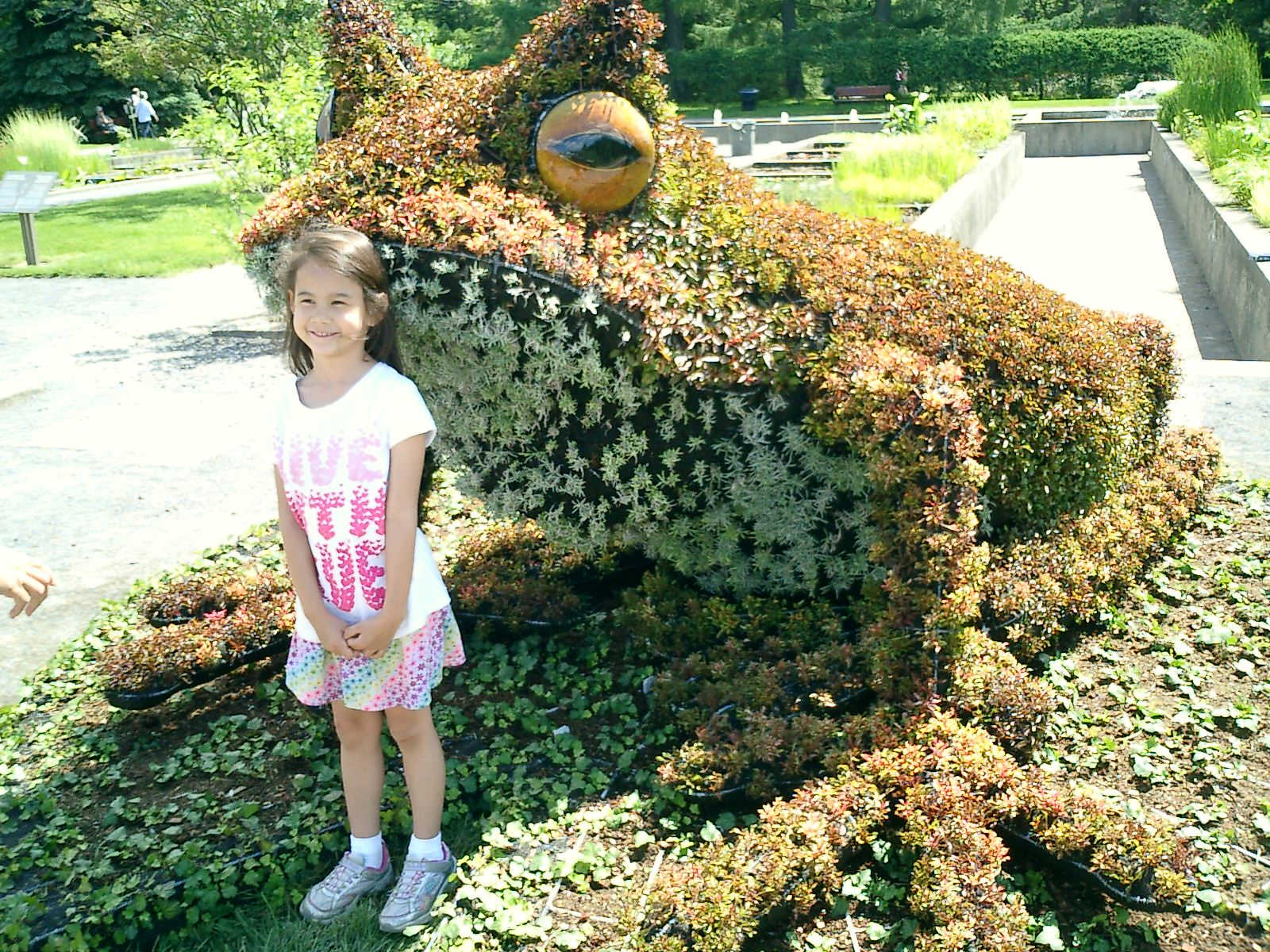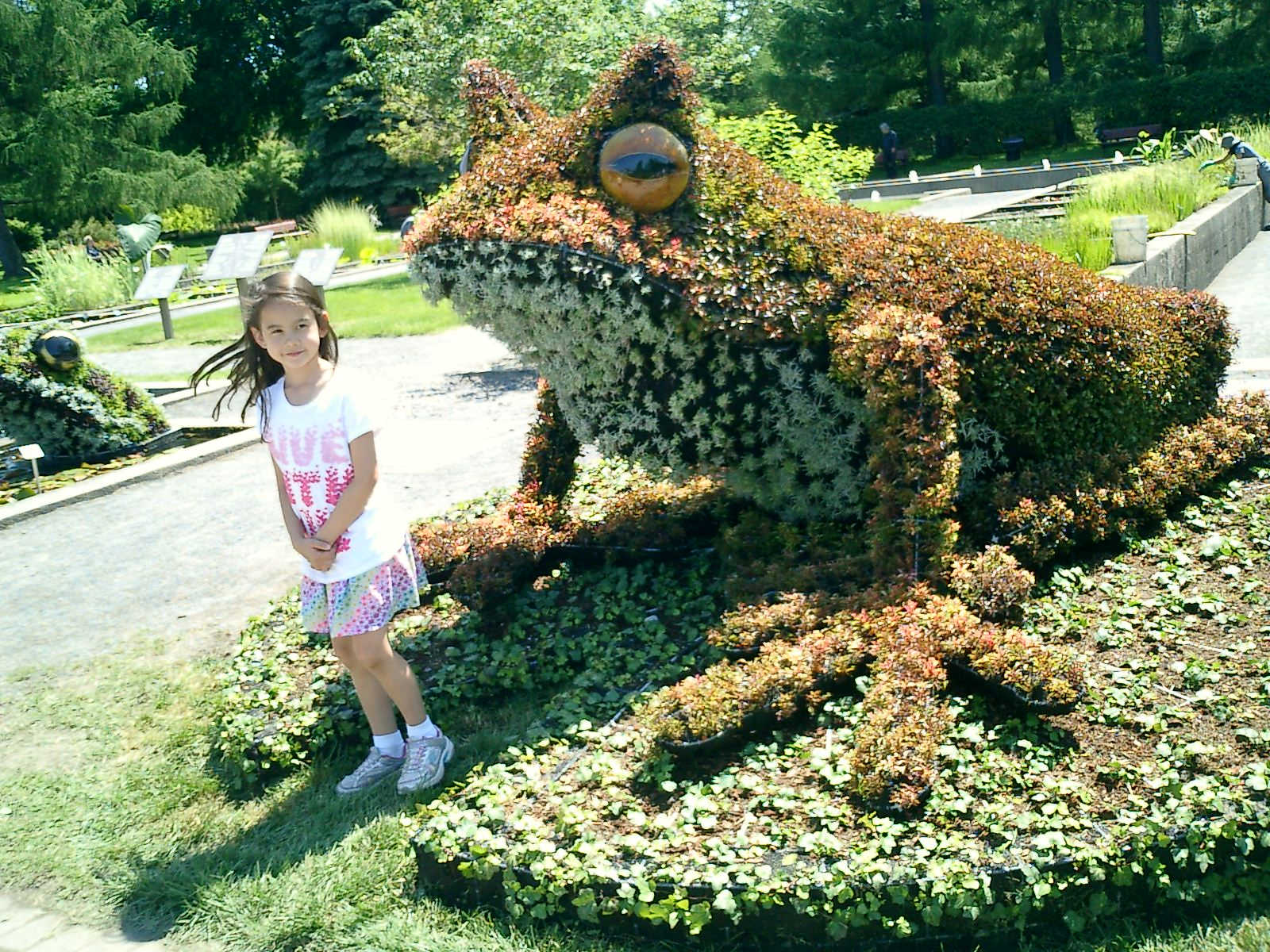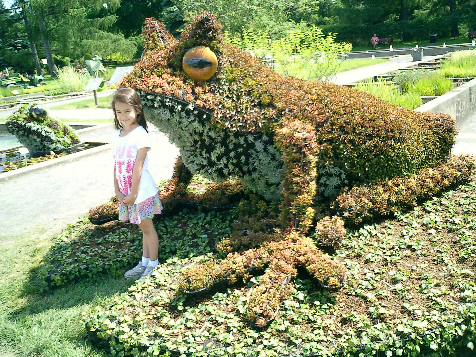 Nadine at 6 years and 7 months (Jun 20, 2013), enjoying the huge outdoor and indoor arboretum just north of Olympic Park. Just look at all those fancy bushes, trimmed to look like frogs, people -- even a piano!