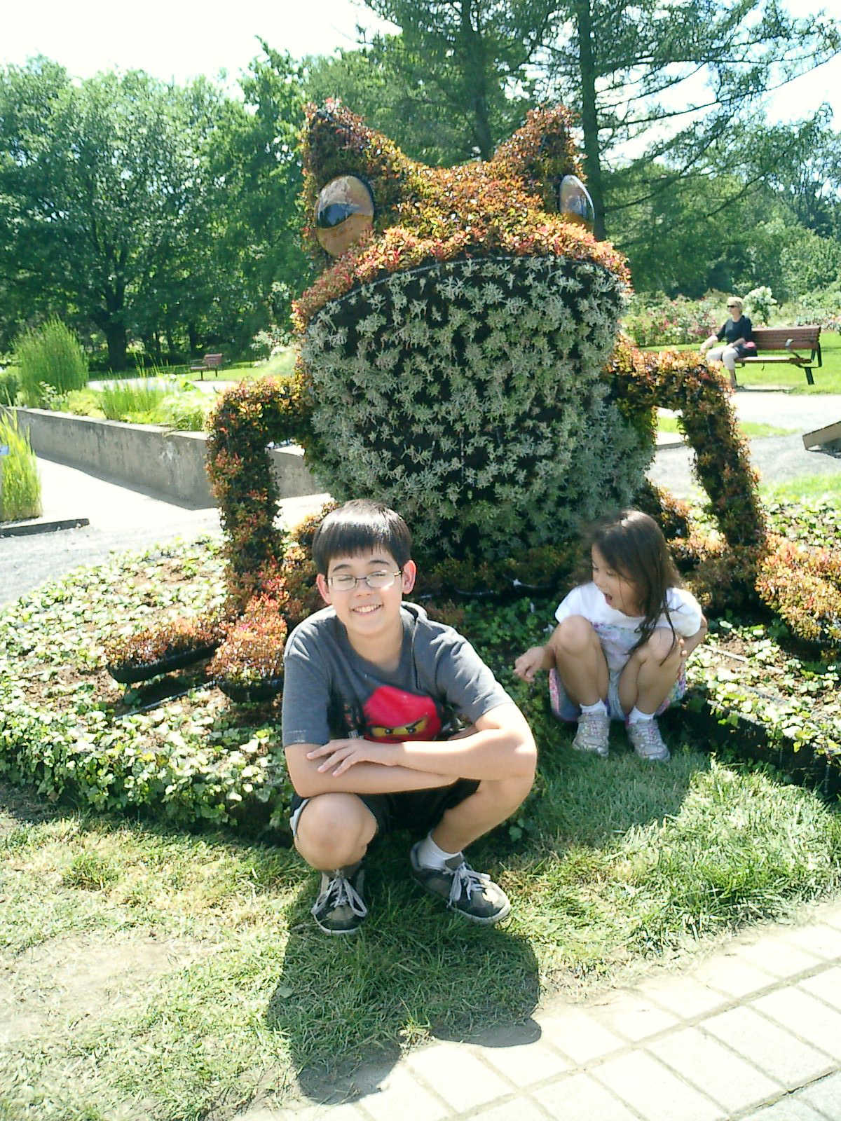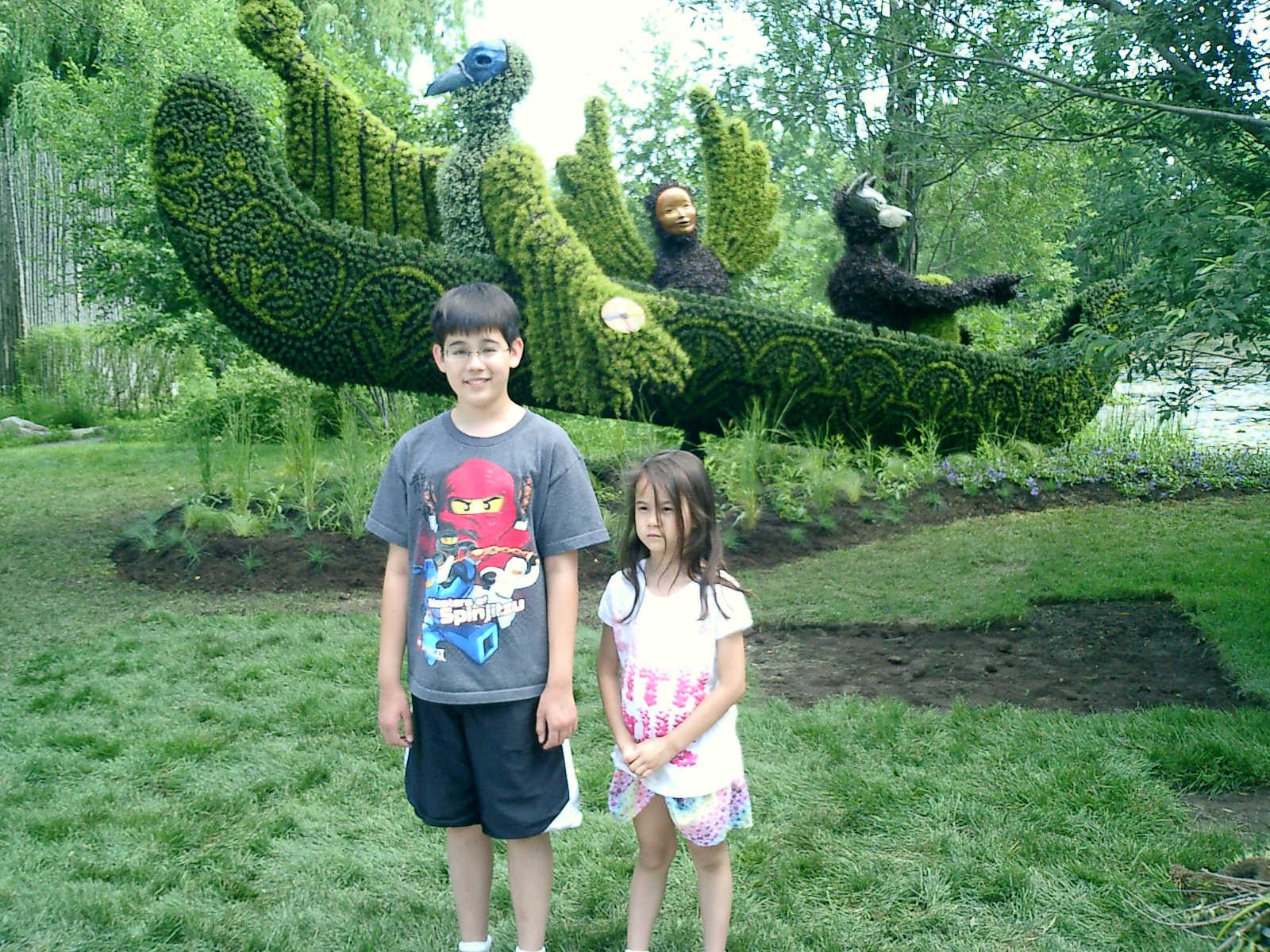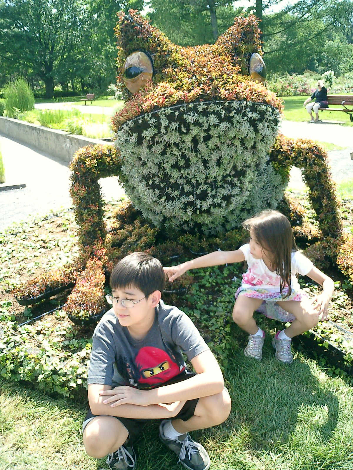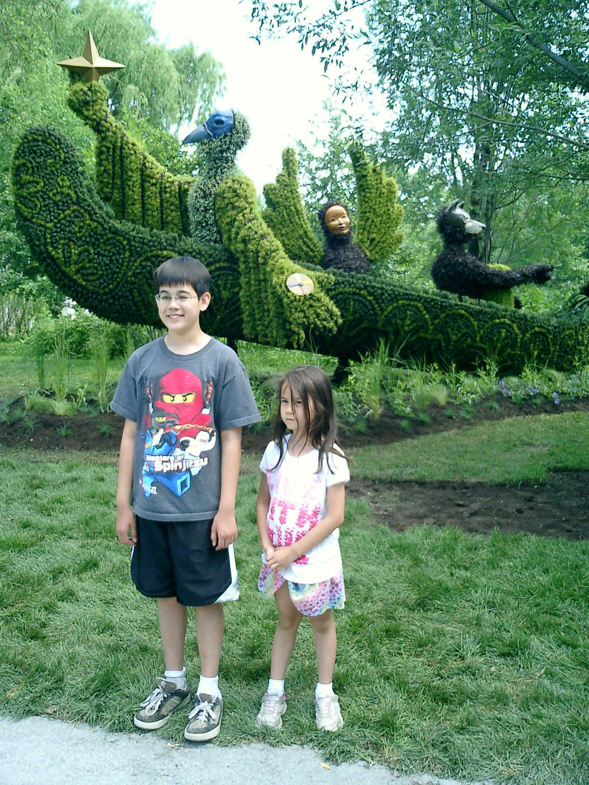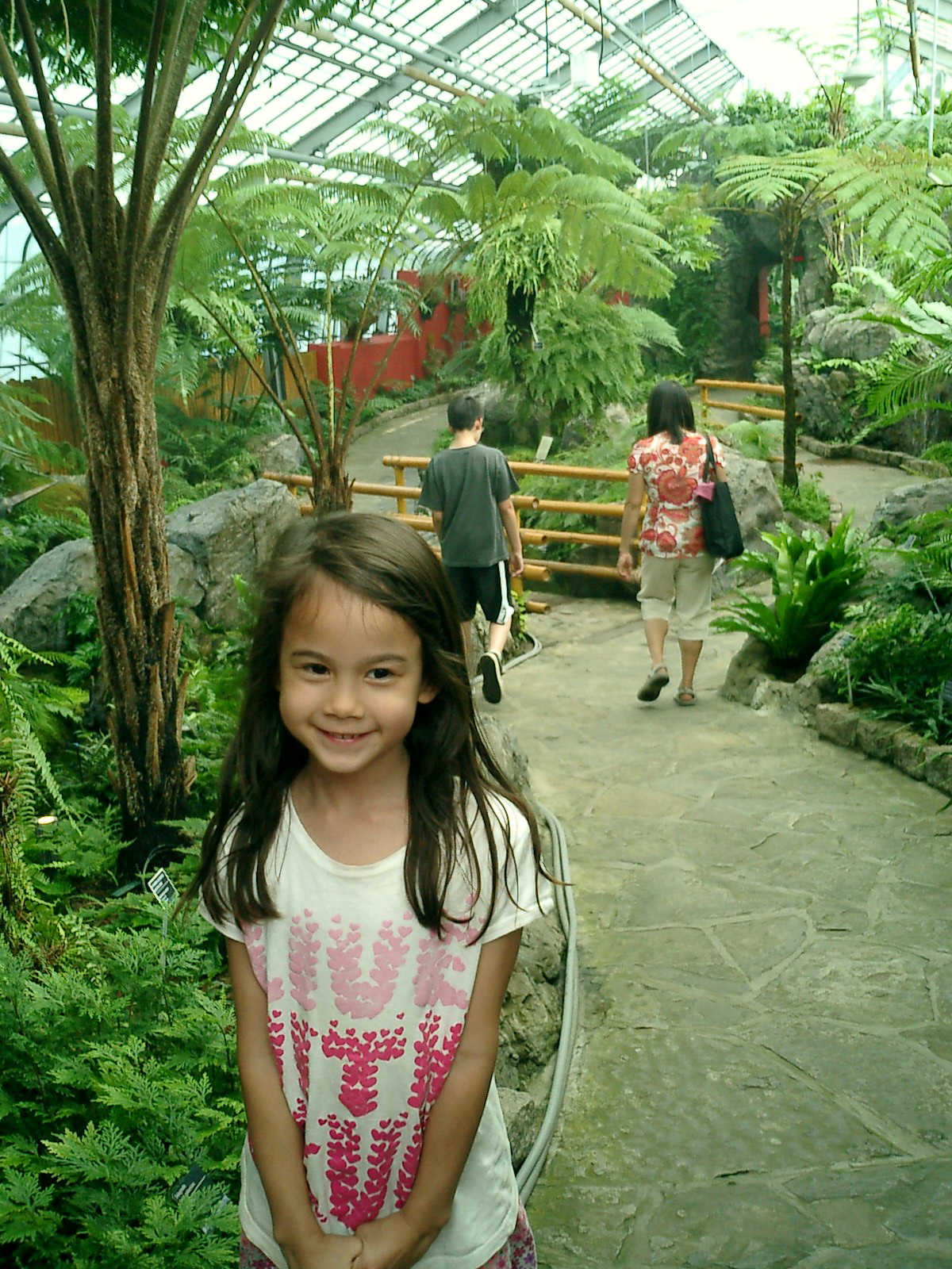 Nadine at 6 years and 7 months (Jun 20, 2013), enjoying the huge outdoor and indoor arboretum just north of Olympic Park. Just look at all those fancy bushes, trimmed to look like frogs, people -- even a piano!