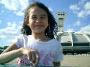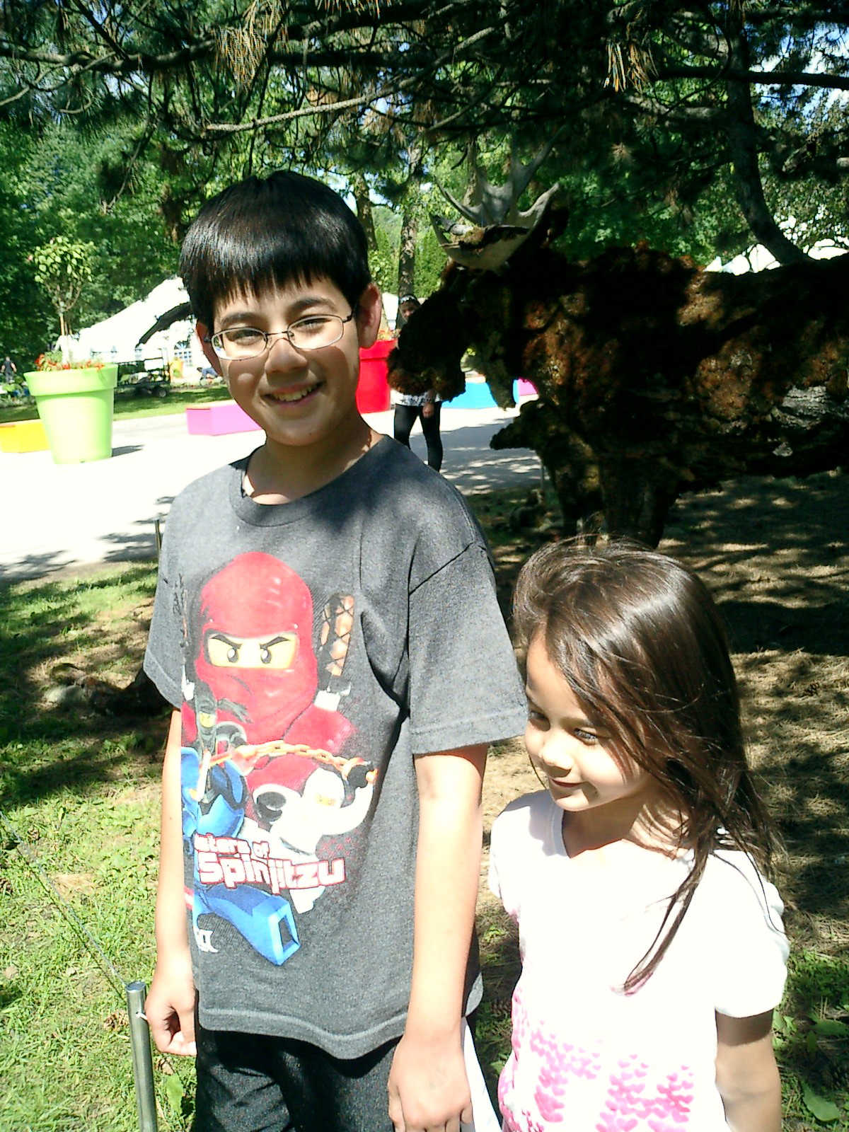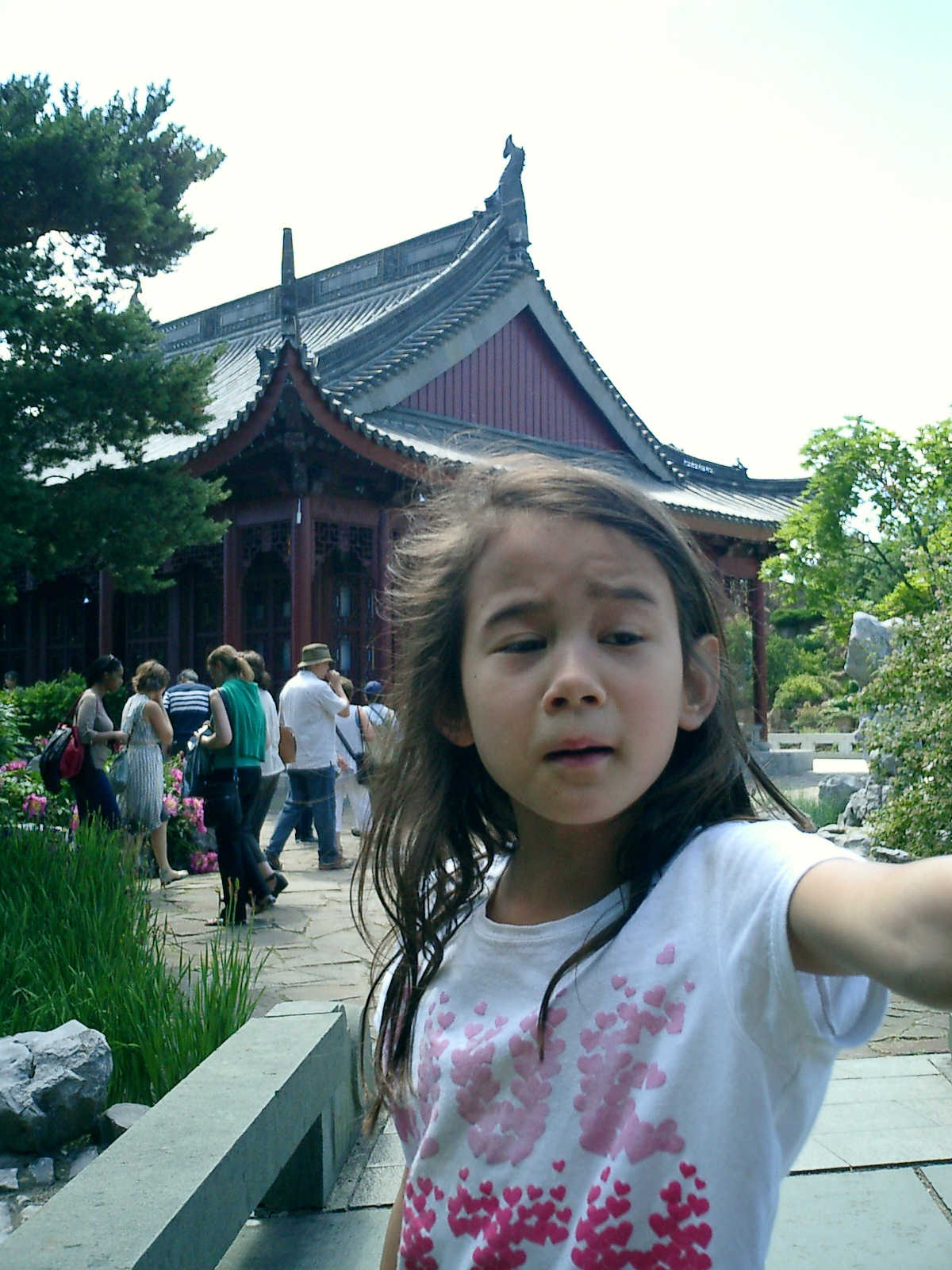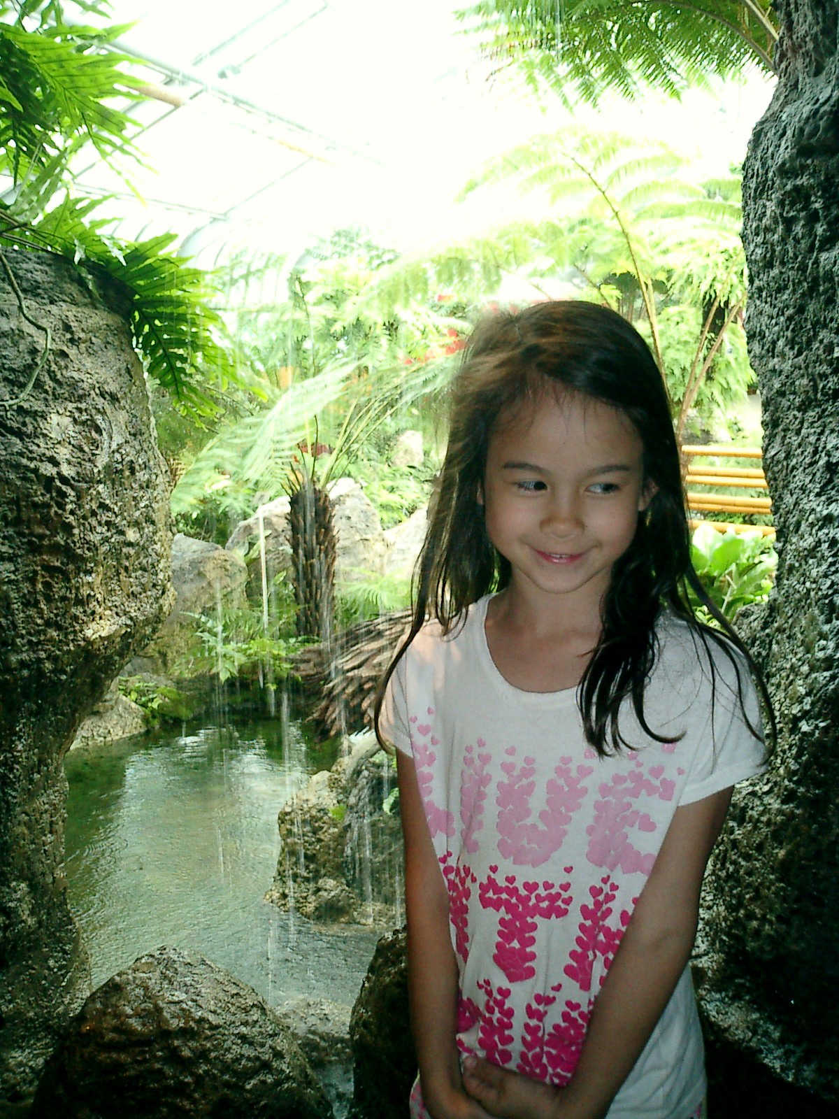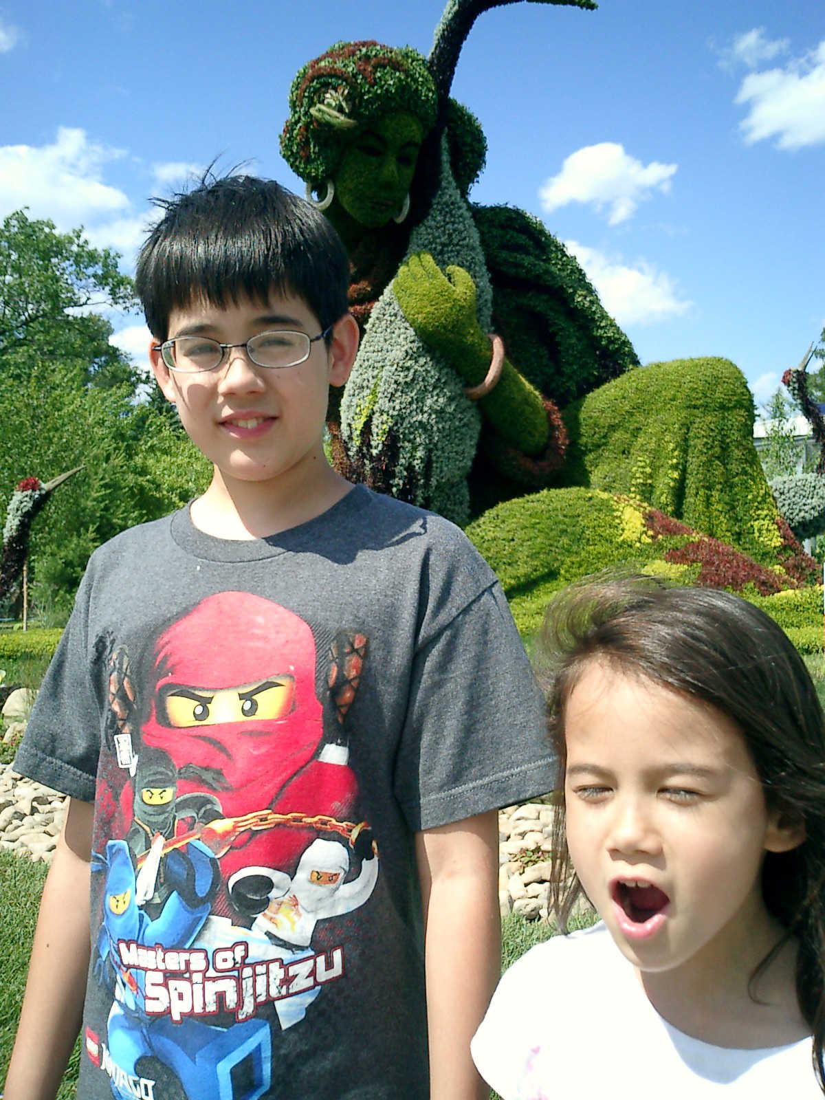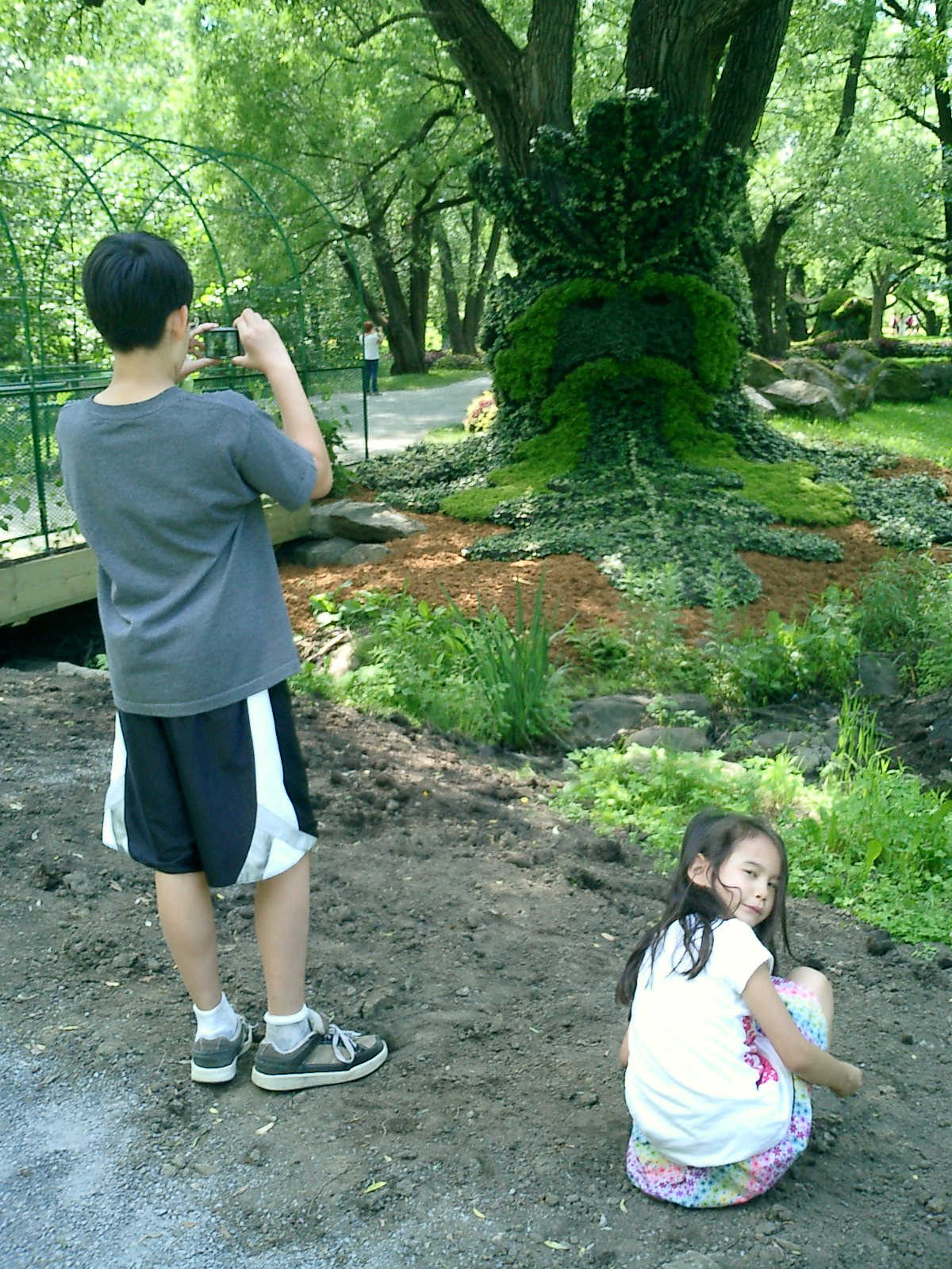 Nadine at 6 years and 7 months (Jun 20, 2013), enjoying the huge outdoor and indoor arboretum just north of Olympic Park. Just look at all those fancy bushes, trimmed to look like frogs, people -- even a piano!